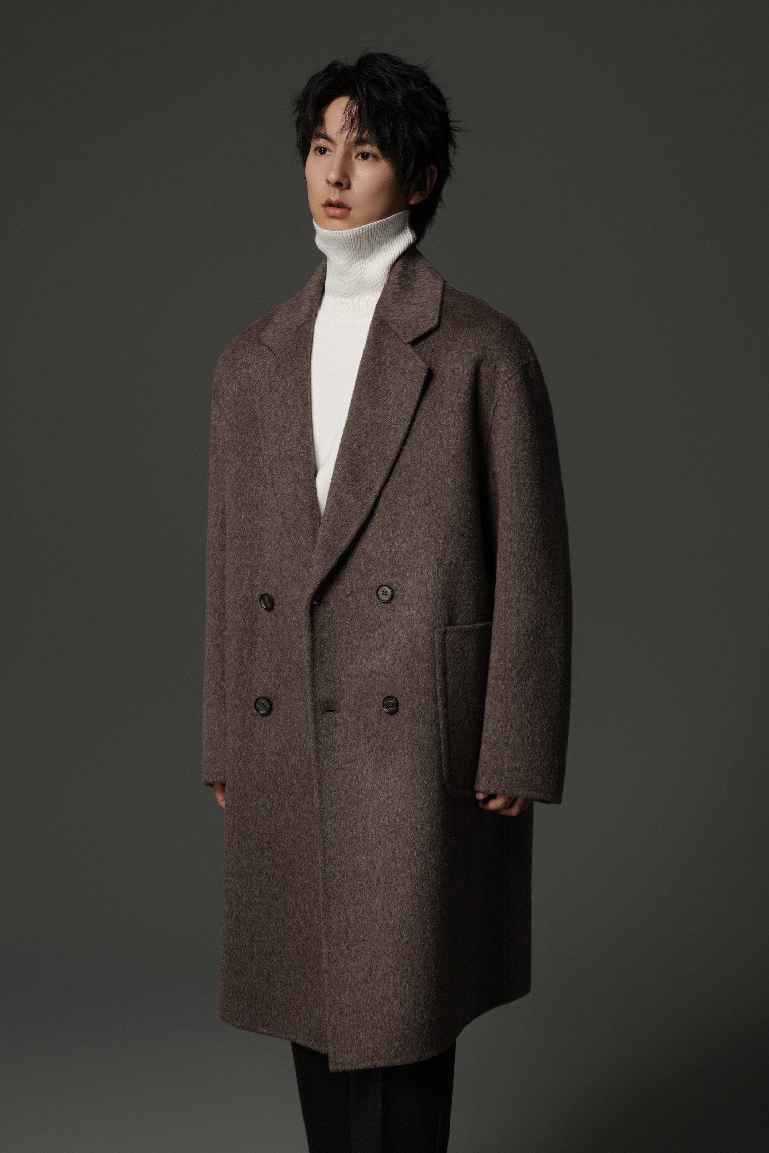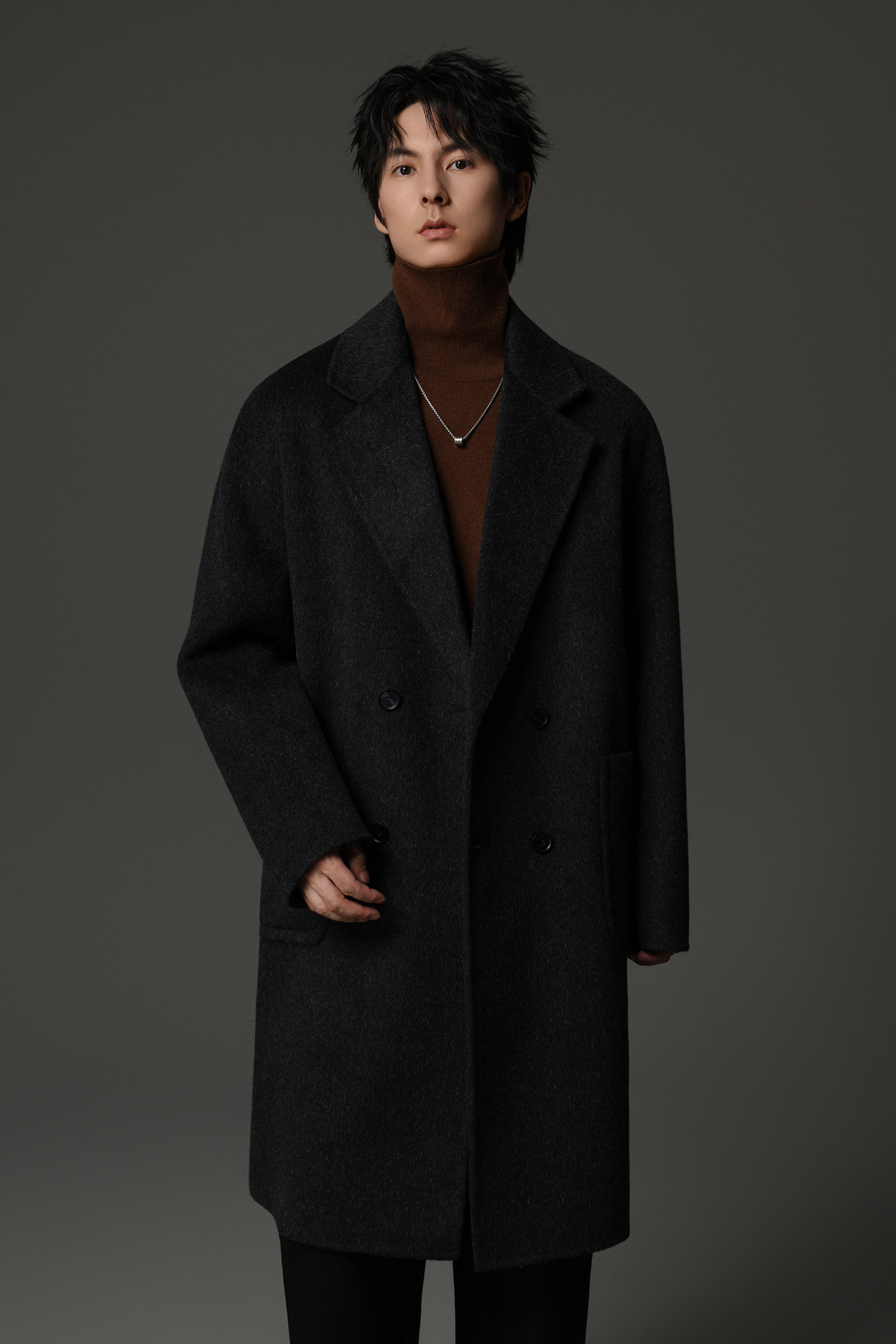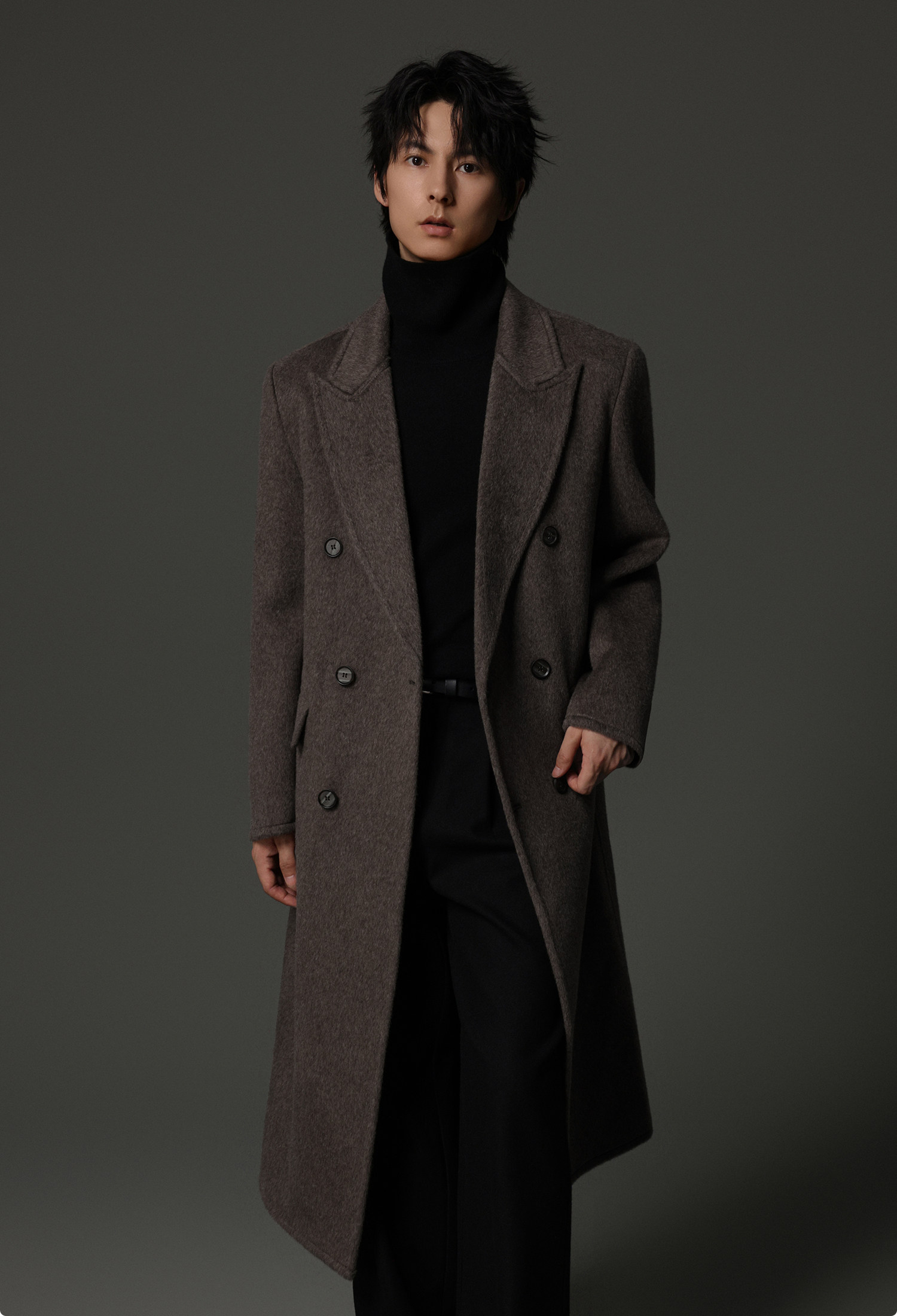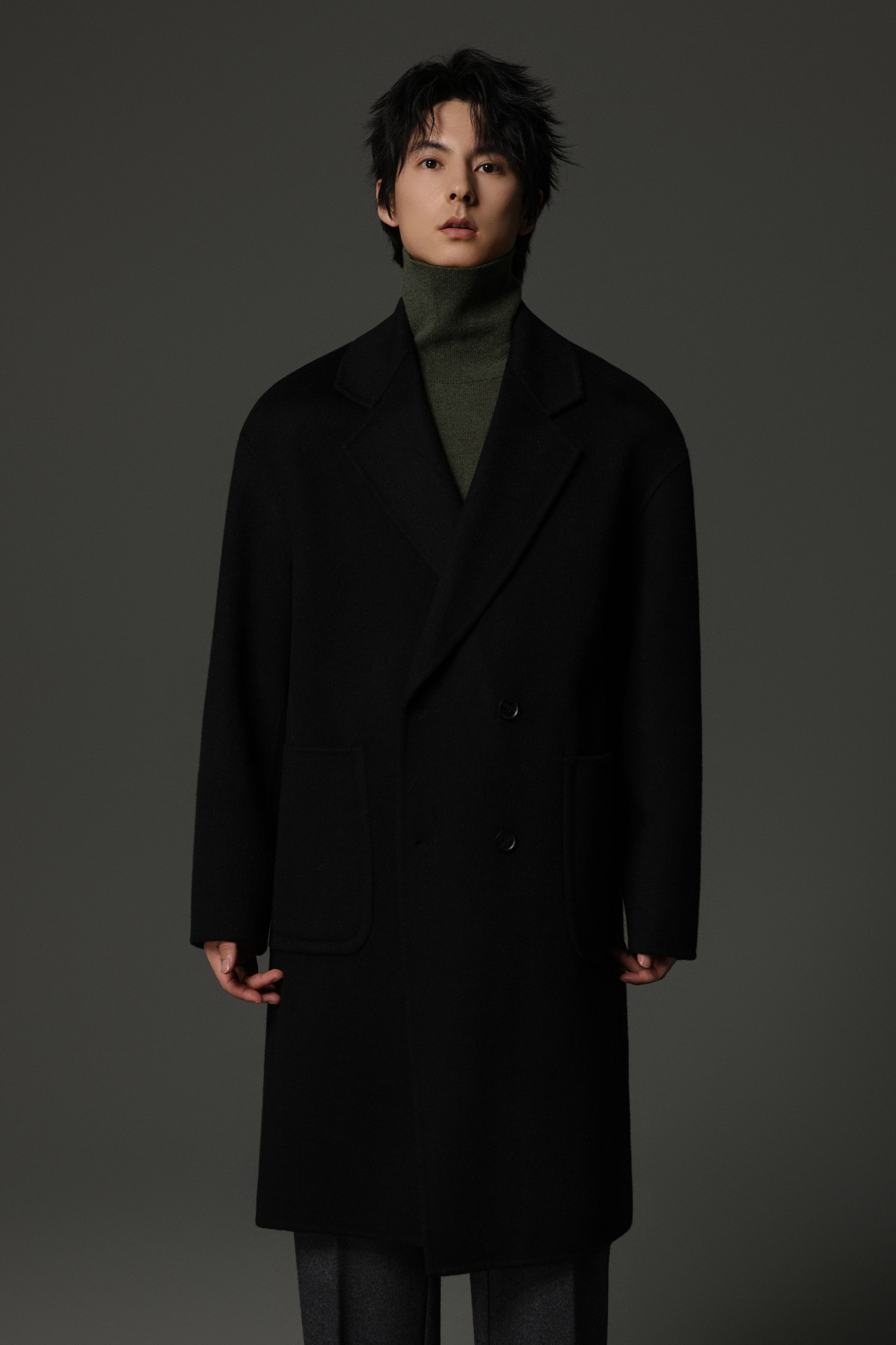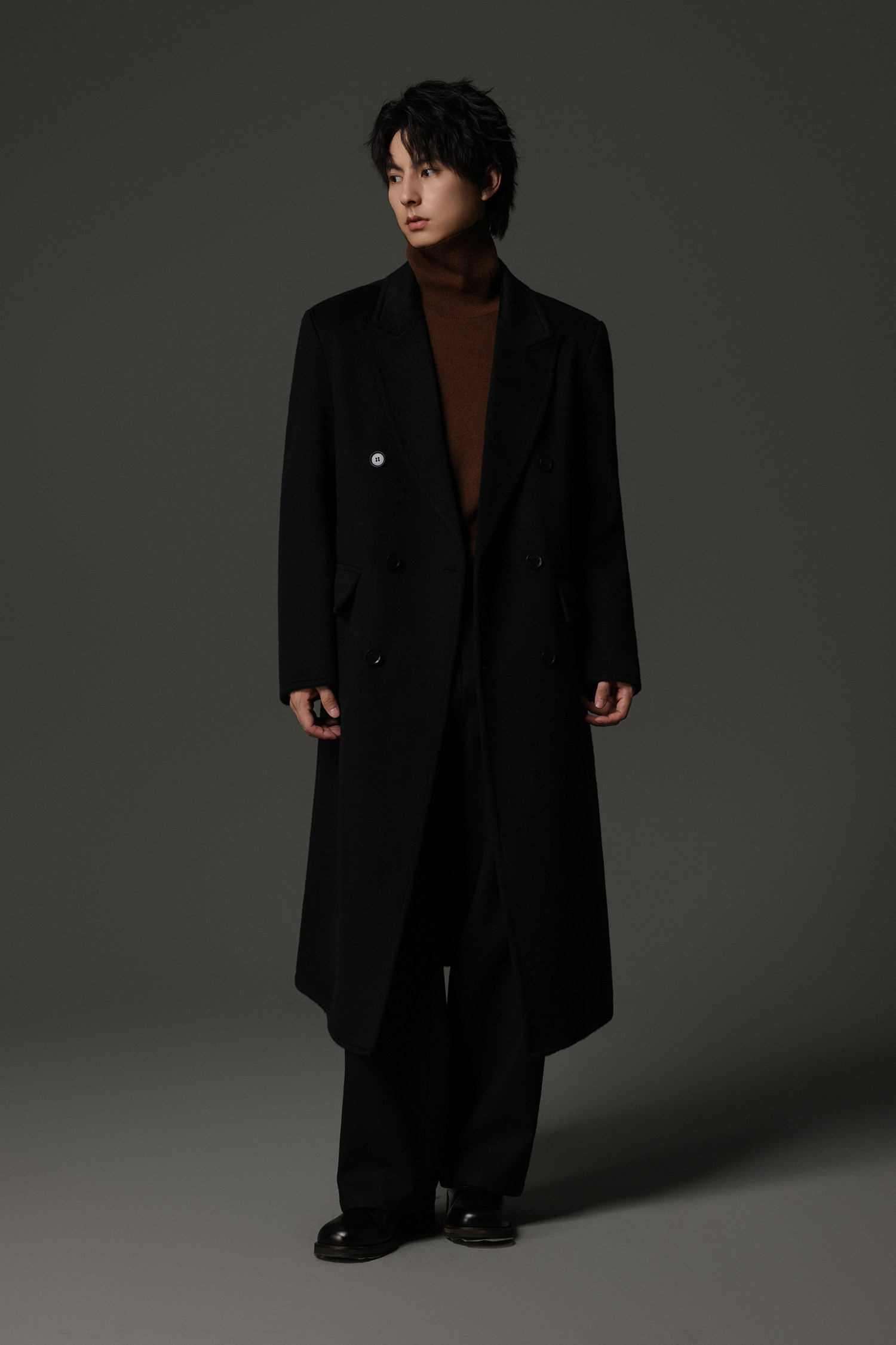 【Double-Sided Full Wool】Men's Over-The-Knee Woolen Coat with Padded Shoulders, Thickened Old Money Style Woolen Jacket