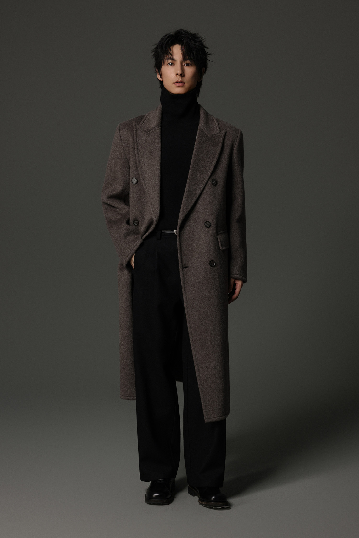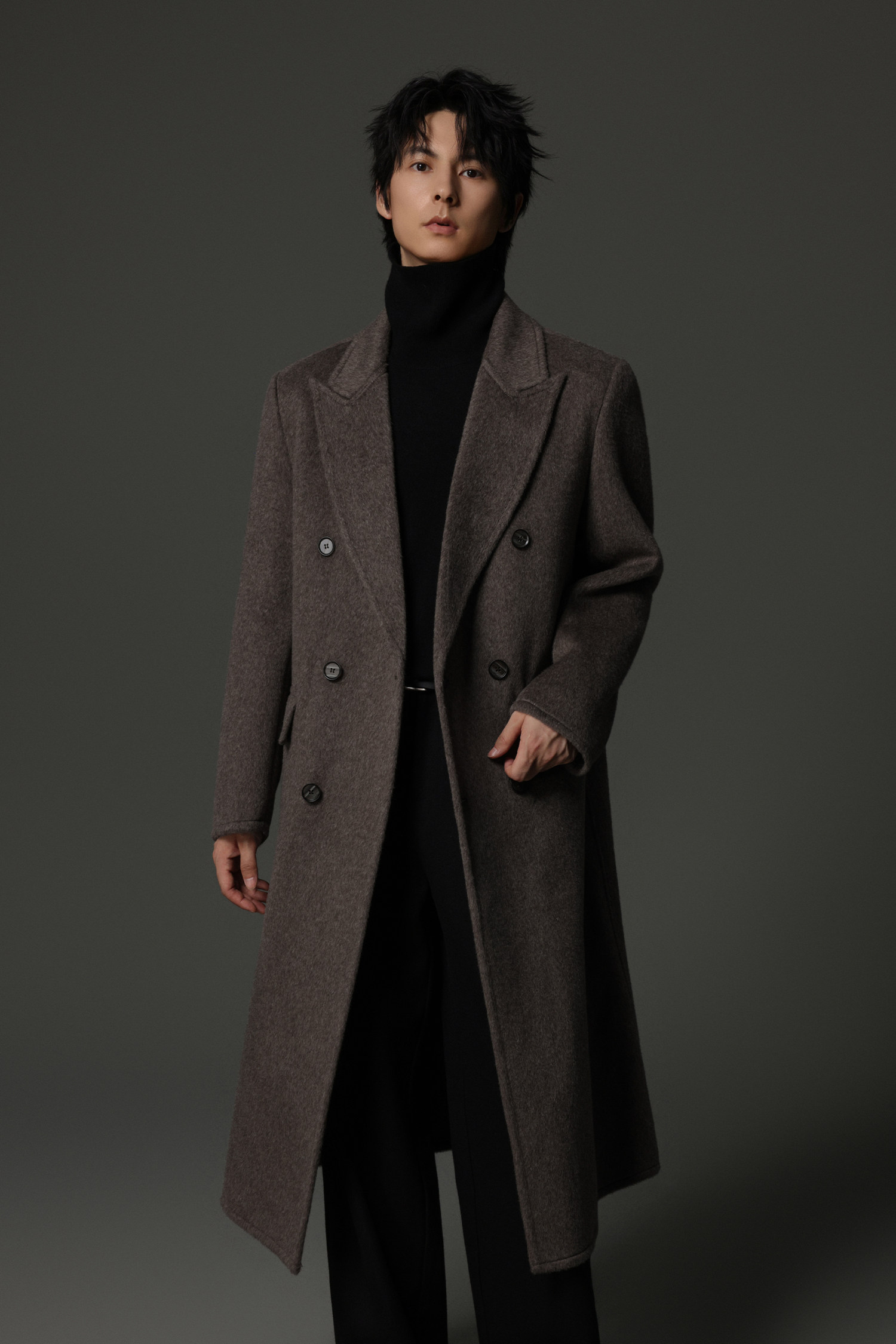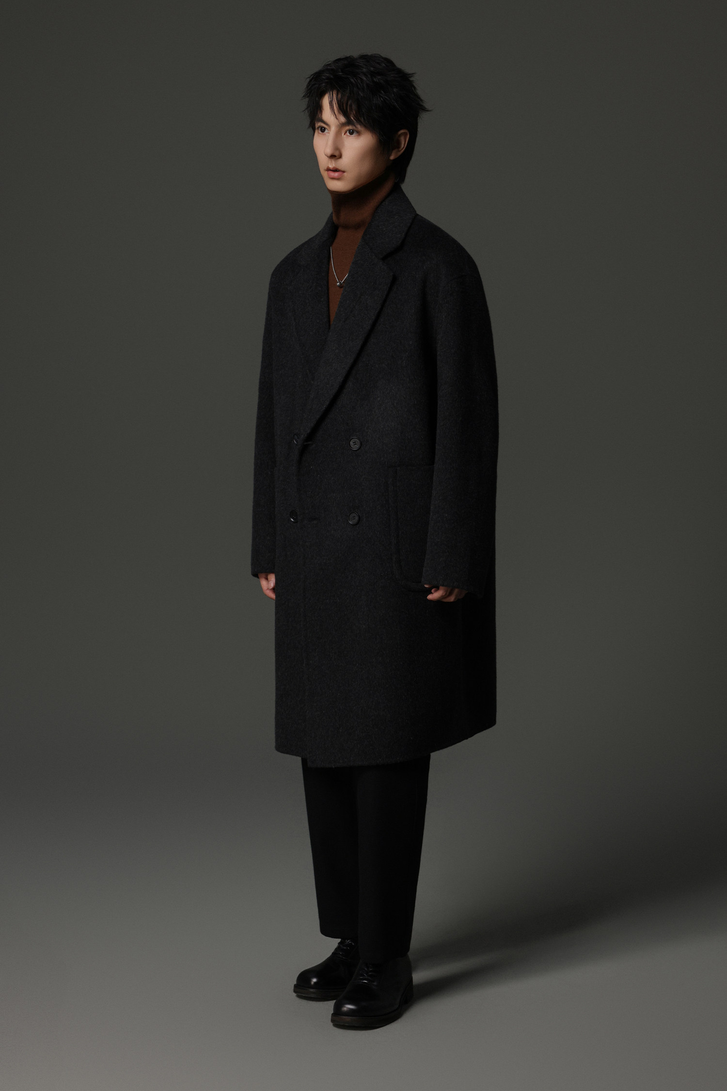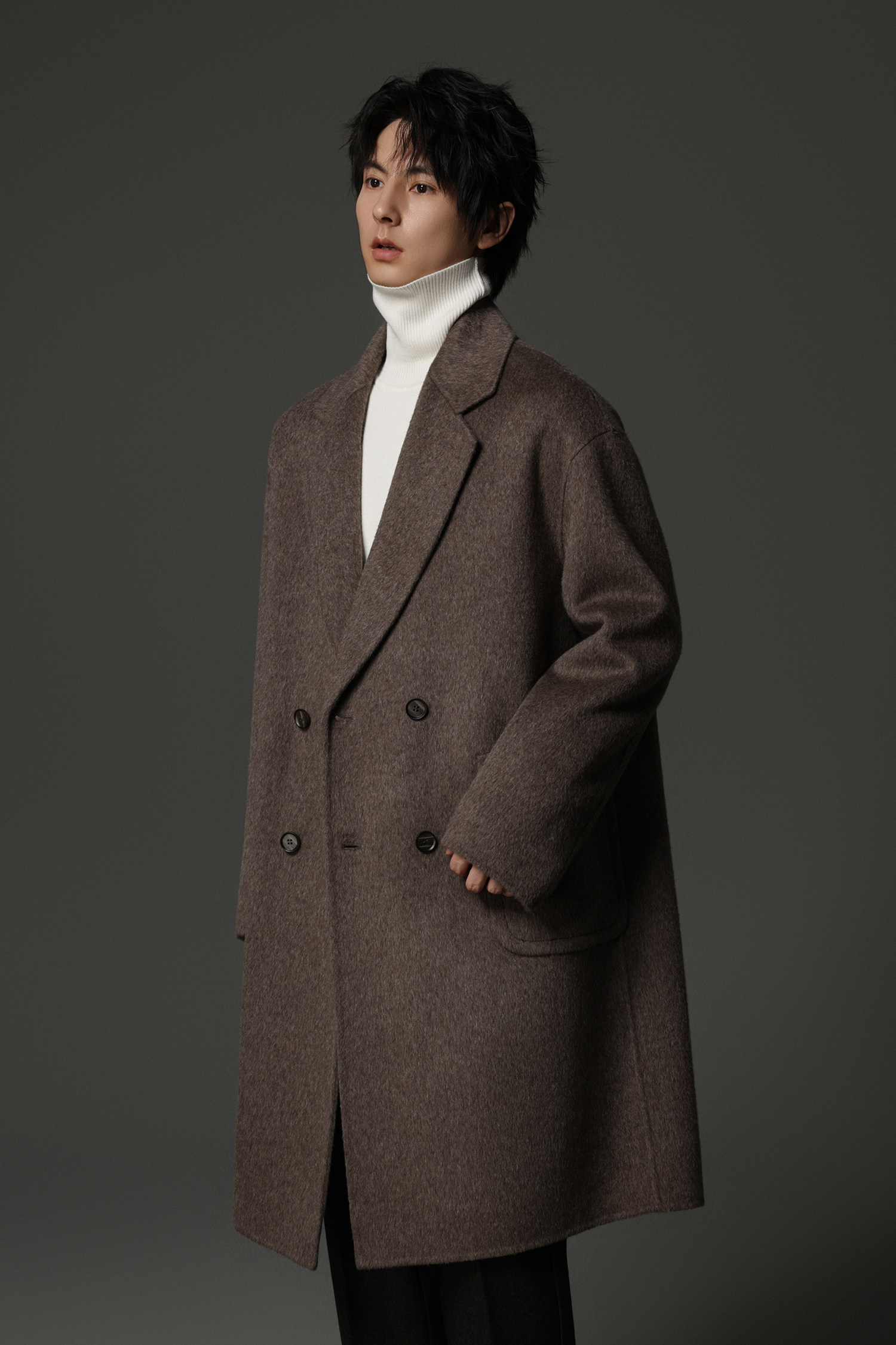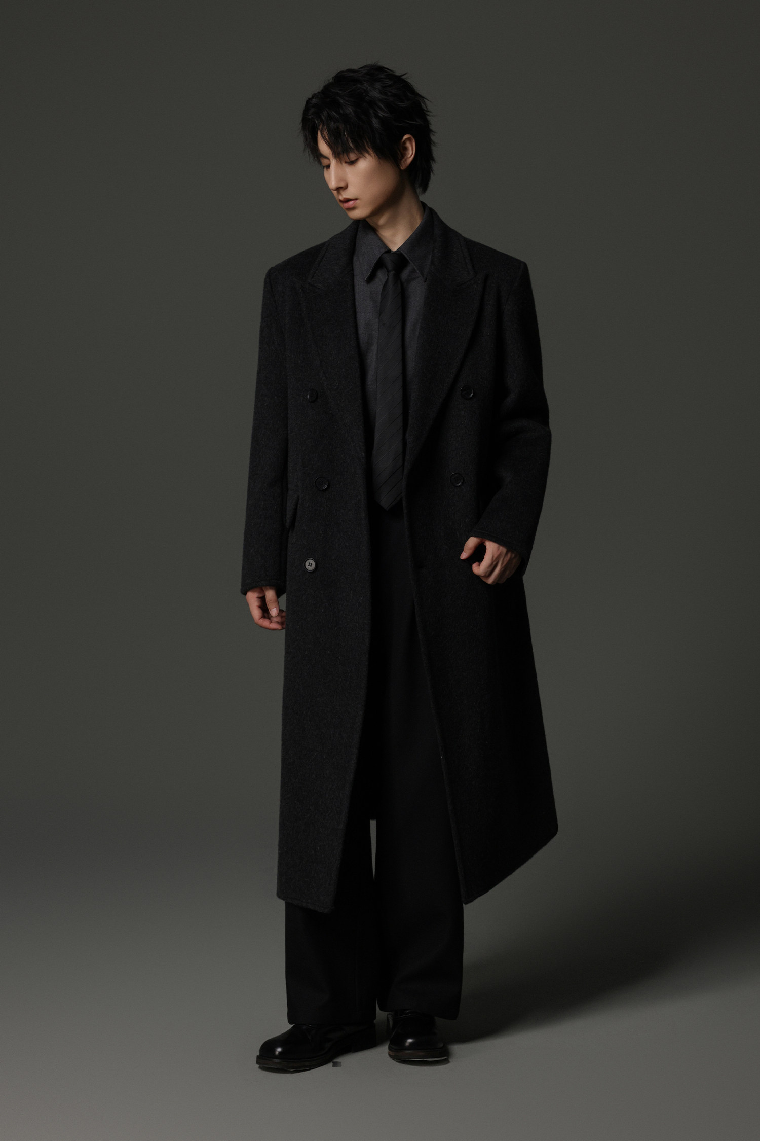 【Double-Sided Full Wool】Men's Over-The-Knee Woolen Coat with Padded Shoulders, Thickened Old Money Style Woolen Jacket