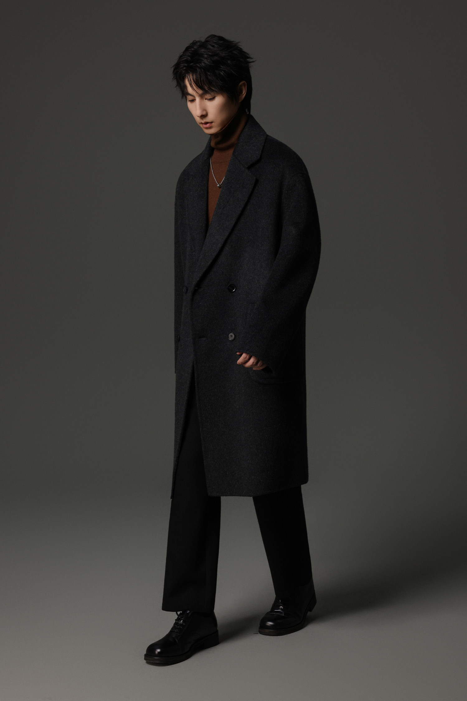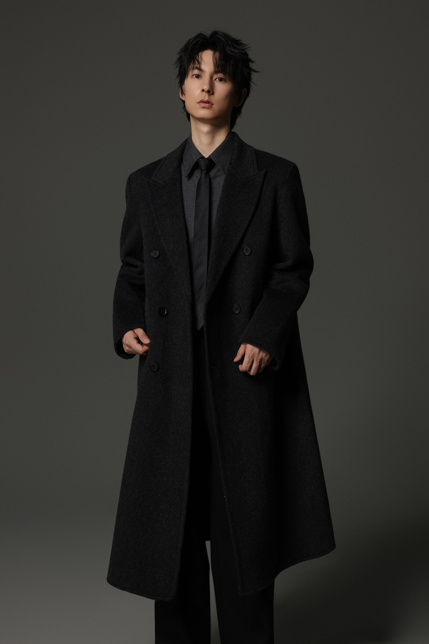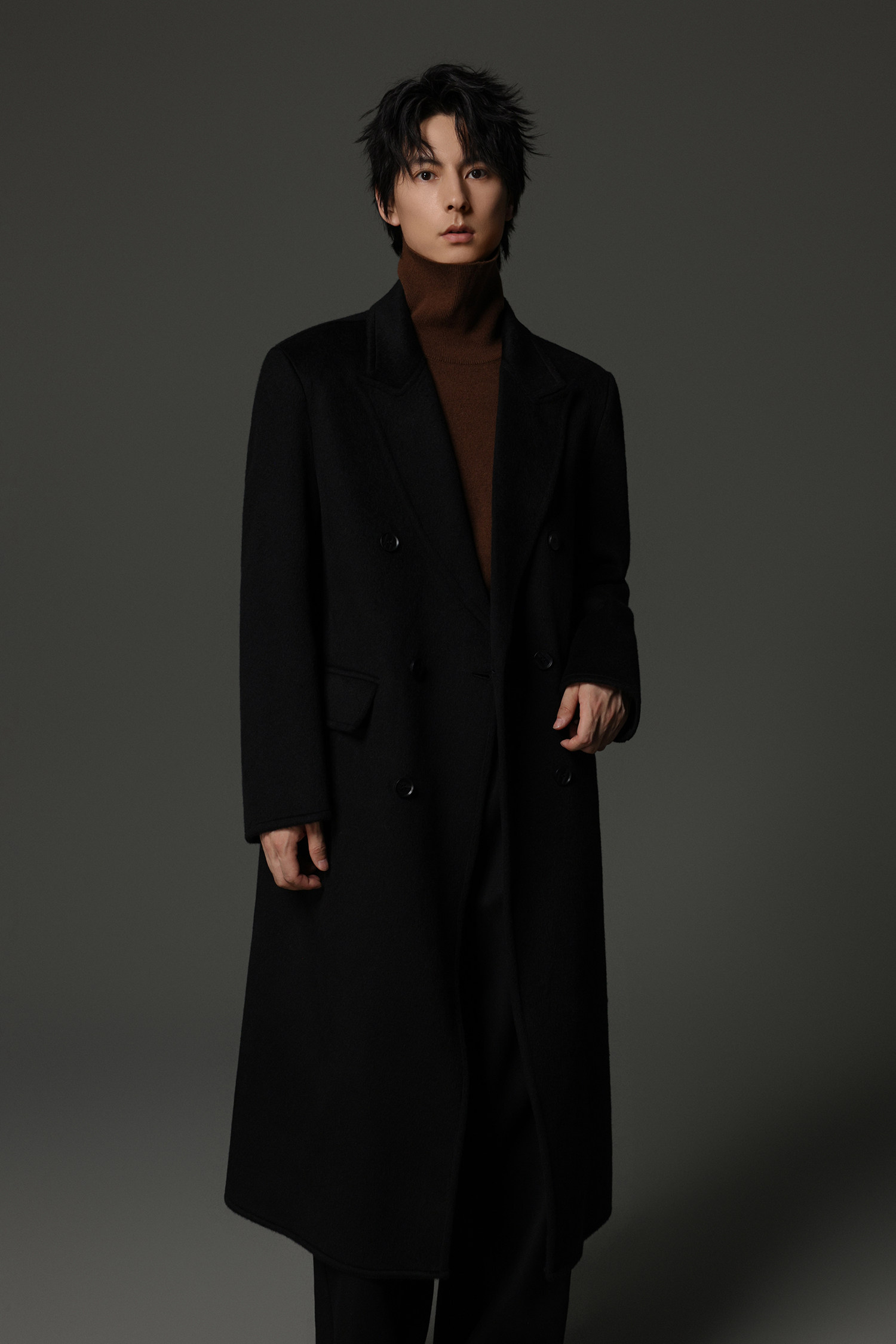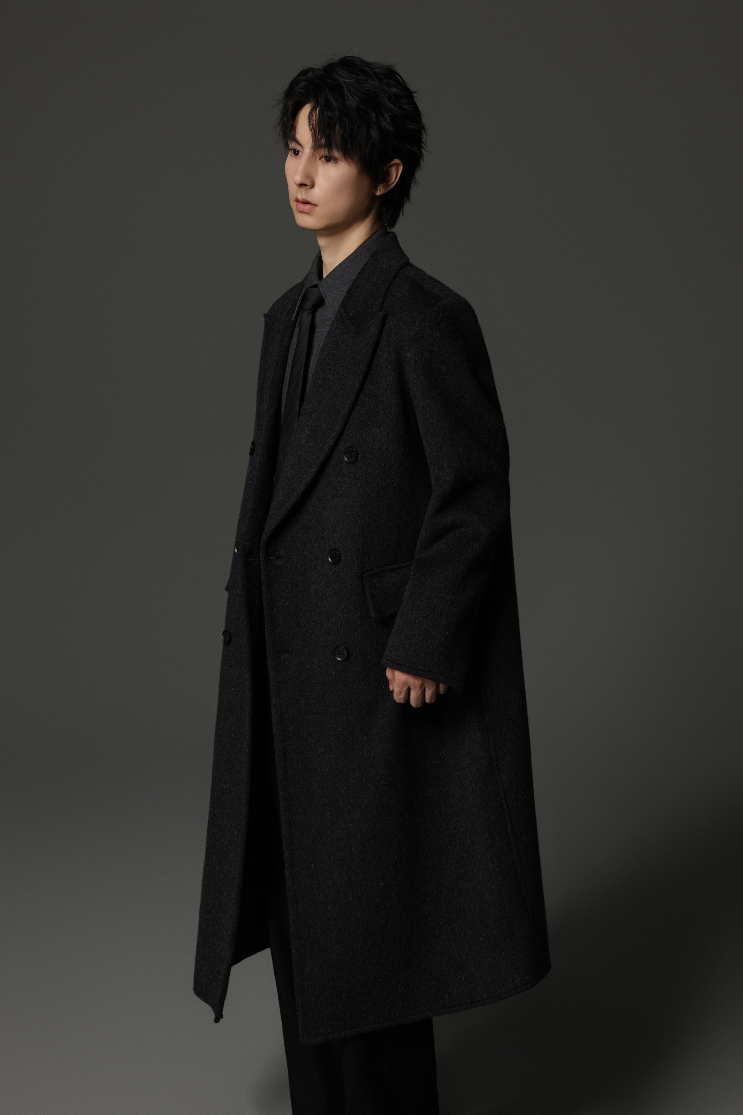 【Double-Sided Full Wool】Men's Over-The-Knee Woolen Coat with Padded Shoulders, Thickened Old Money Style Woolen Jacket