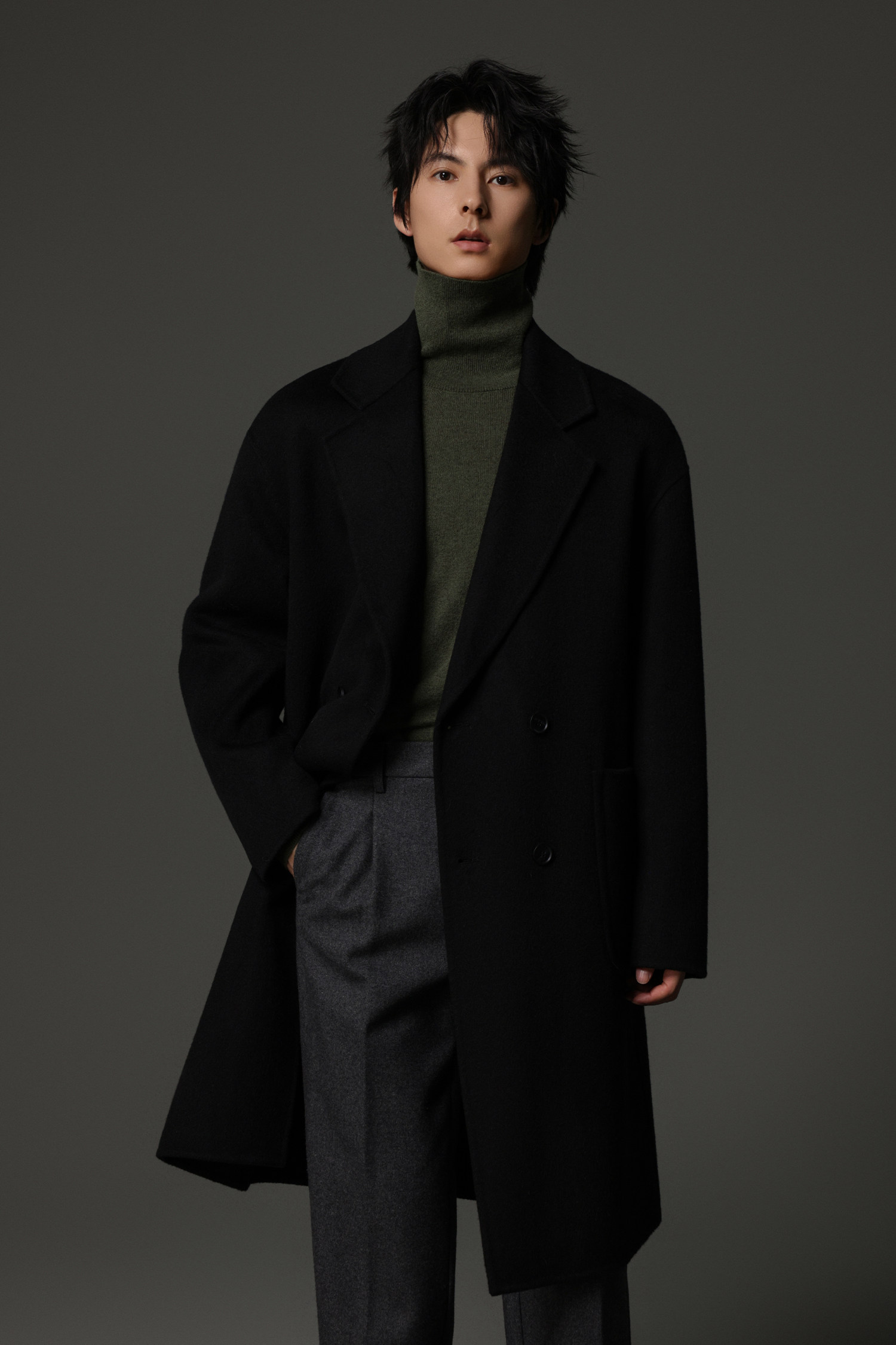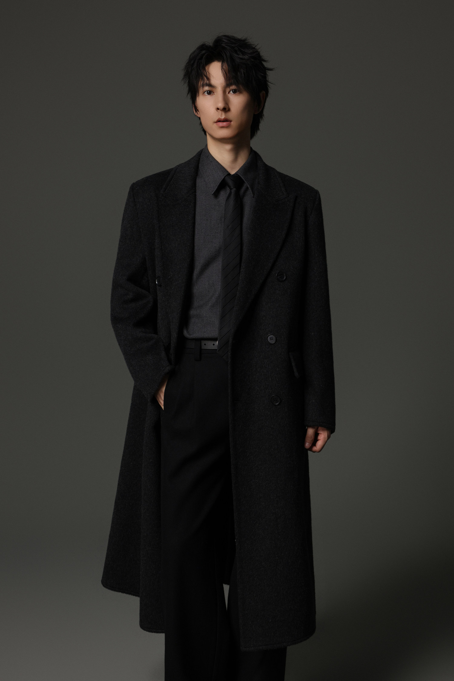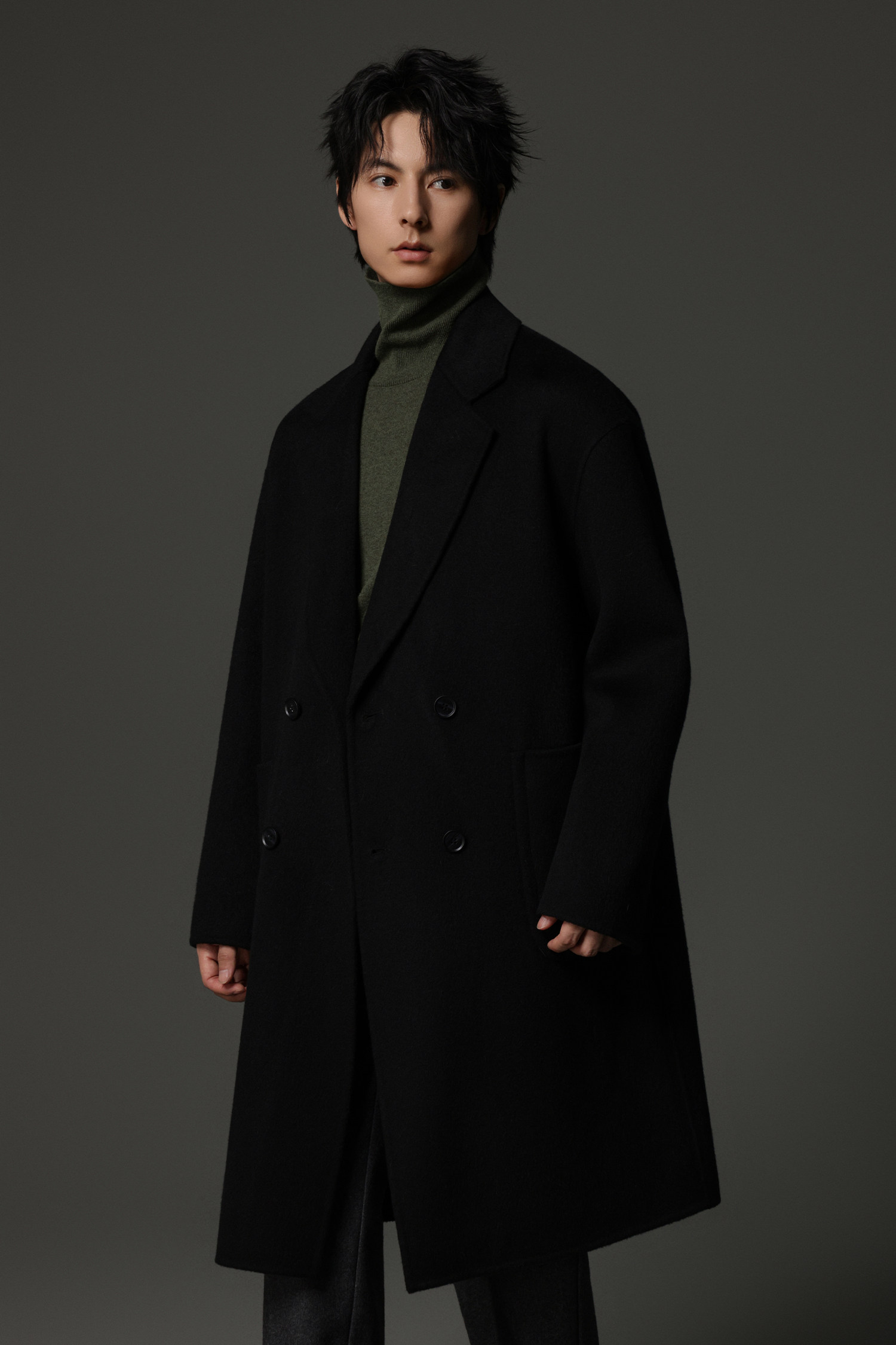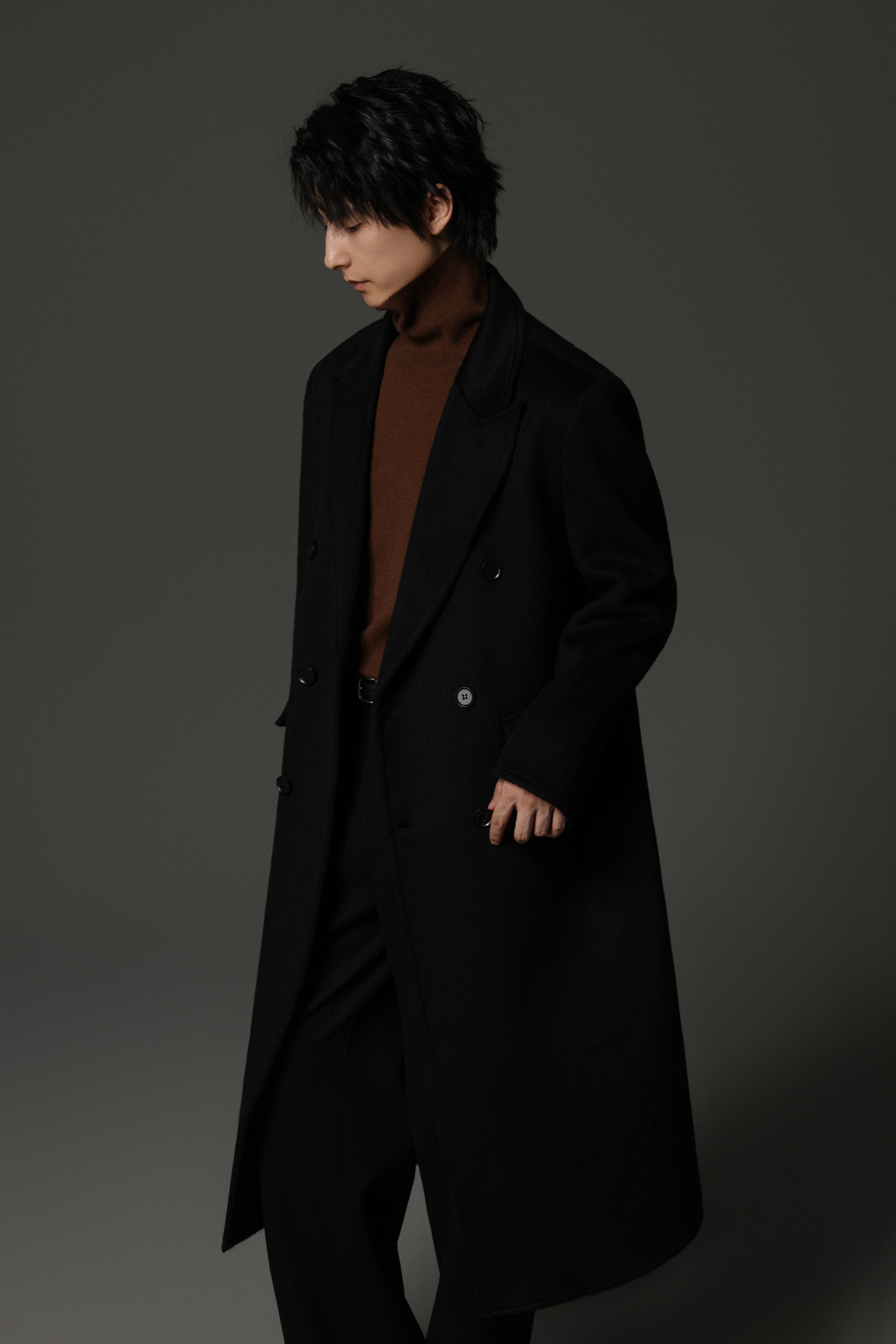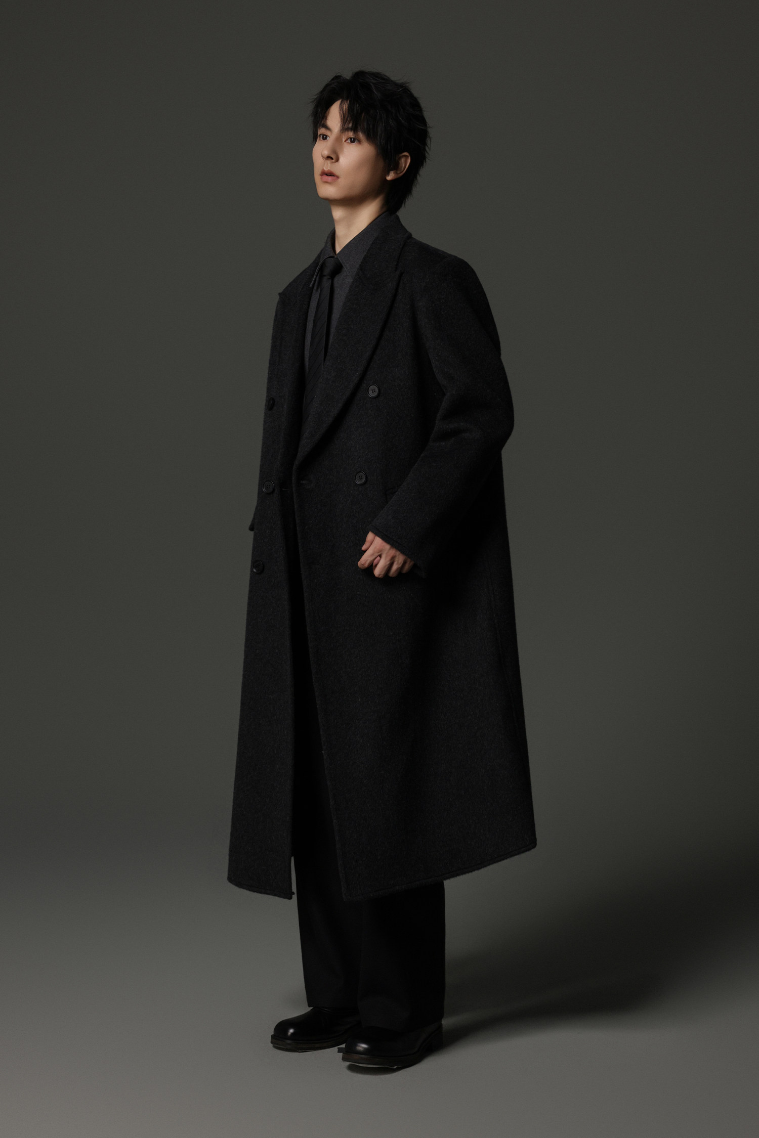 【Double-Sided Full Wool】Men's Over-The-Knee Woolen Coat with Padded Shoulders, Thickened Old Money Style Woolen Jacket