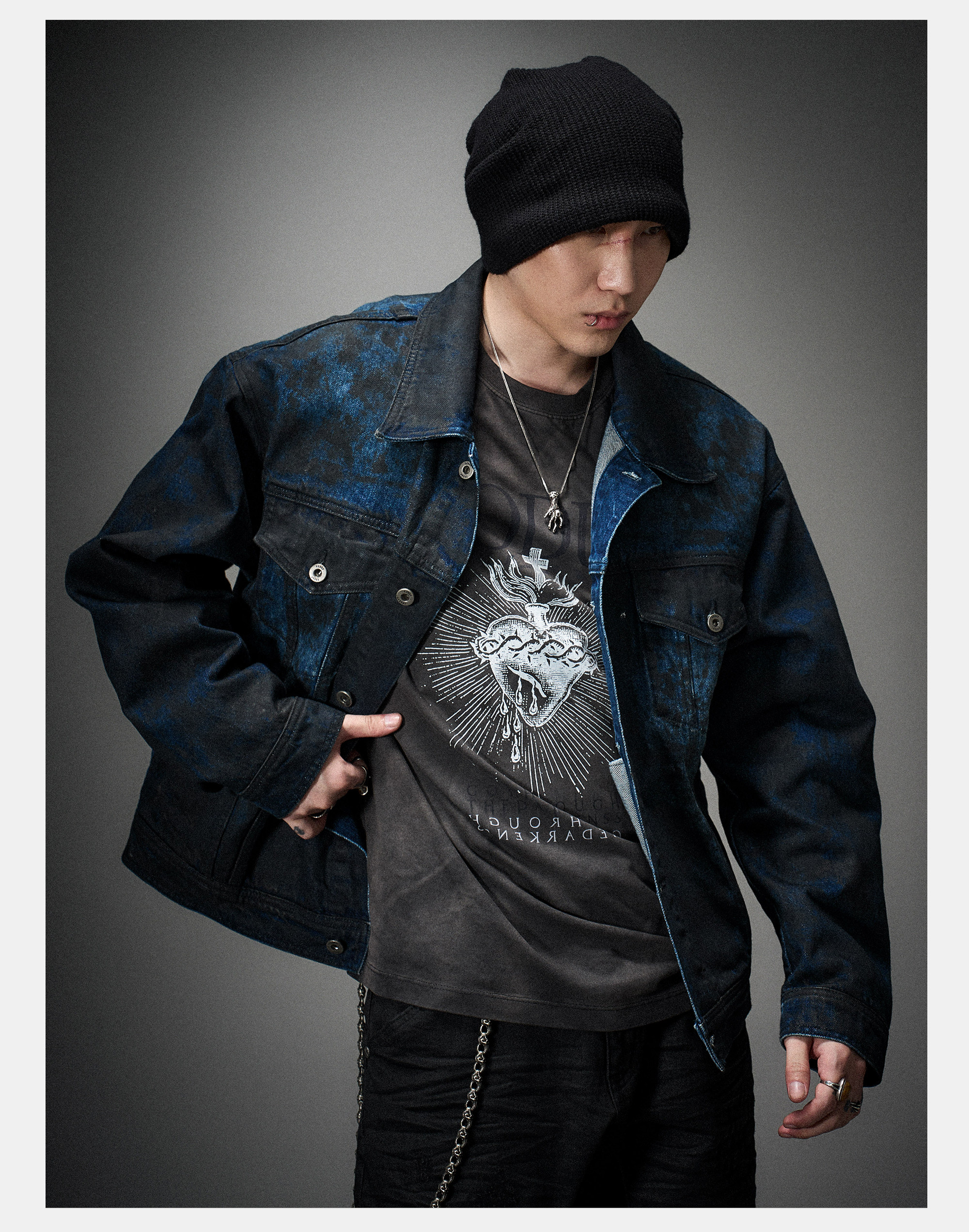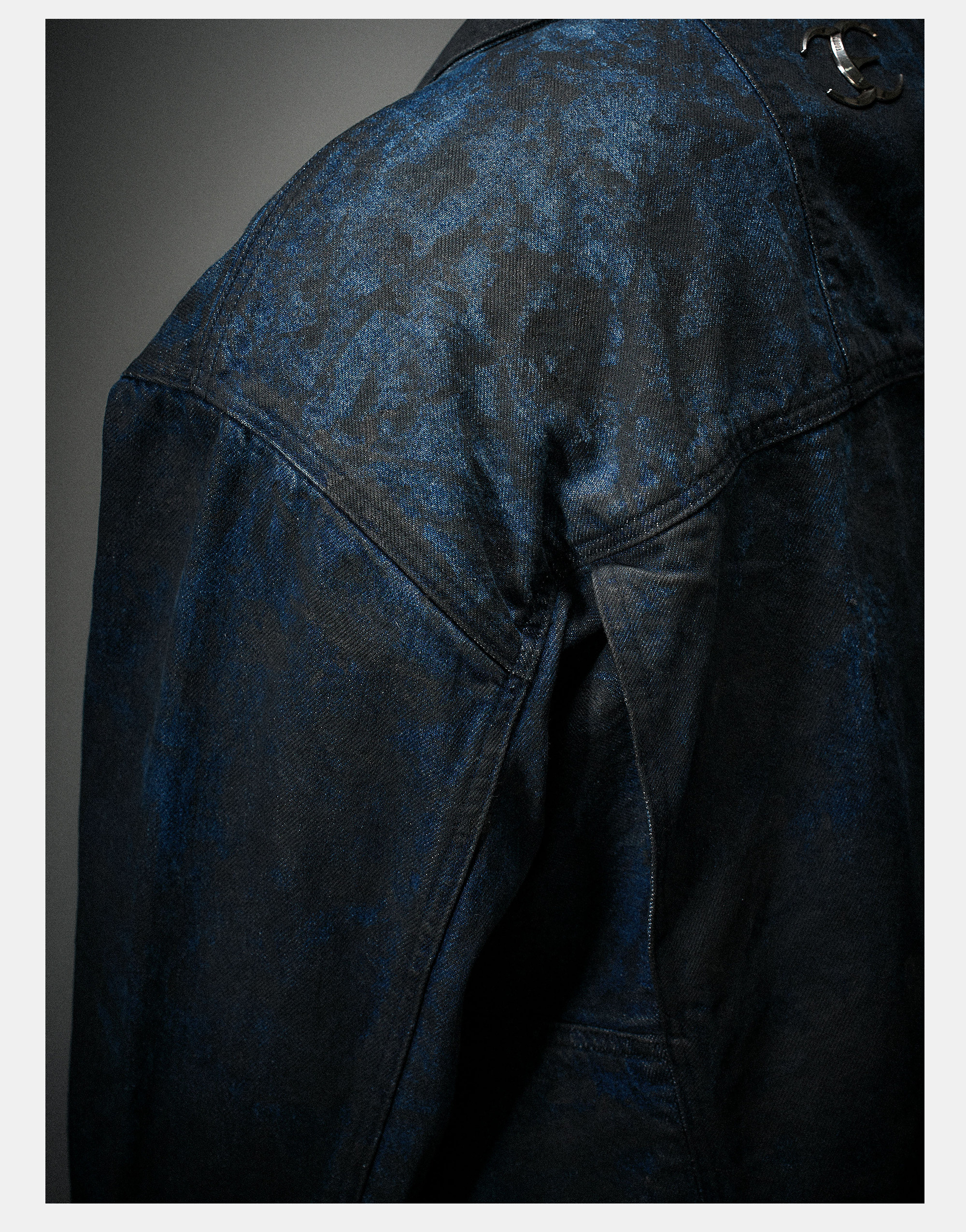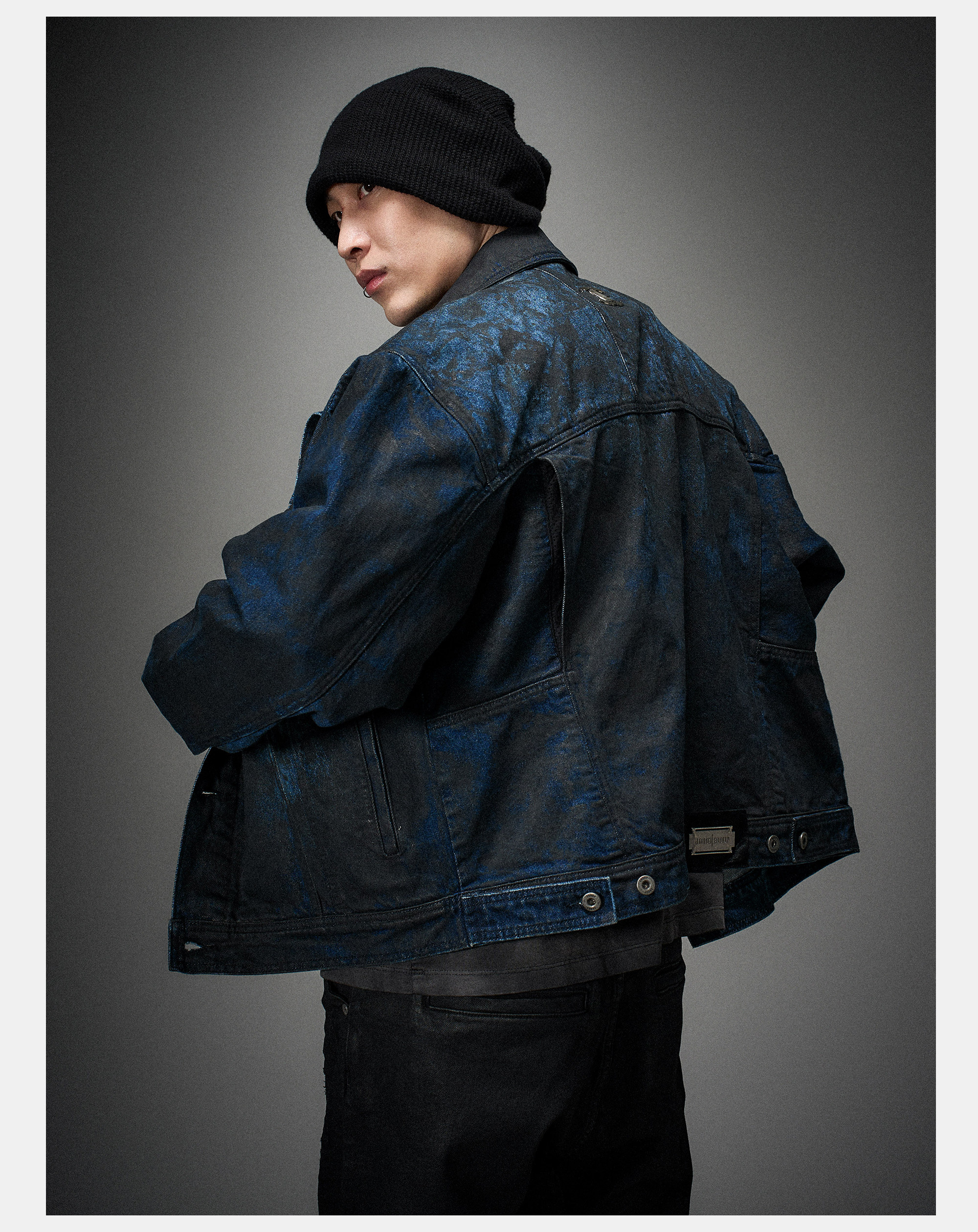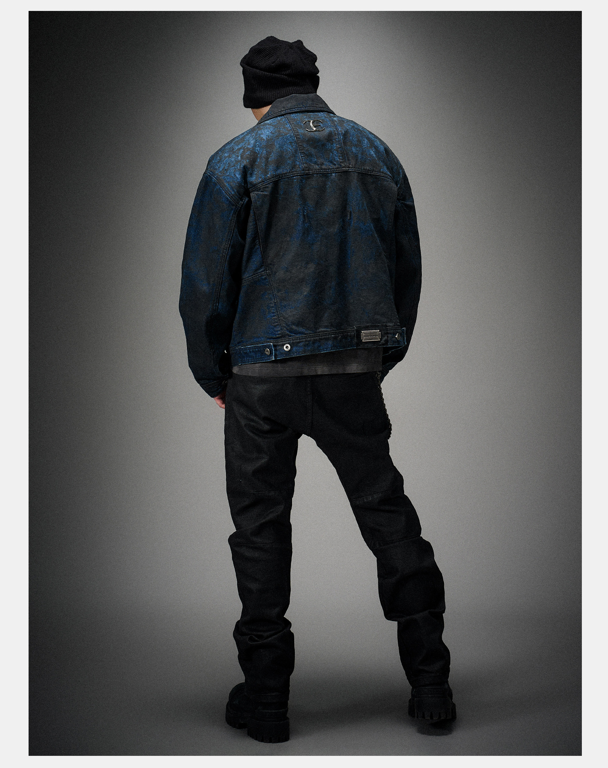 Eodup'Extreme Night' Mottled Ice Blue Gradient Dark Avant-Garde Heavy Industry Distressed Color Block Deconstructed Denim Jacket