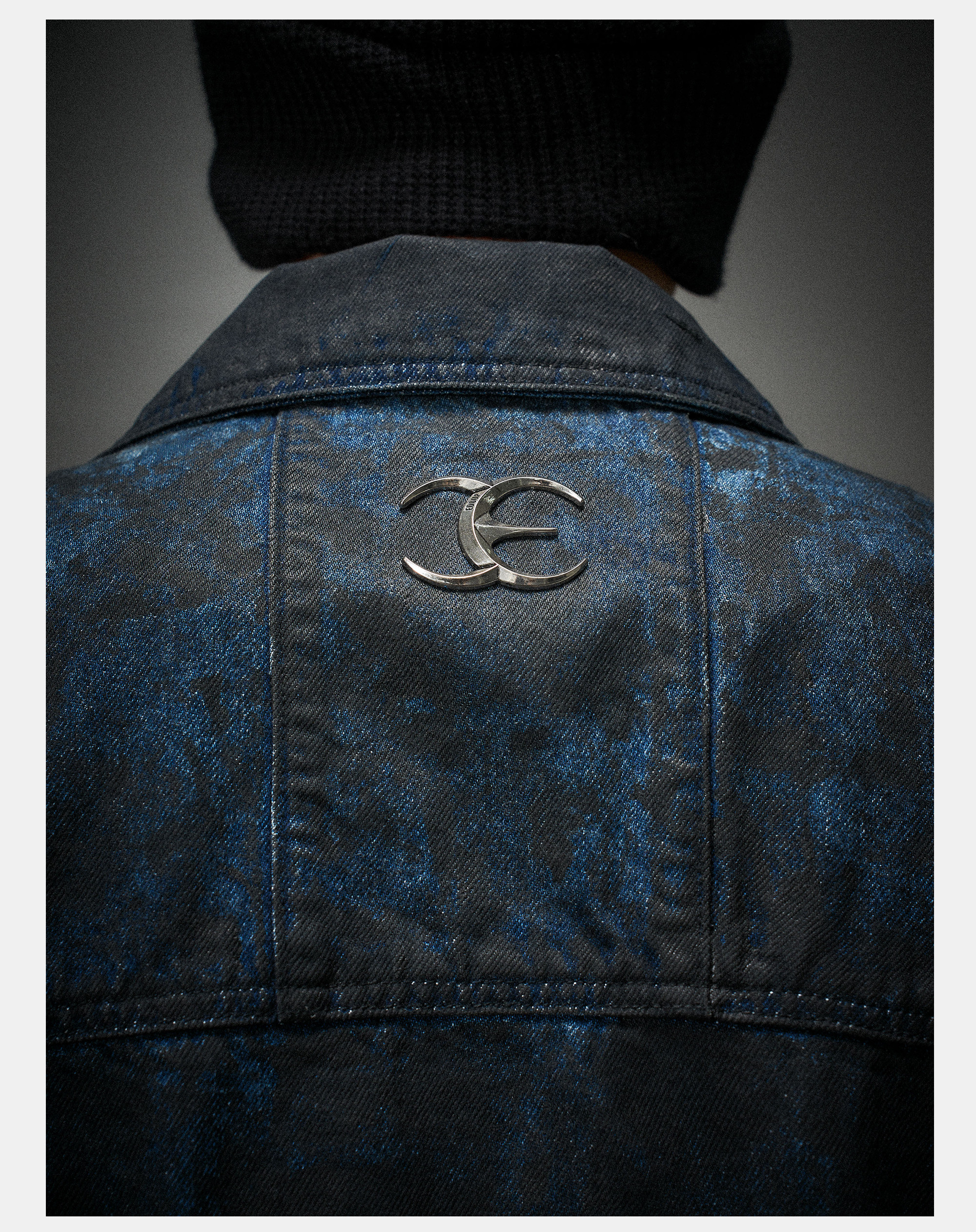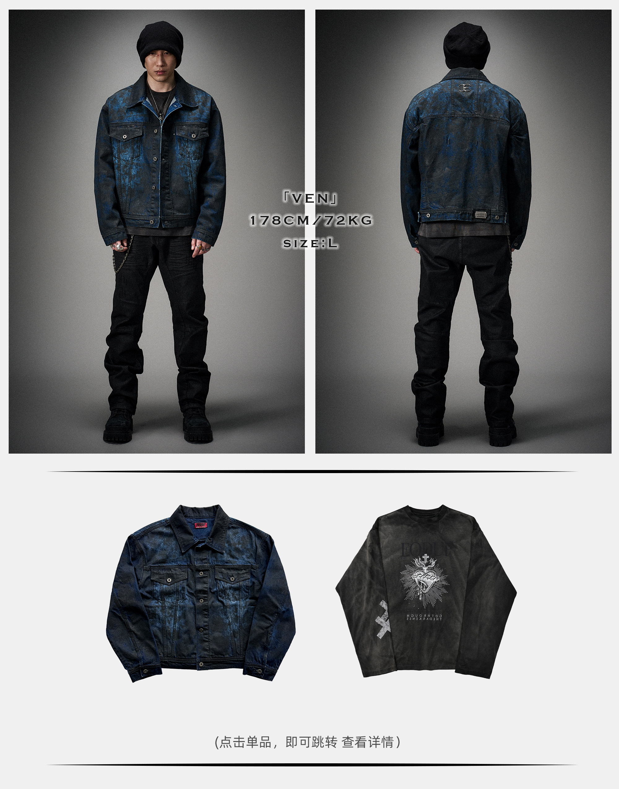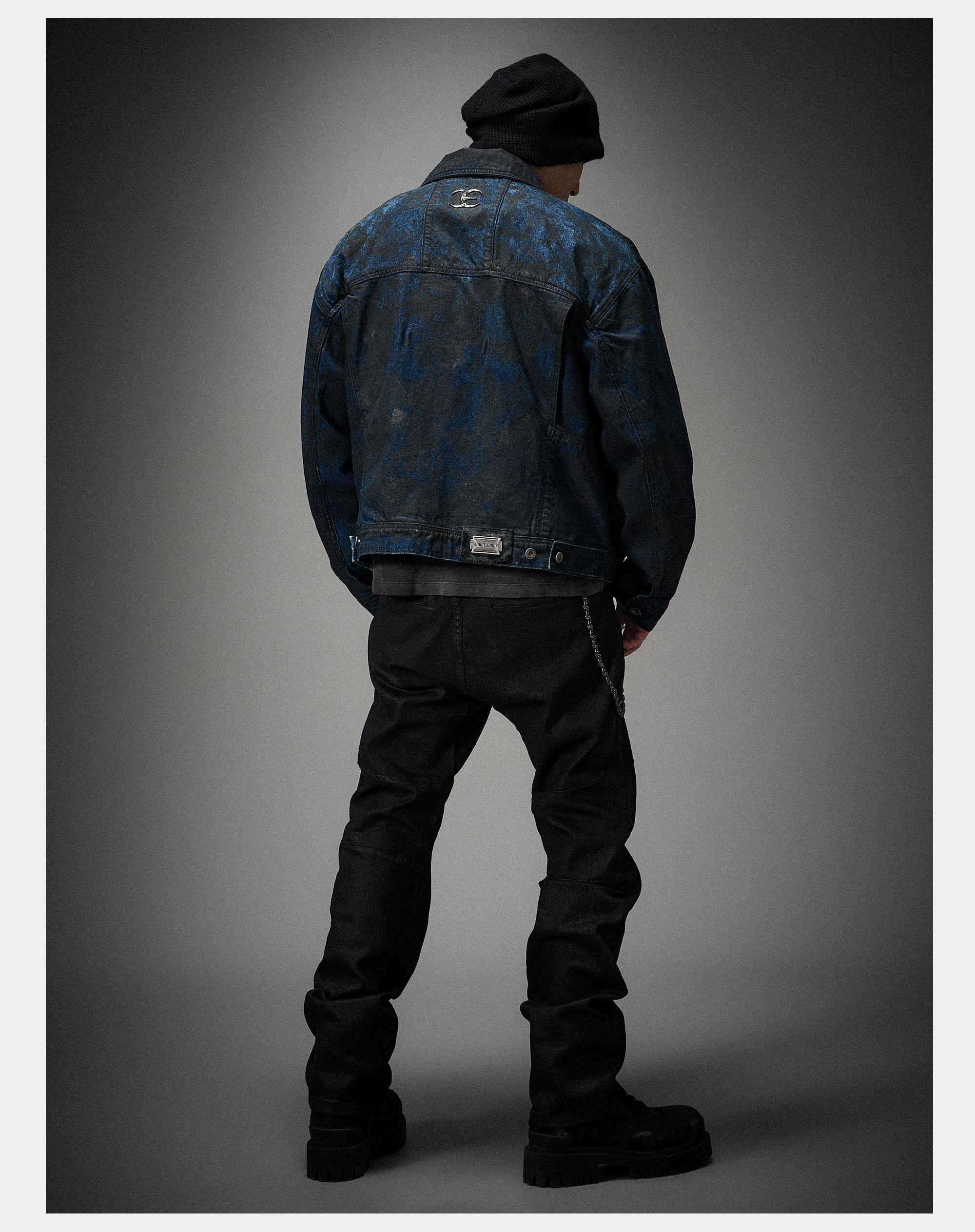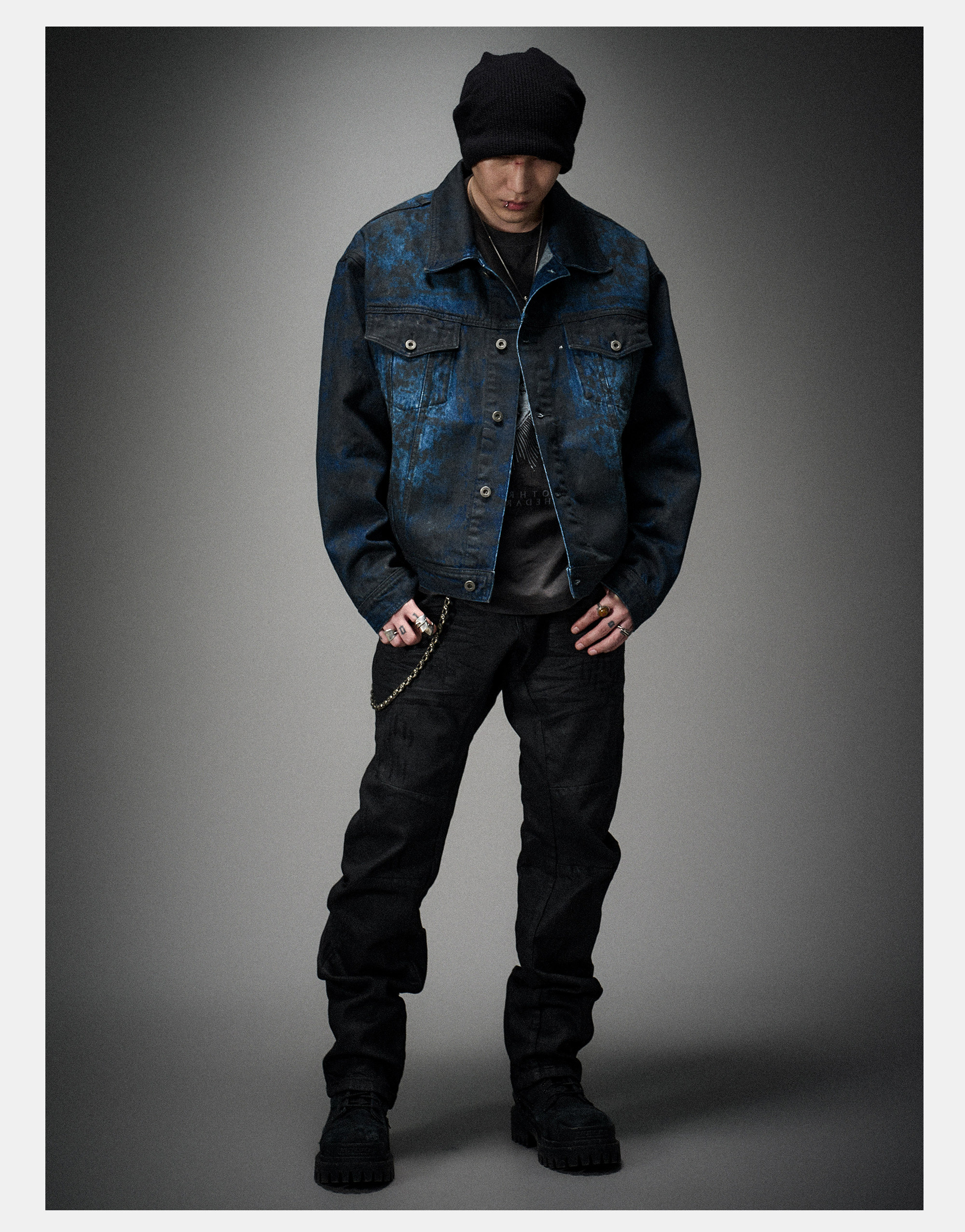 Eodup'Extreme Night' Mottled Ice Blue Gradient Dark Avant-Garde Heavy Industry Distressed Color Block Deconstructed Denim Jacket