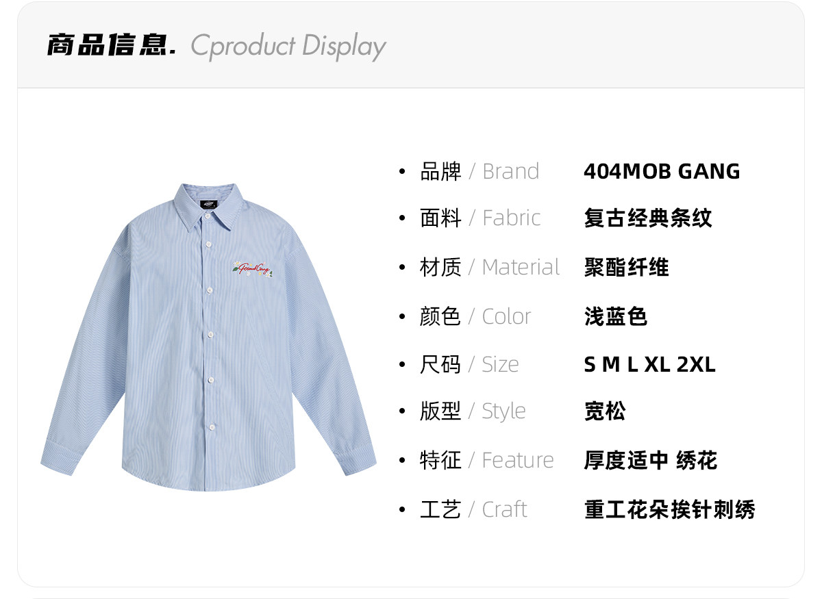 [Same Style as Zhou Keyu] 404Mob Heavy Embroidery Long-Sleeve Shirt, Unisex Style, Cozyfit Blue Striped Jacket