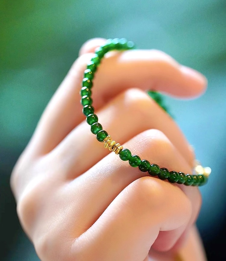Natural Burmese A-Grade Jade Bracelet, High Ice Quality, Full Spicy Green, 18K Gold Inlaid Jadeite, Collectible Bracelet, Women's Gift