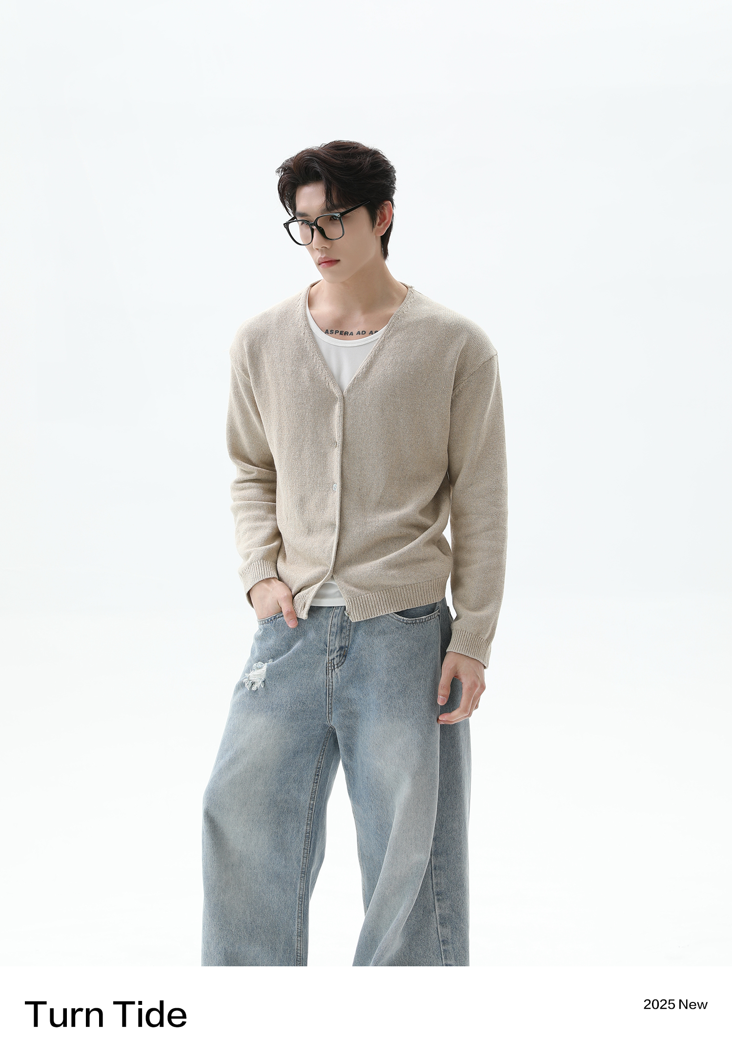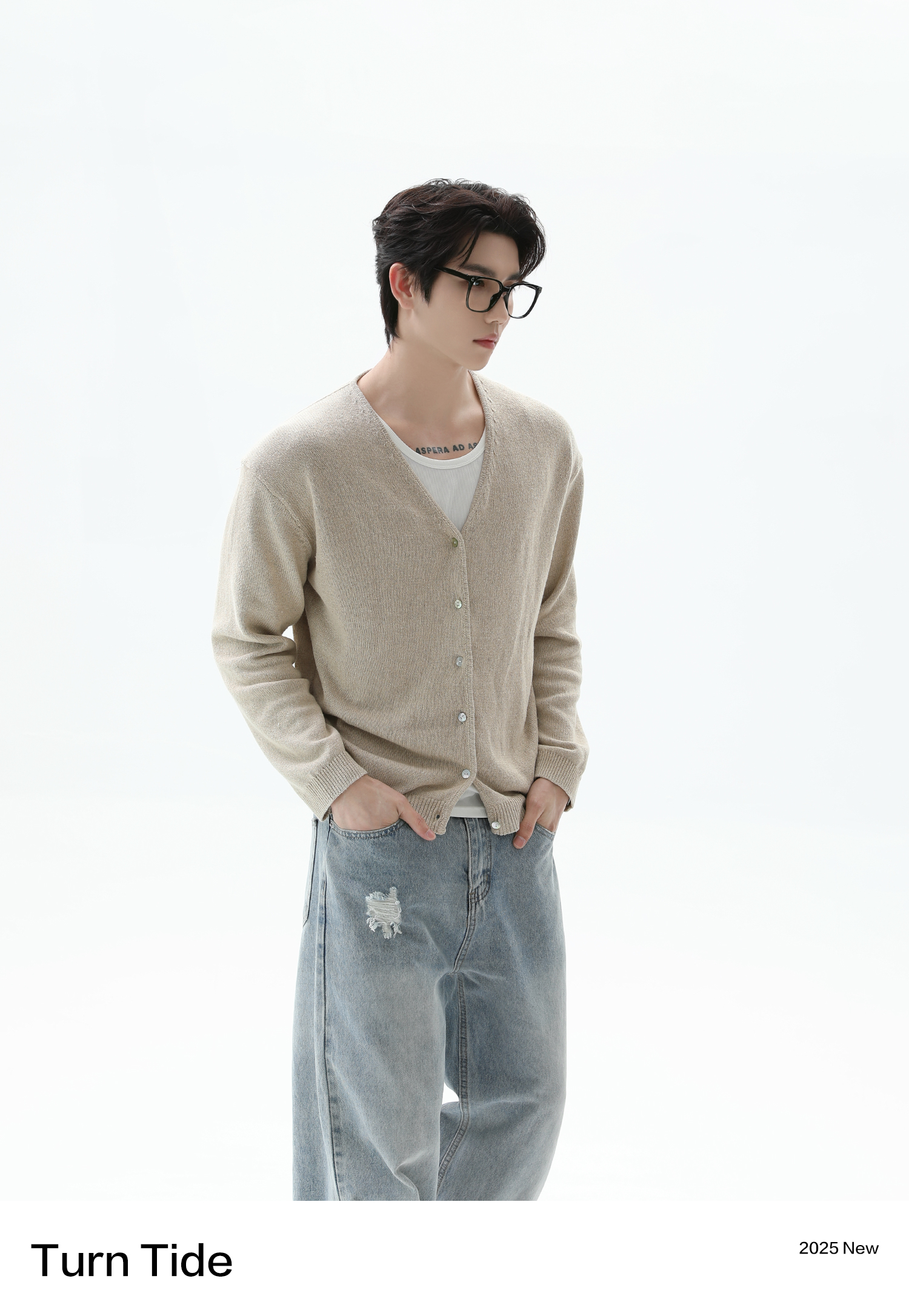 [Celebrity Style] Turntide Linen V-Neck Knitted Cardigan Sweater Cleanfit Commuting Elegant Jacket