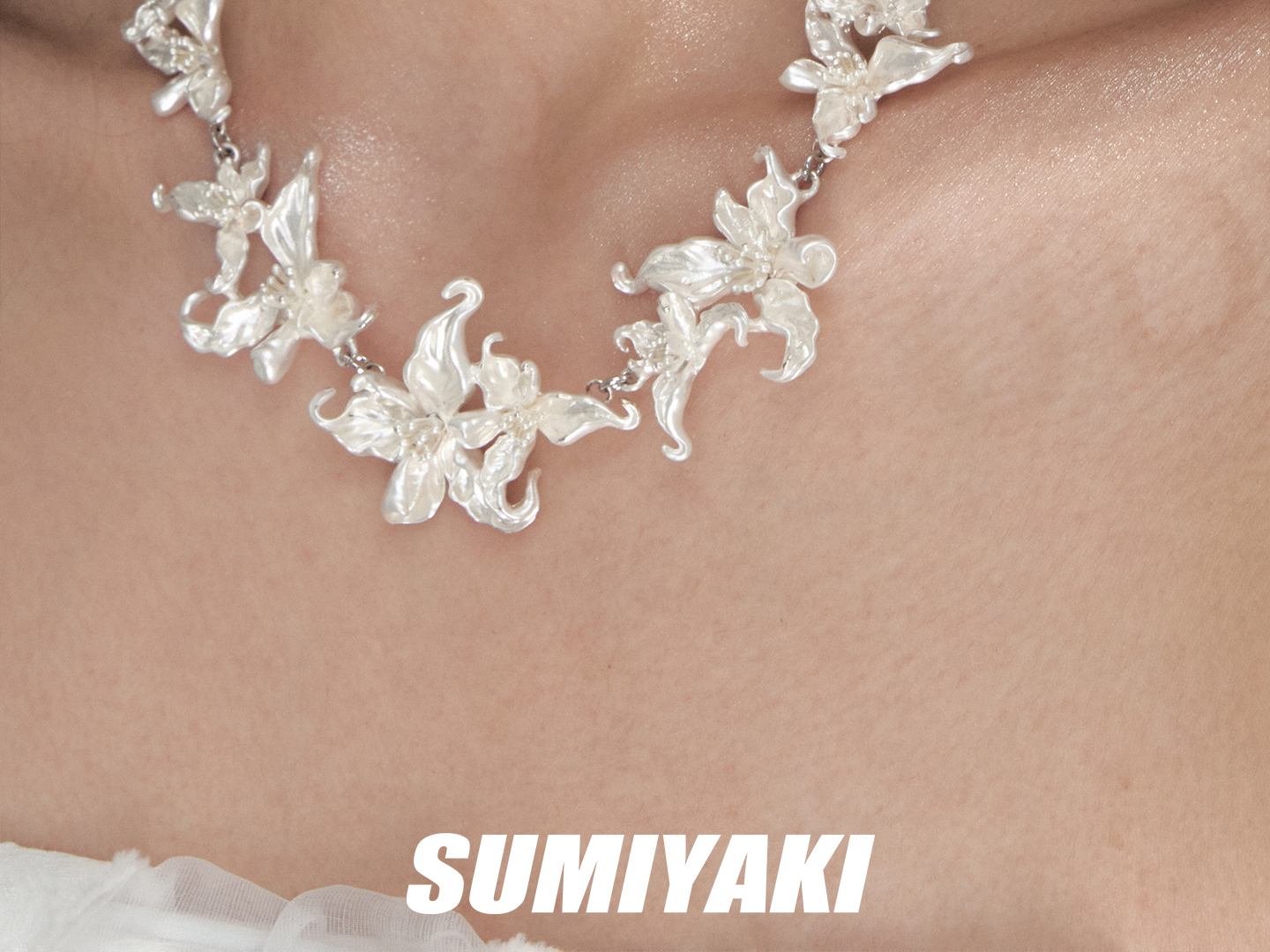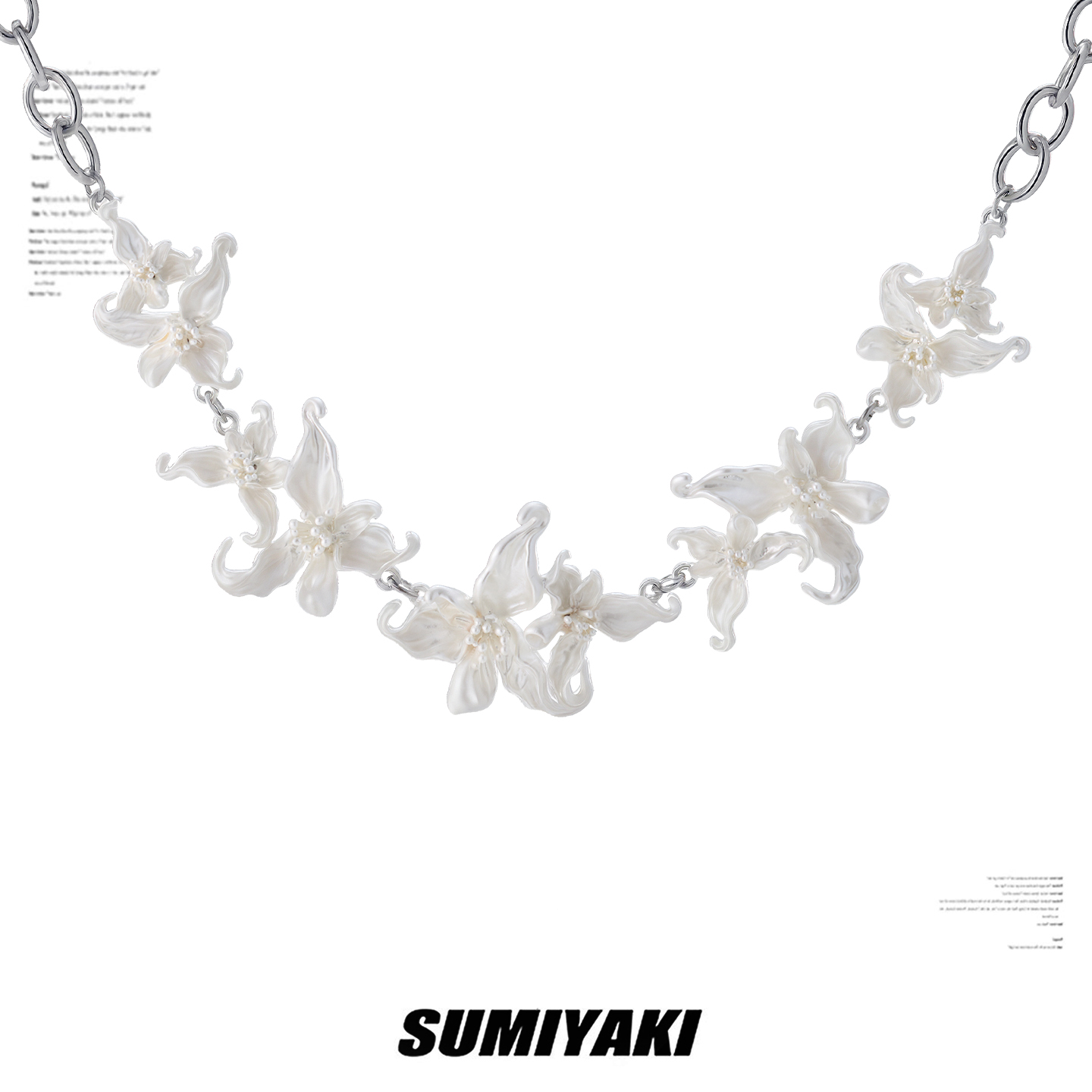 Sumiyaki Pale Whisper Series Pure White Iris Necklace Niche Design Flower Choker Accessories for Women