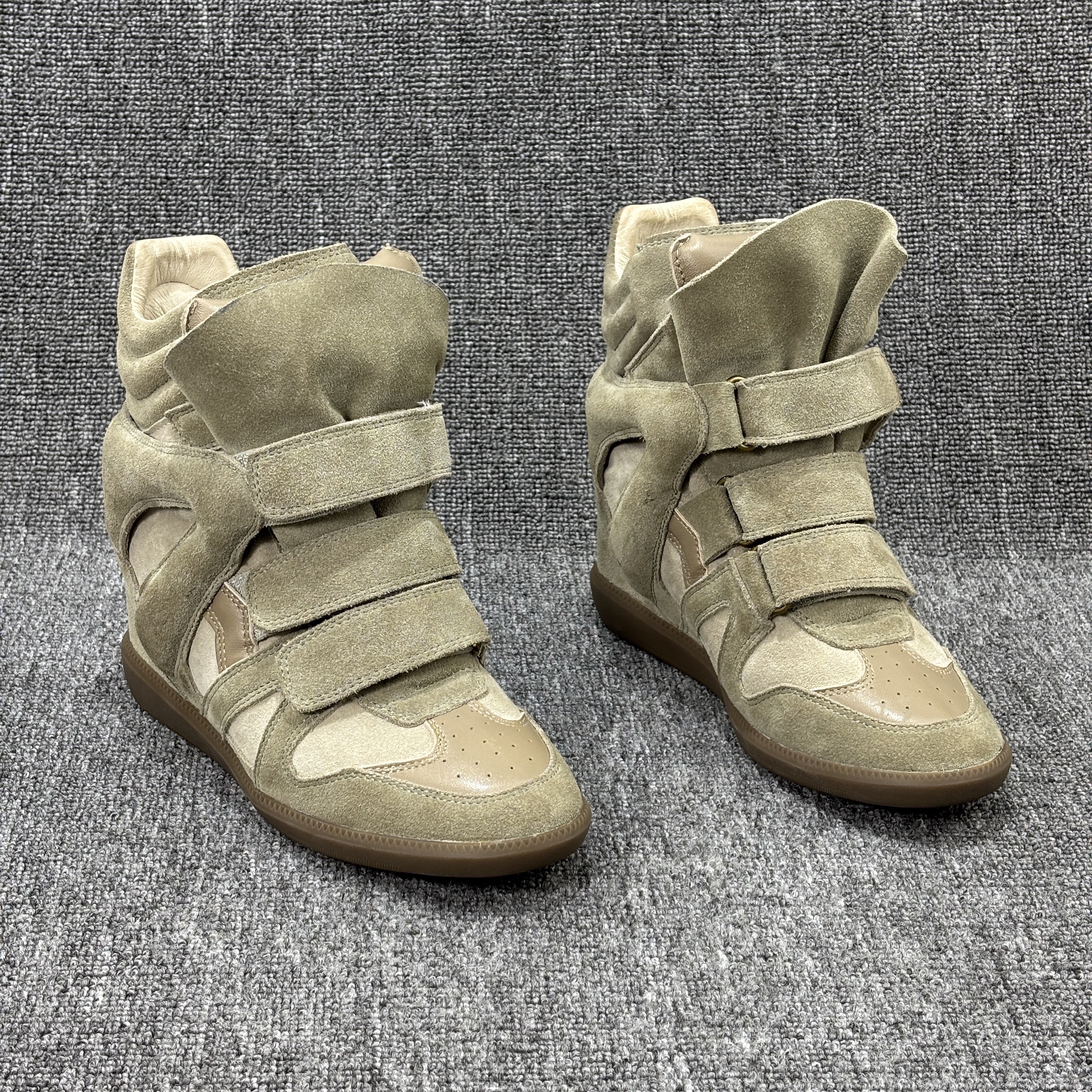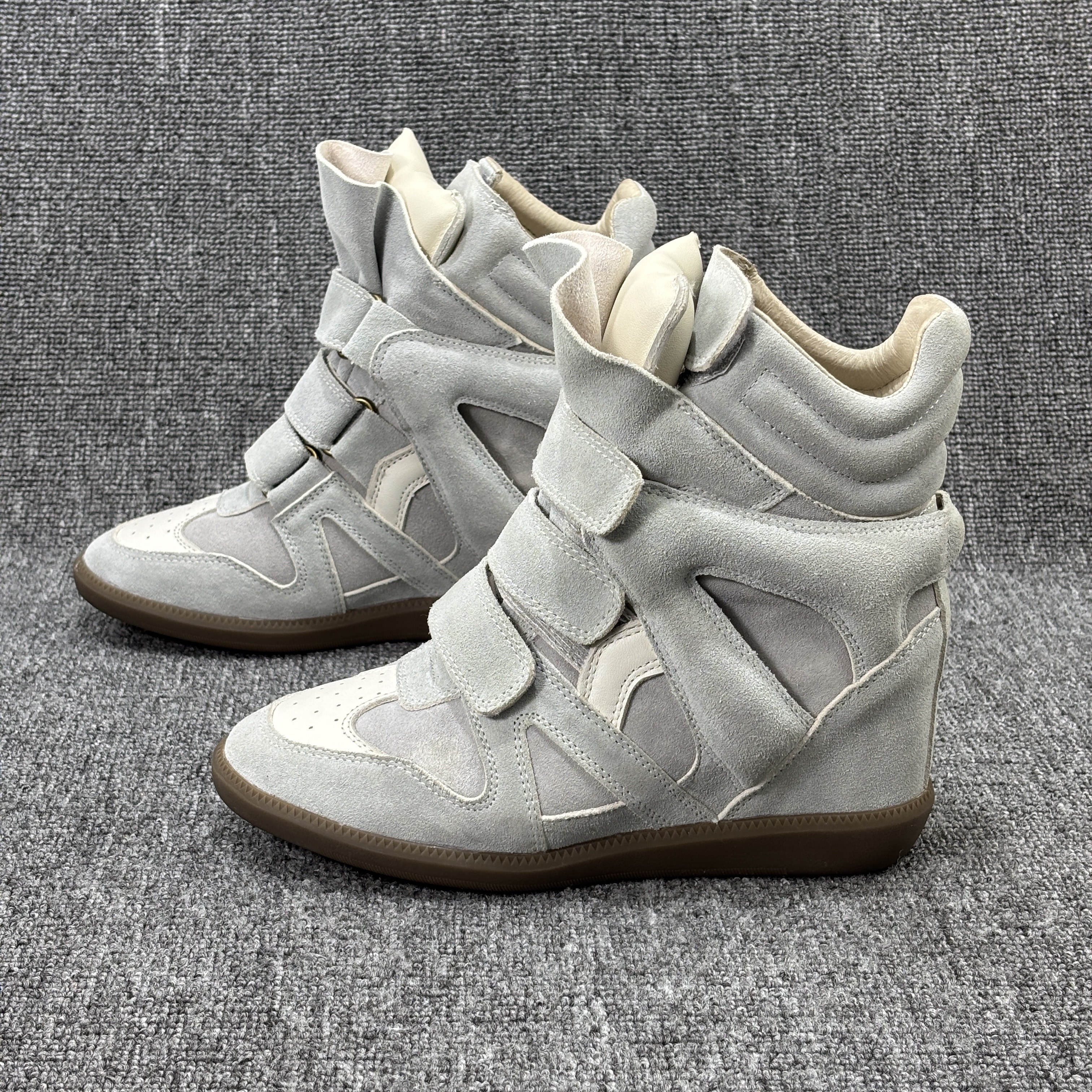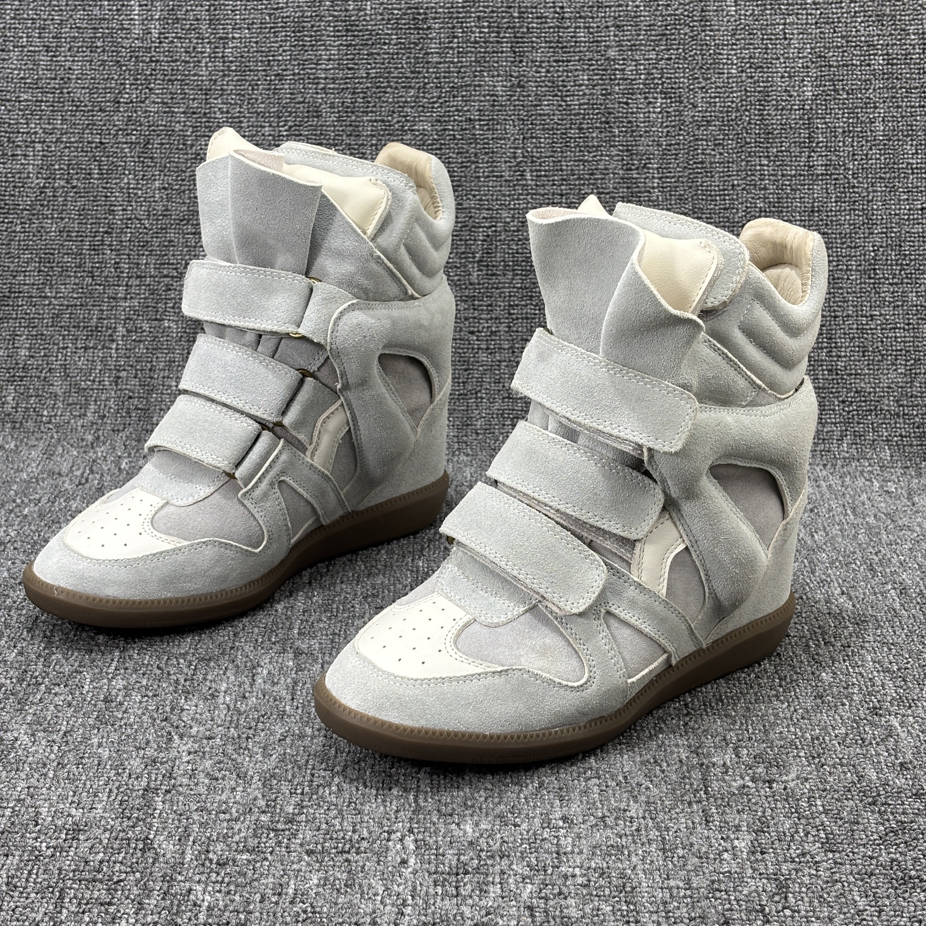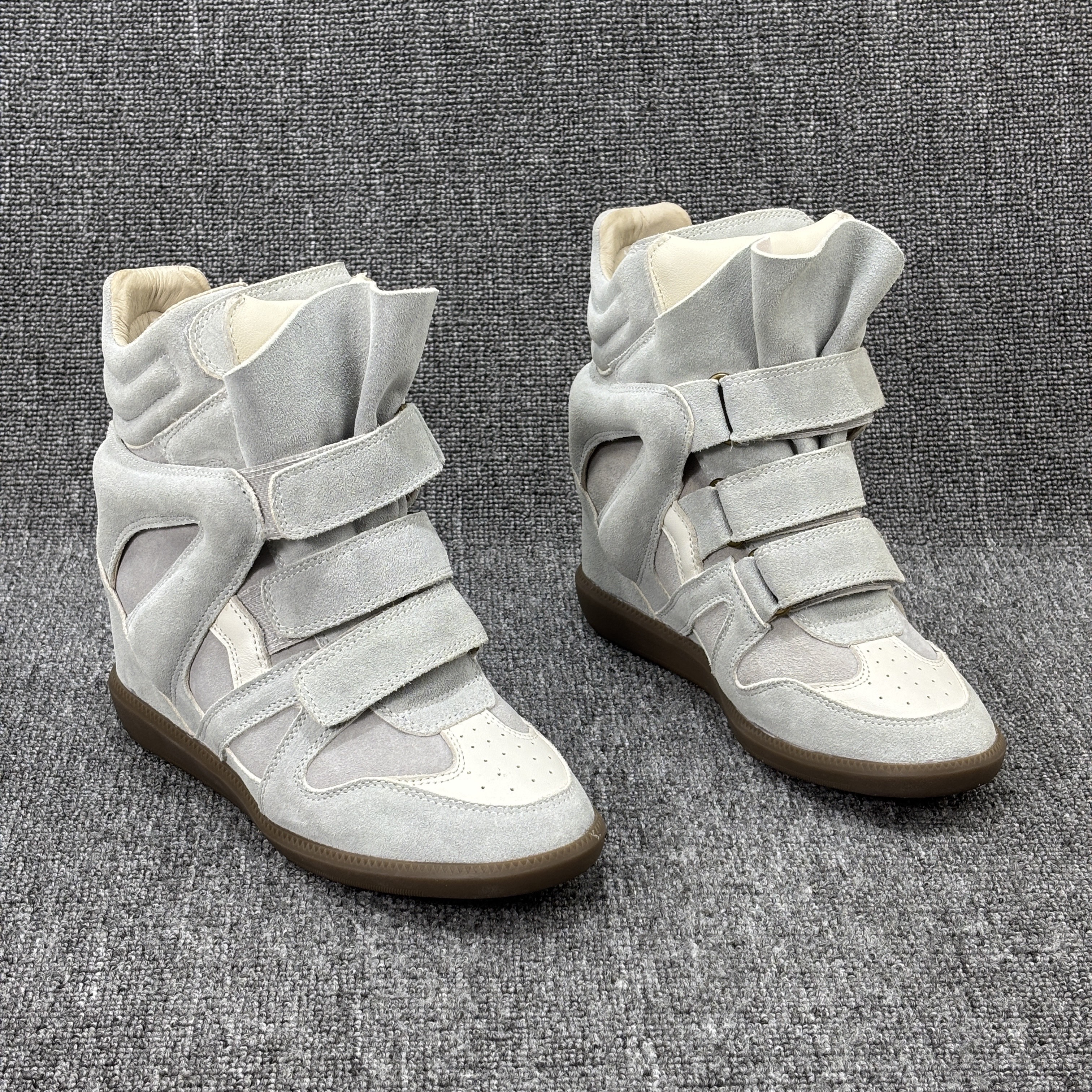 European Goods 2025 Autumn and Winter New Style Invisible Height-Increasing Women's Shoes European Style Color-Blocking Round-Toe Velcro Sports High-Top Shoes