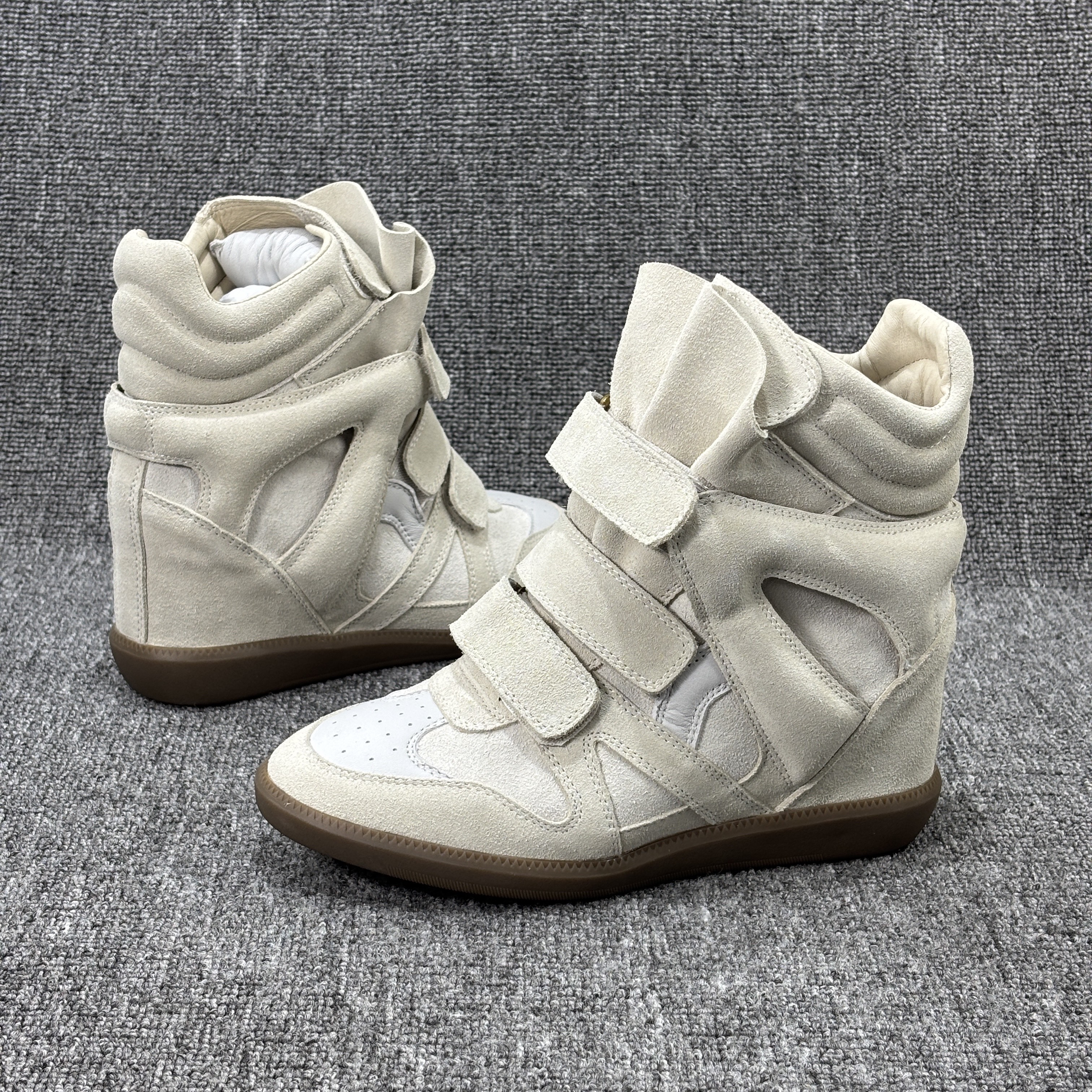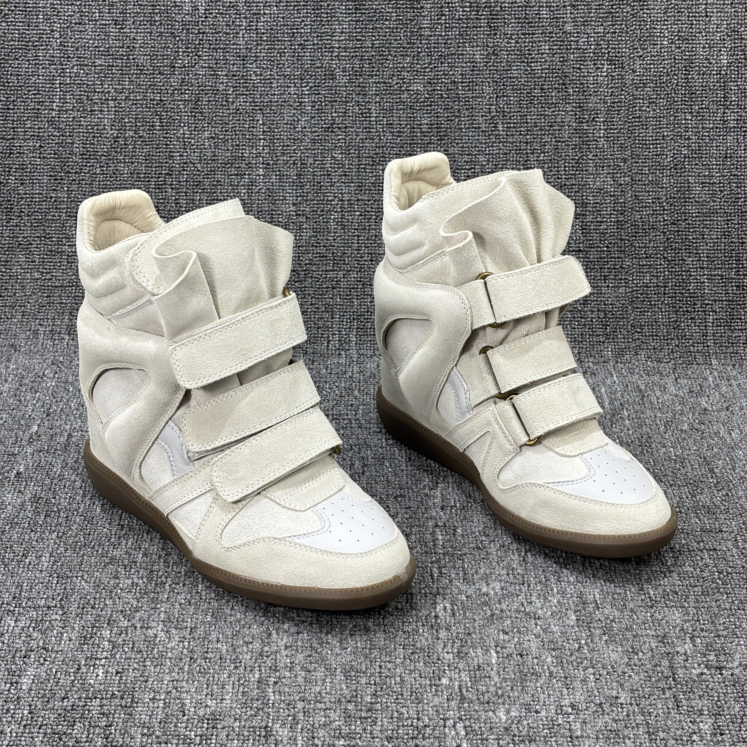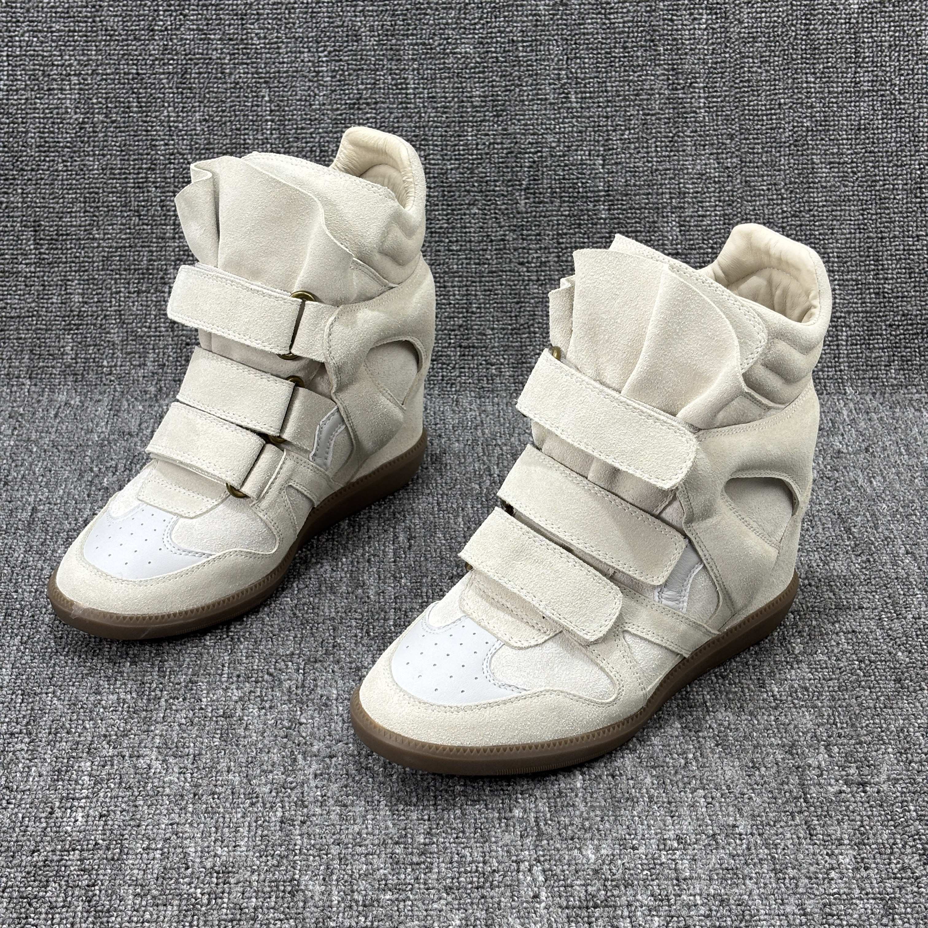 European Goods 2025 Autumn and Winter New Style Invisible Height-Increasing Women's Shoes European Style Color-Blocking Round-Toe Velcro Sports High-Top Shoes