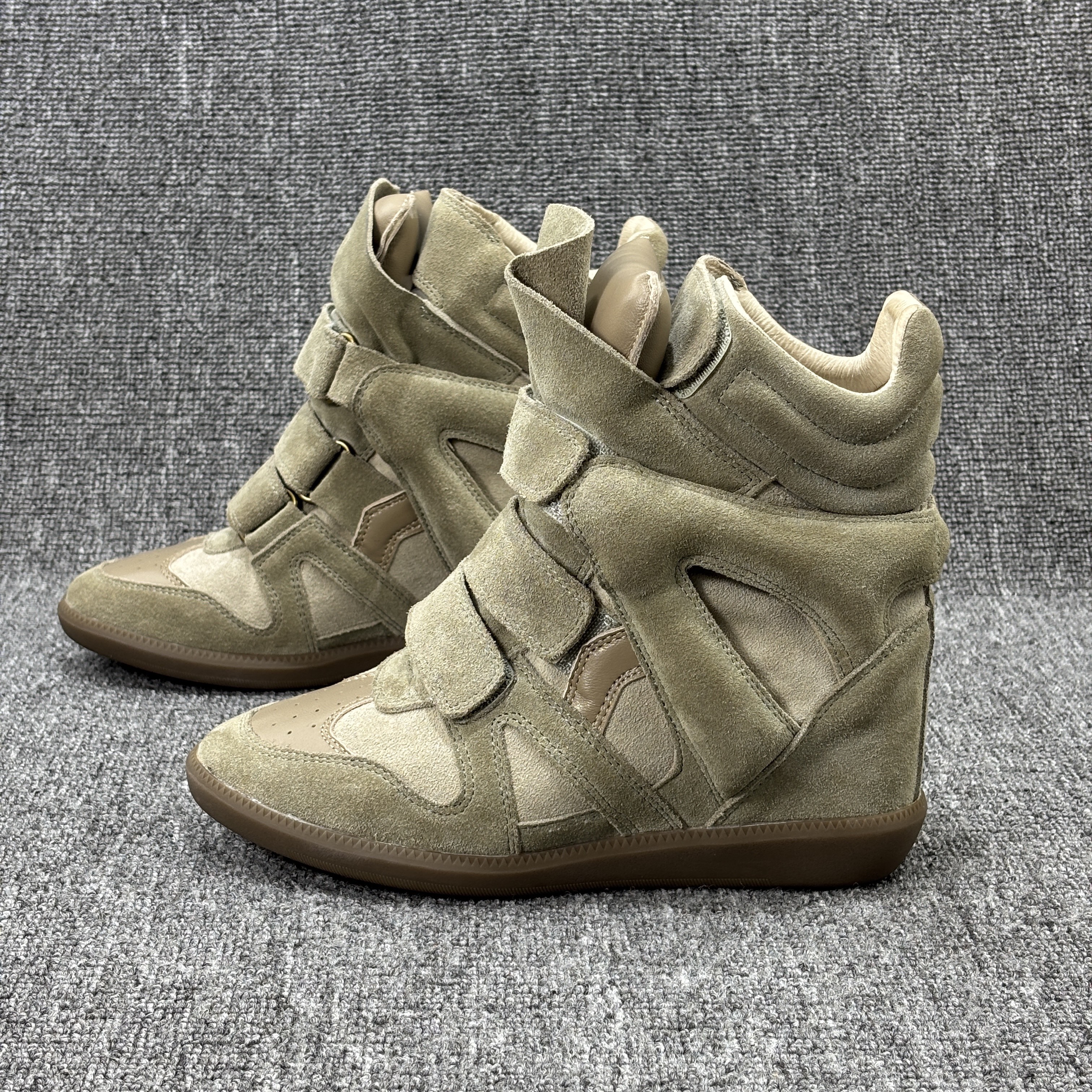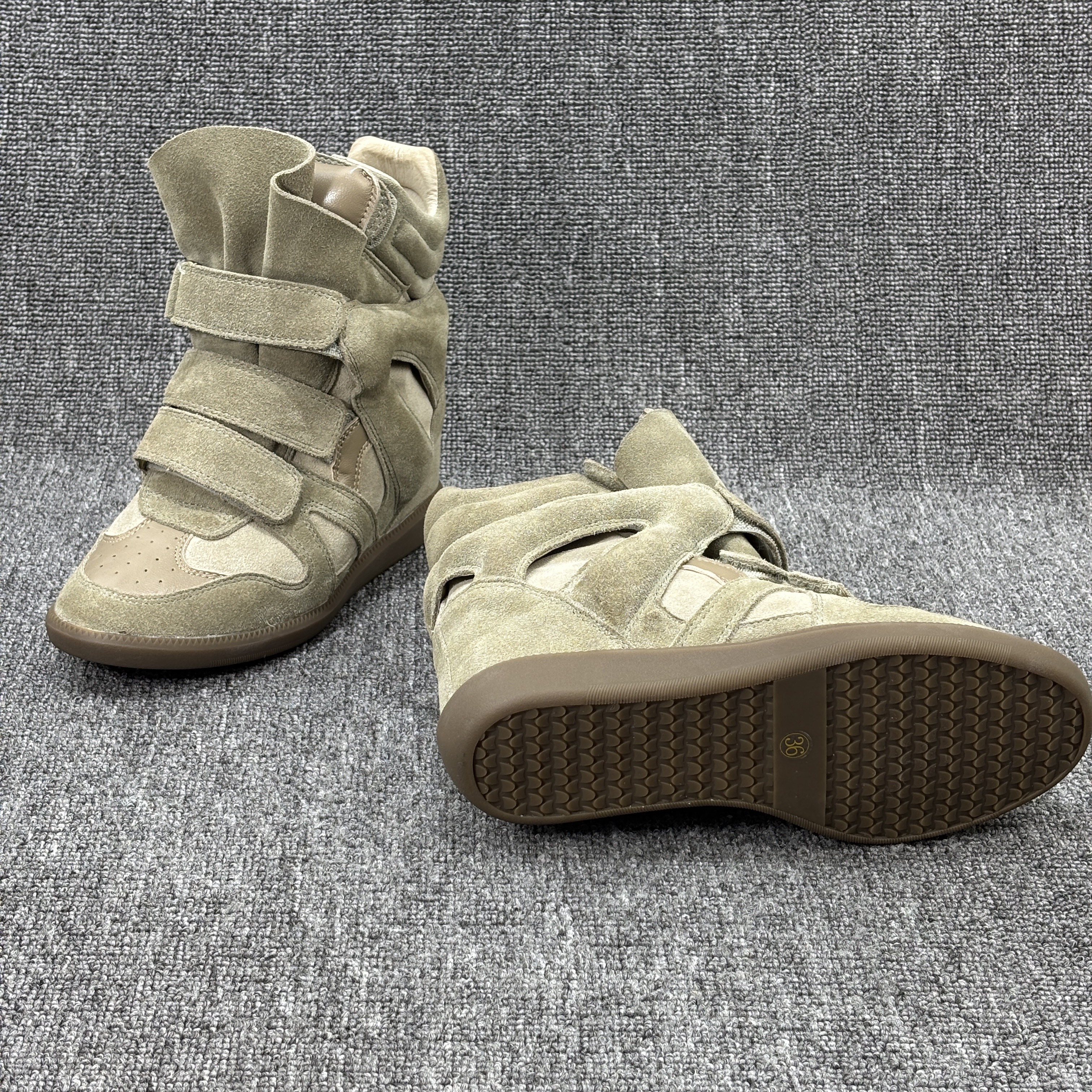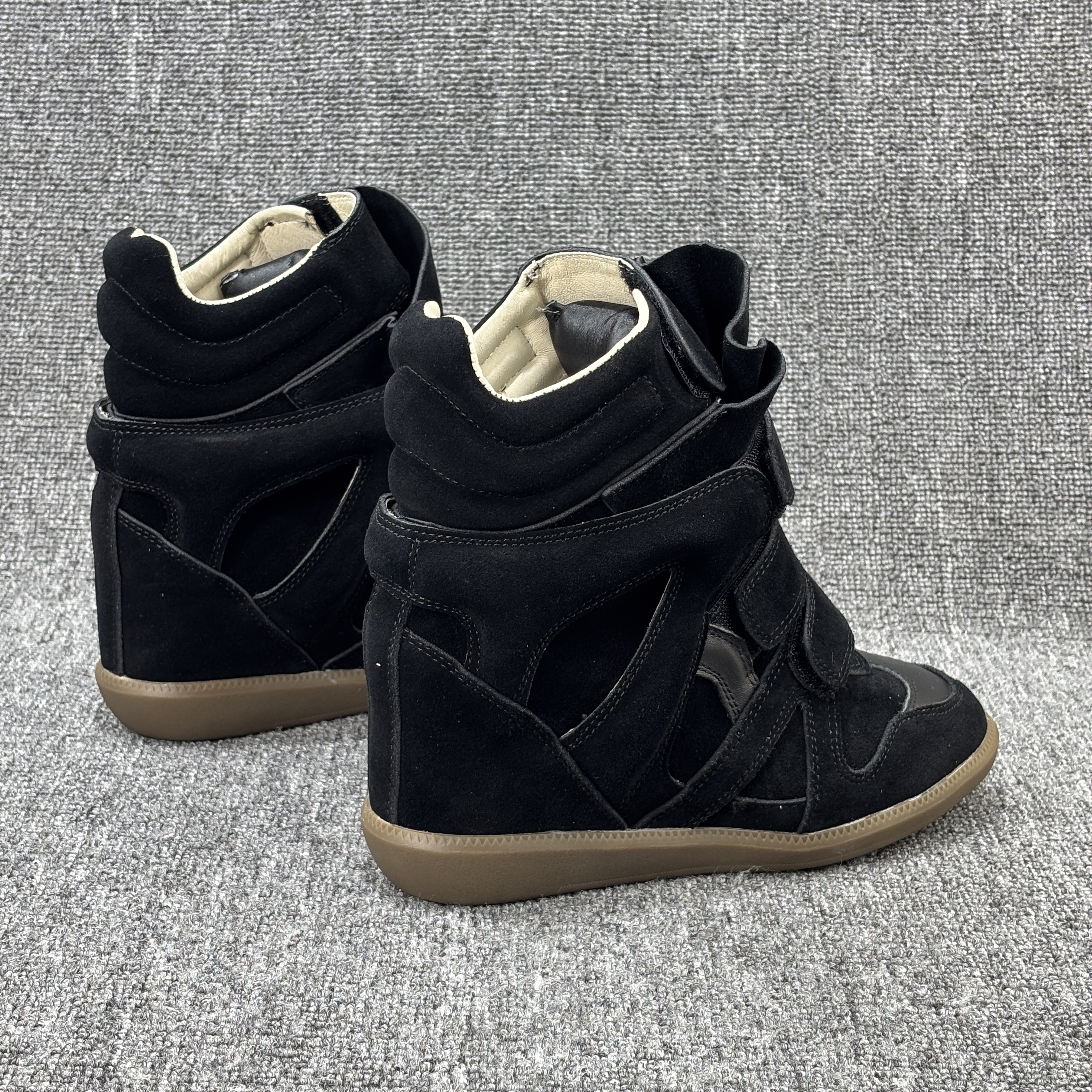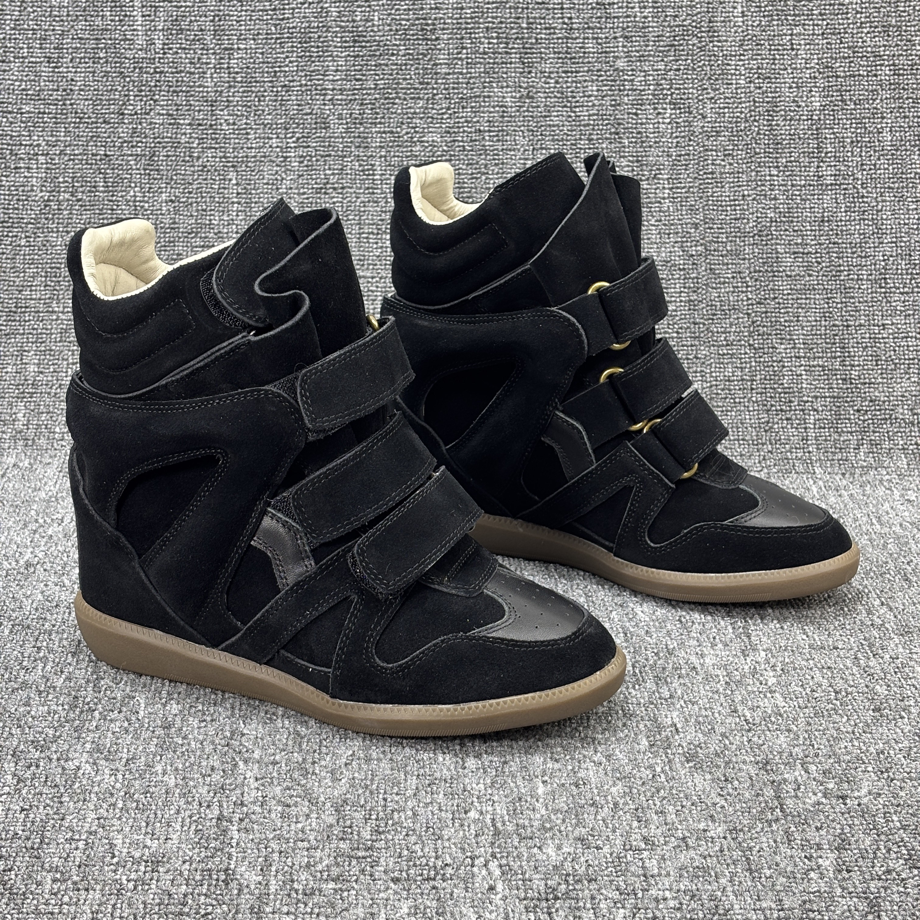 European Goods 2025 Autumn and Winter New Style Invisible Height-Increasing Women's Shoes European Style Color-Blocking Round-Toe Velcro Sports High-Top Shoes