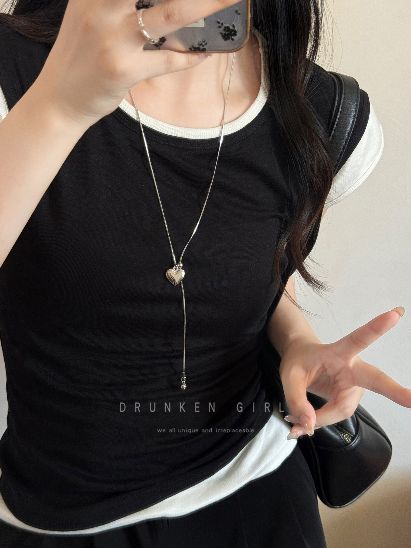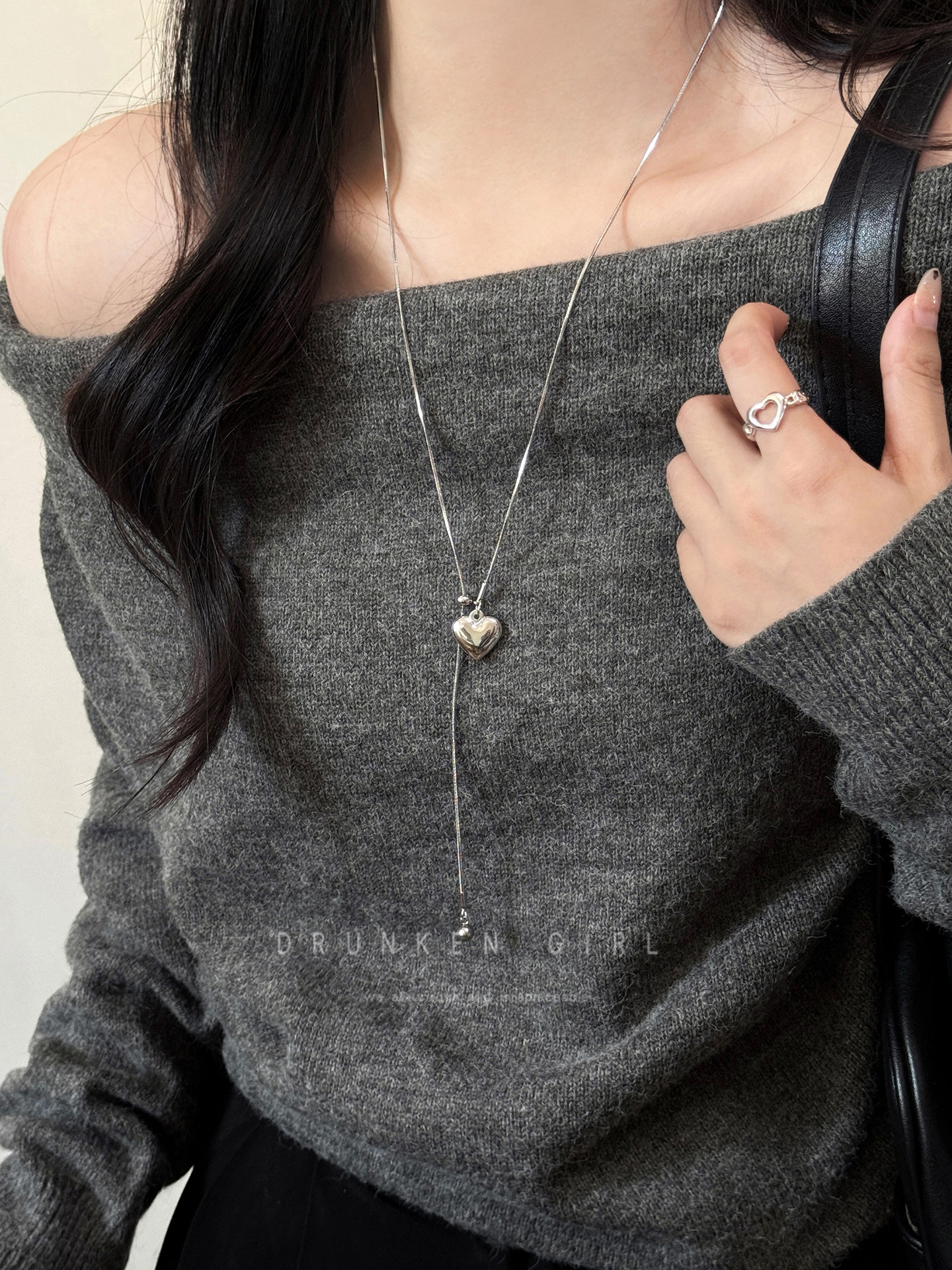 Titanium Steel Heart Pendant Necklace for Women, Autumn and Winter Korean Style Niche Design Accessory, Light Luxury High-End Long Sweater Chain