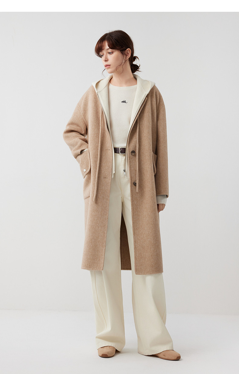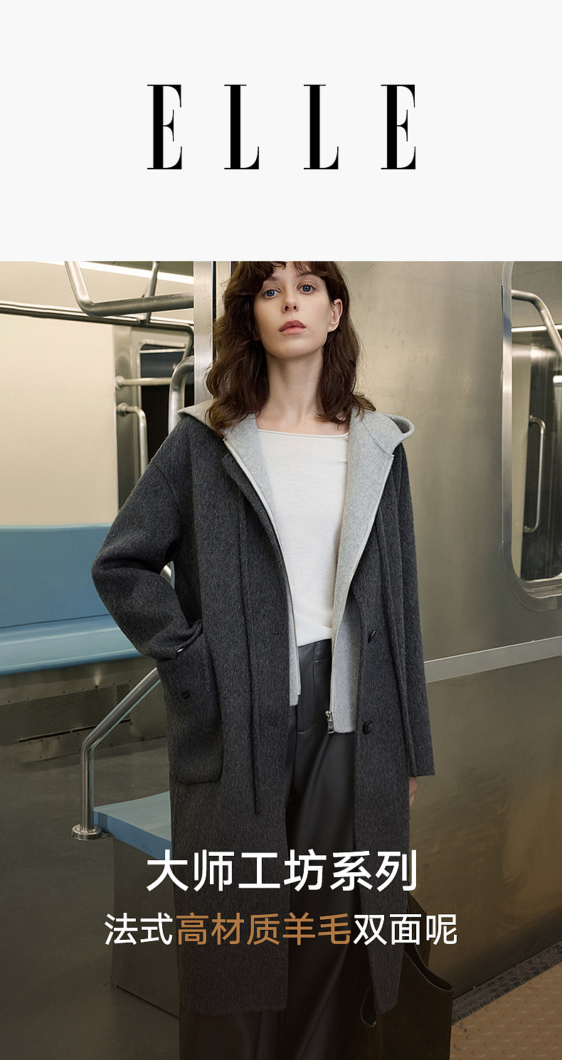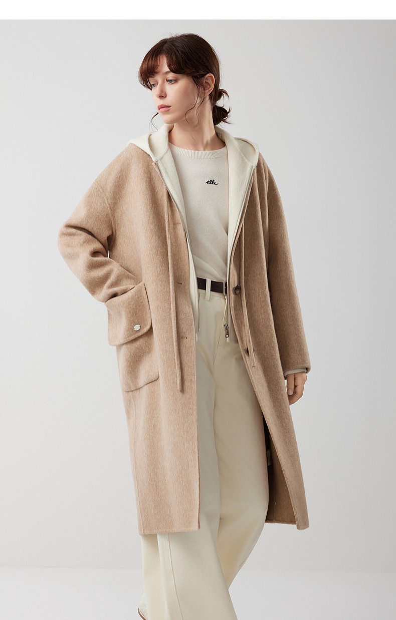 [Same Style as Zhu Xu Dan] Elle Free-Flowing Mid-Length Double-Sided Woolen Coat for Women, New Winter 2025 Woolen Jacket