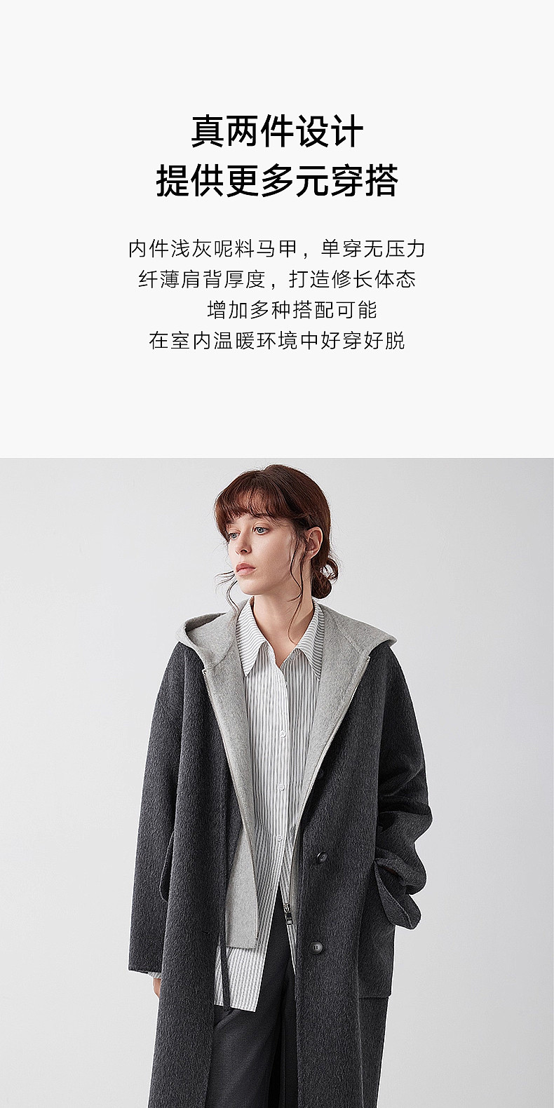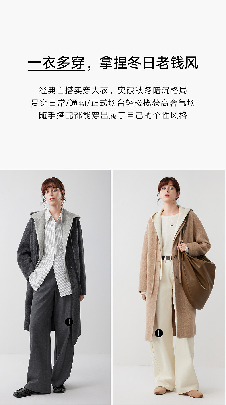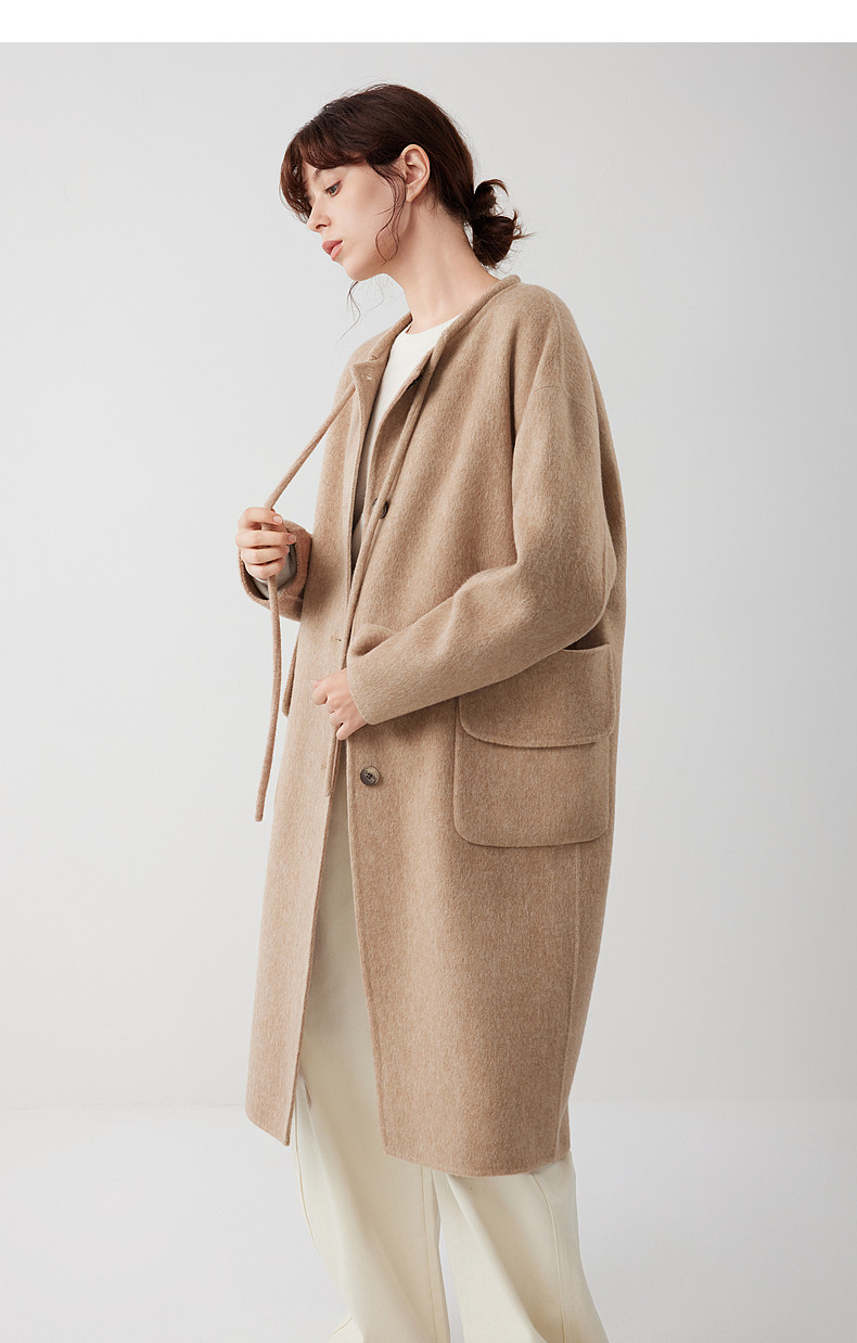 [Same Style as Zhu Xu Dan] Elle Free-Flowing Mid-Length Double-Sided Woolen Coat for Women, New Winter 2025 Woolen Jacket