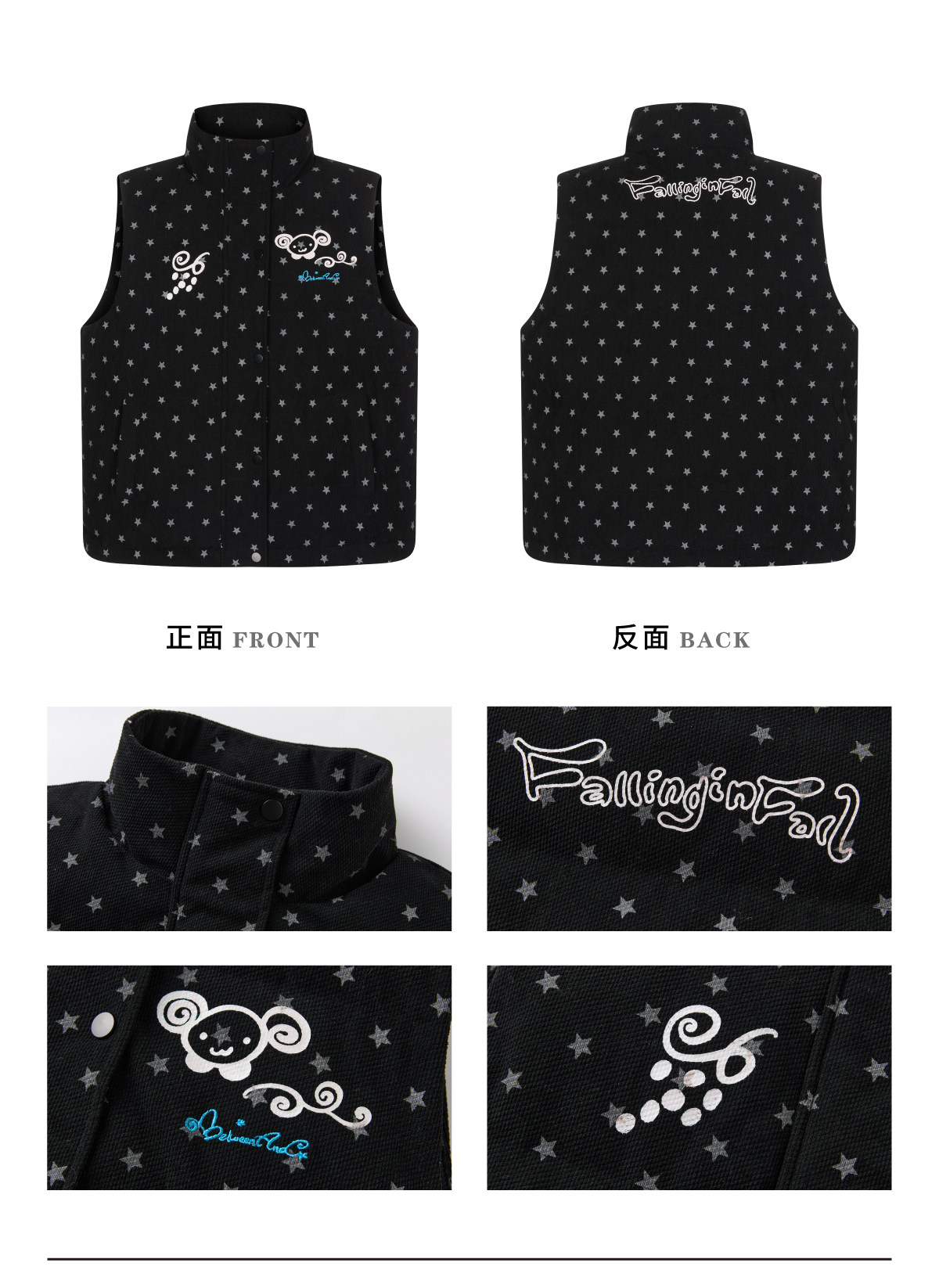 Betweenand Winter Glitter Star Black Baby Velvet Vest Layered Warm Jacket Cotton Coat for Women