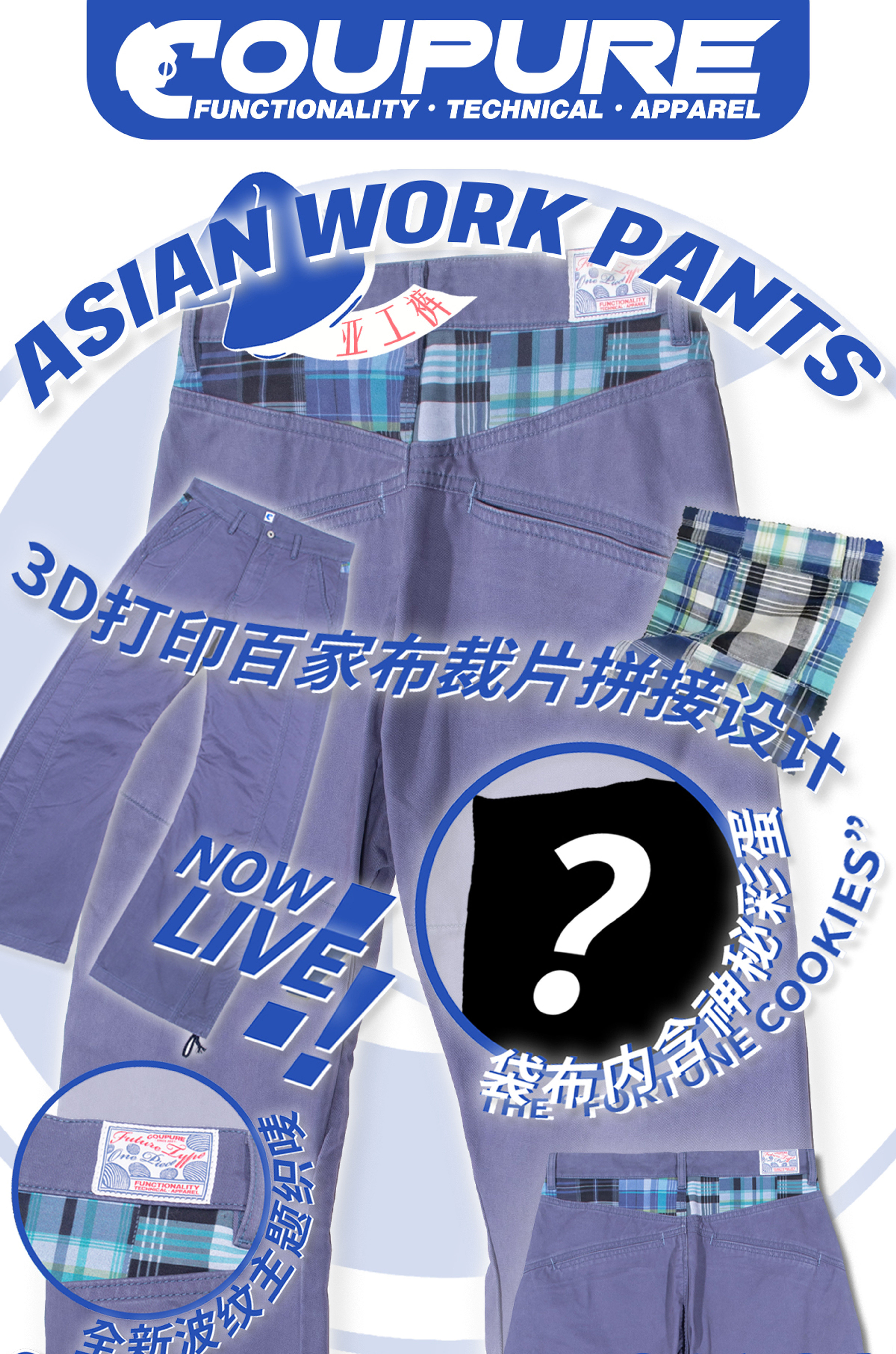 Coupure[Cpe]3D Printed Baijia Cloth Printed Scimitar Wide-Leg Work Pants Asian Work Pants