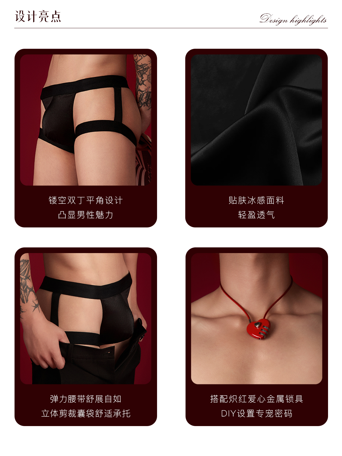 Zerosophy Men's Double-D Sexy Underwear Black Pouch Summer Thin Boxer Briefs Tight-Fitting