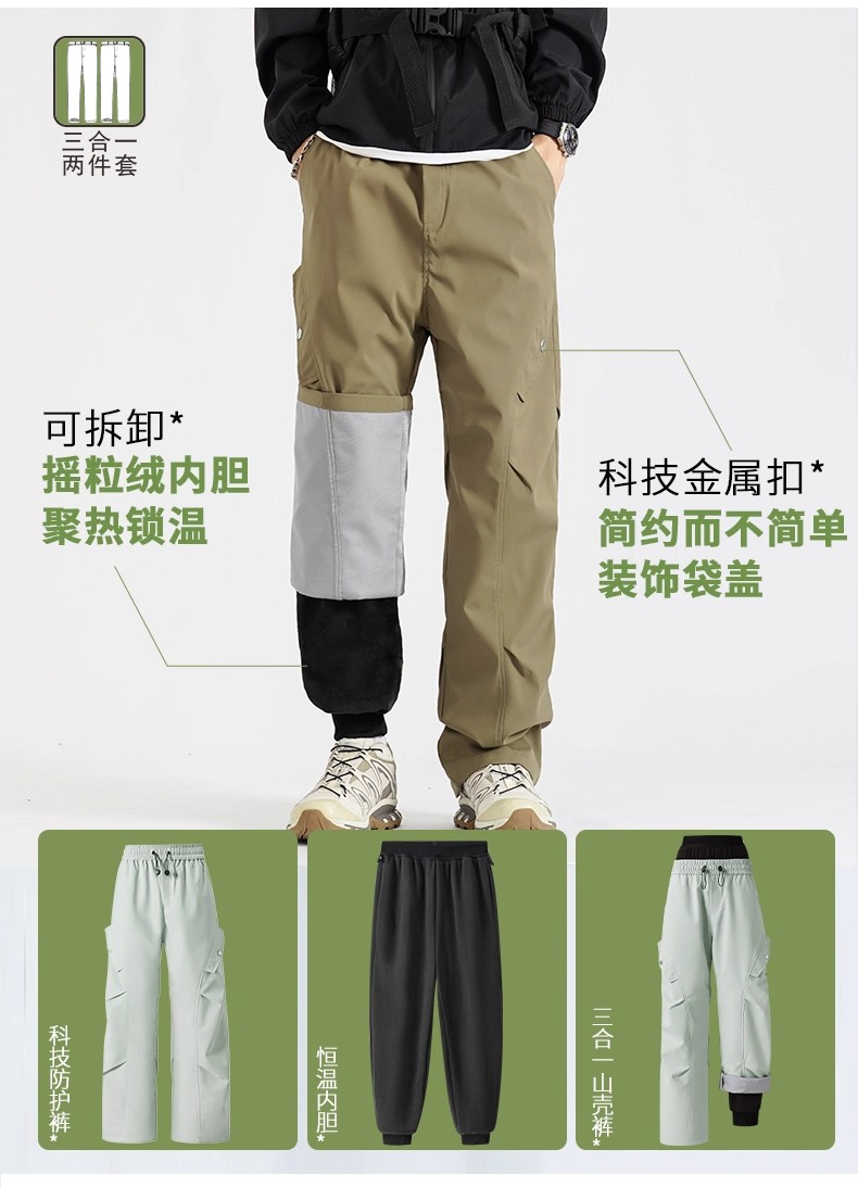German New arrival Outdoor Charge Pants Detachable Liner Waterproof Windproof Hiking Climber Pants Spring & Fall Winter Cargo Pants