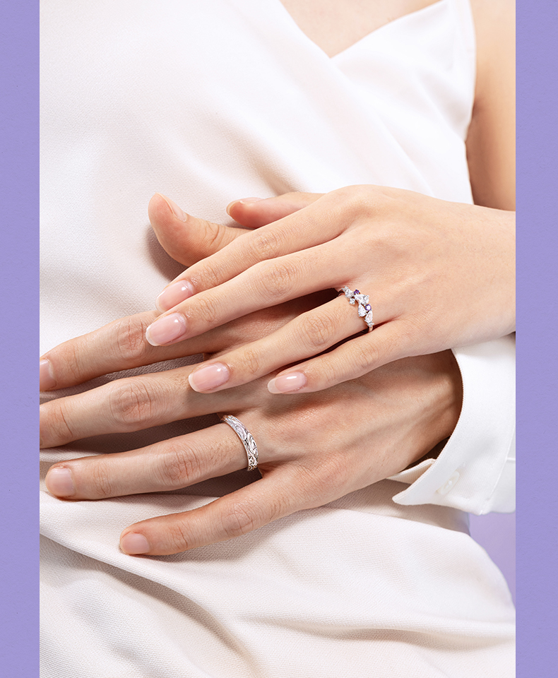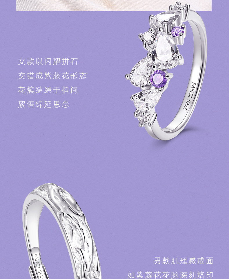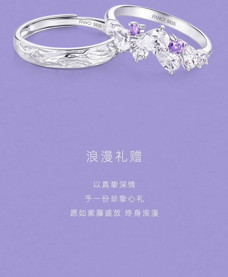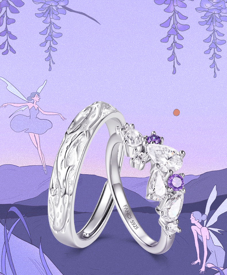 [New Year's Gift] Fanci Fan Qi Wisteria Flower Series Wisteria Flower Couple Rings Birthday Gift for Girlfriend