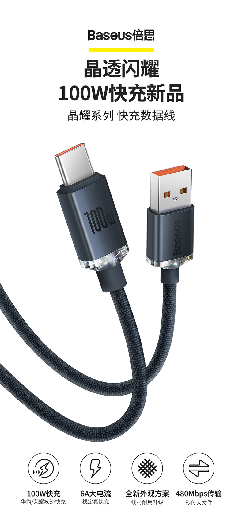 Baseus Jingyao series fast charging data line USB to T-C for Huawei charging line 100W 1.2m