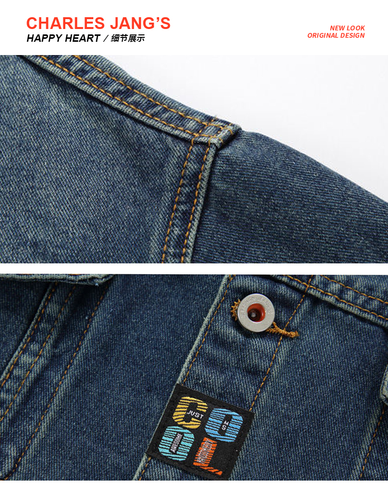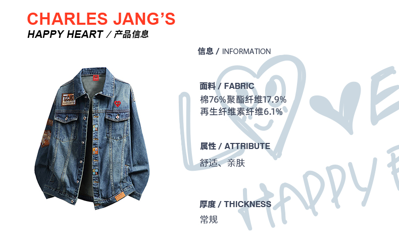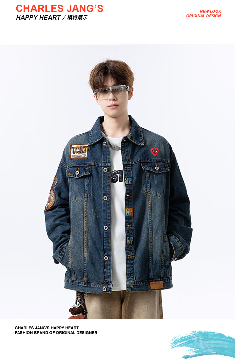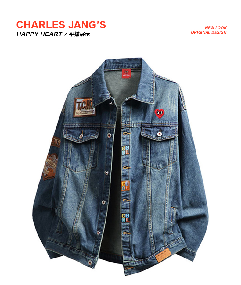 Charles Heart American retro Embroider Cowboy Outwear Men's Spring and Autumn New arrival Lel Easiest for match Handsome jacket