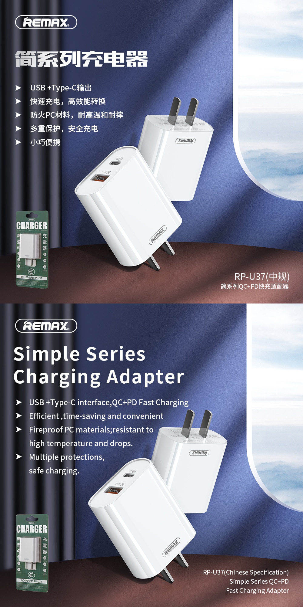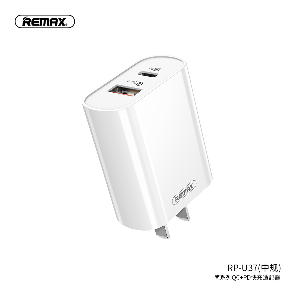 REMAX Jane Series QC3.0 + PD18W Adapter Medium/European/British Regulations Applicable to Apple Charging Head RP-U37