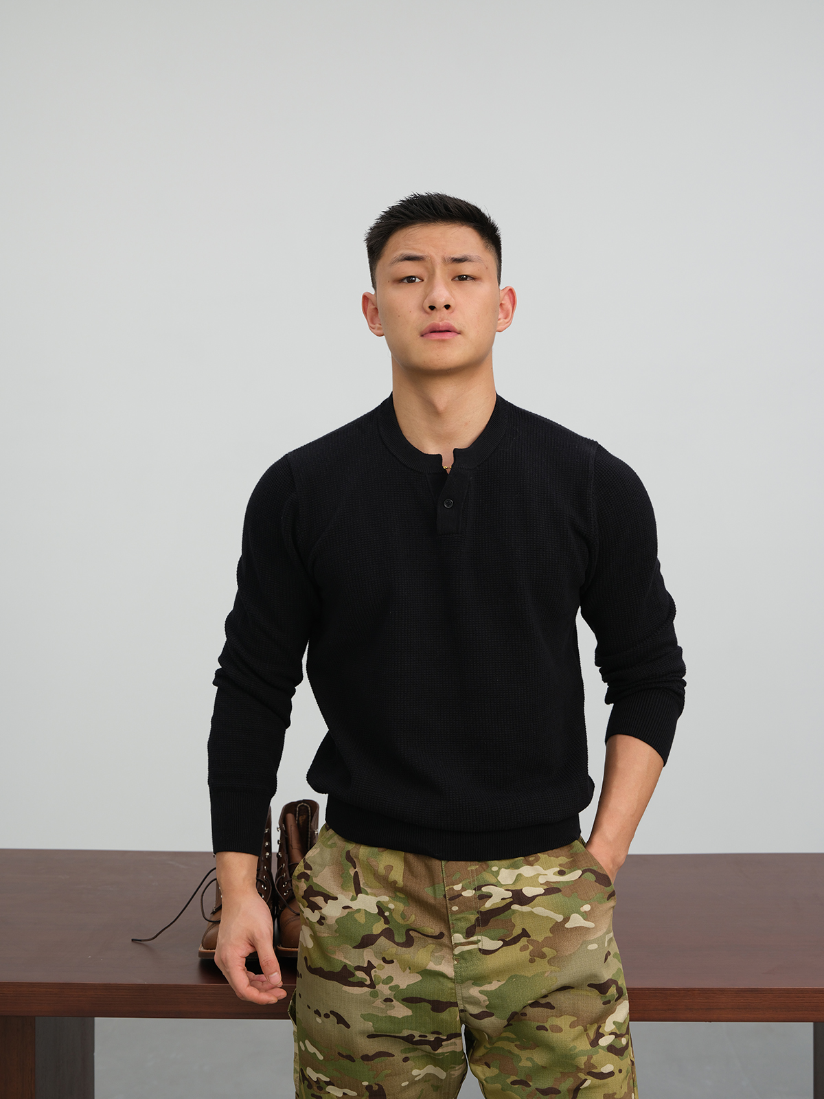 Gtal American-Style New Rich Henry Collar Long-Sleeve Old Money Style Knit Sweater Pure Cotton Base Shirt Retro Casual Inner Wear Top