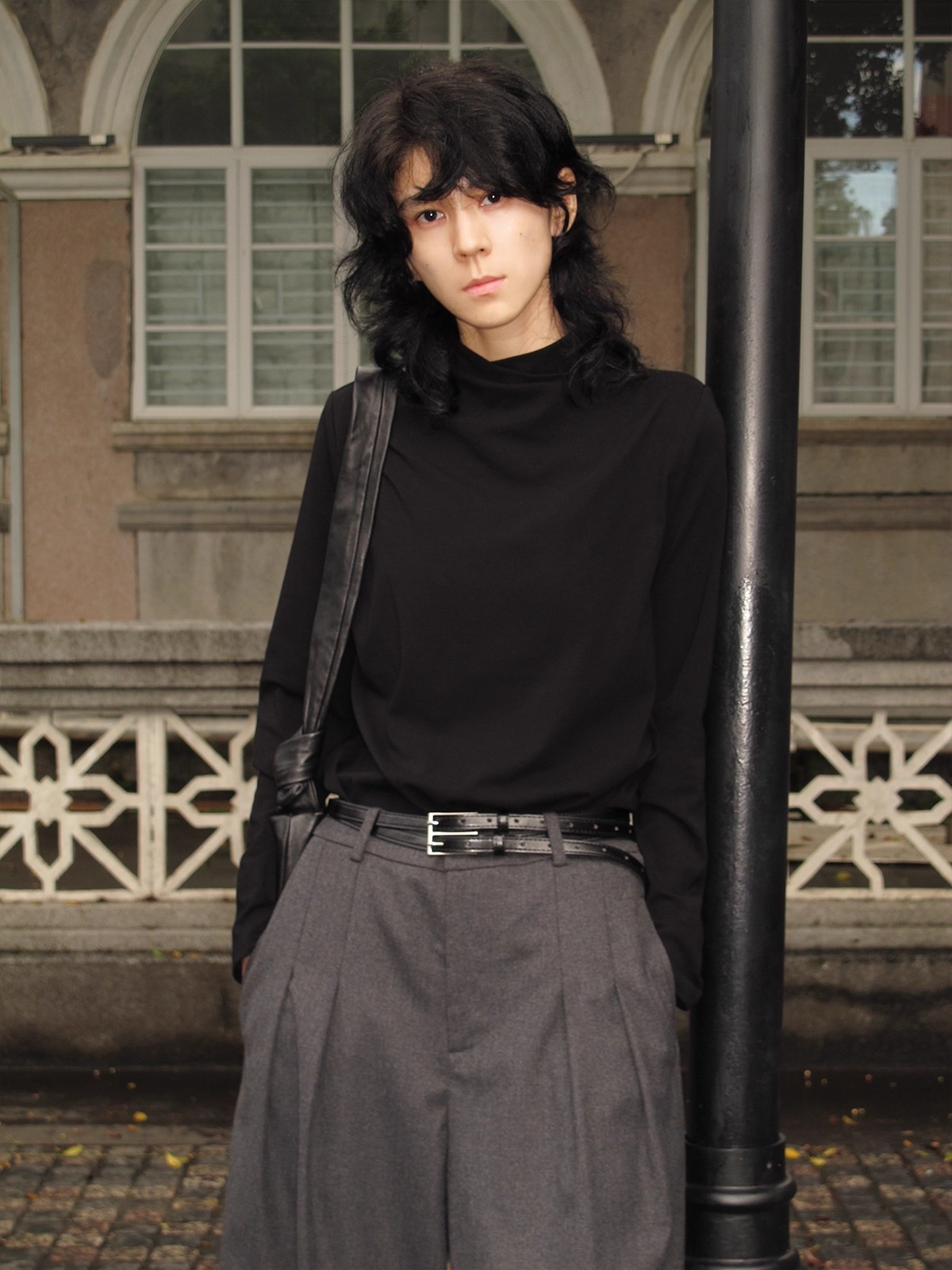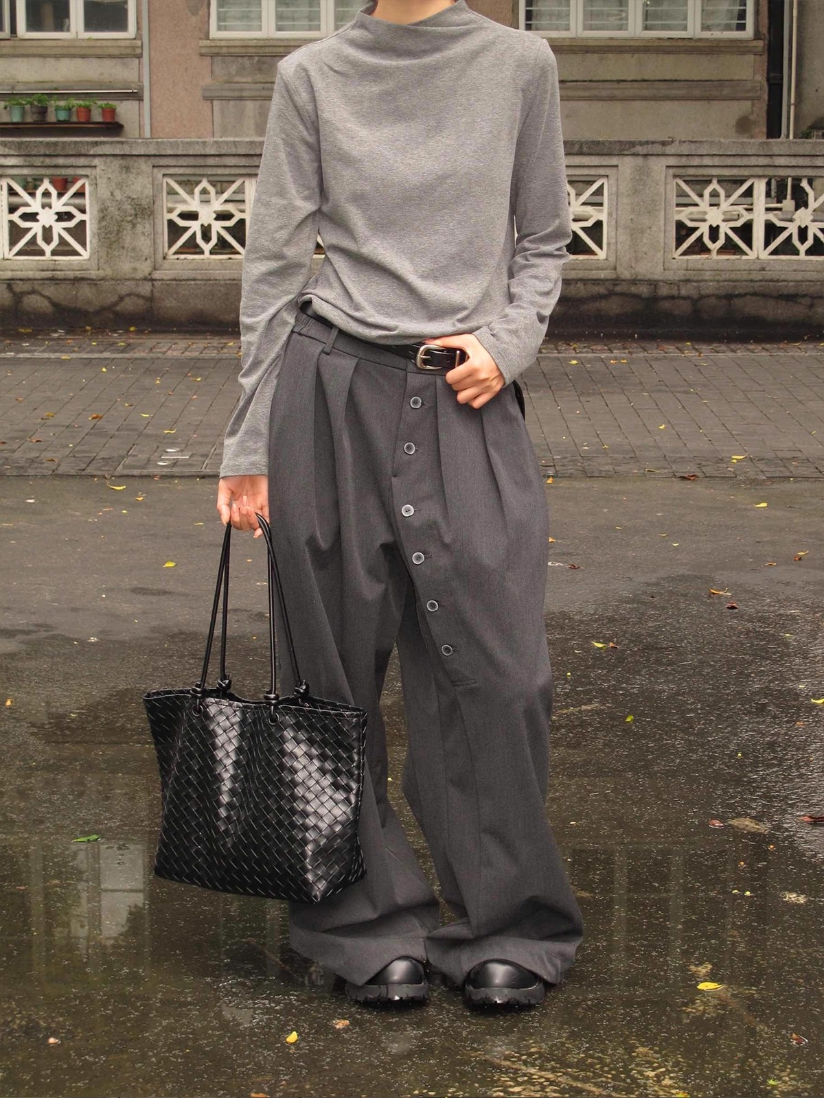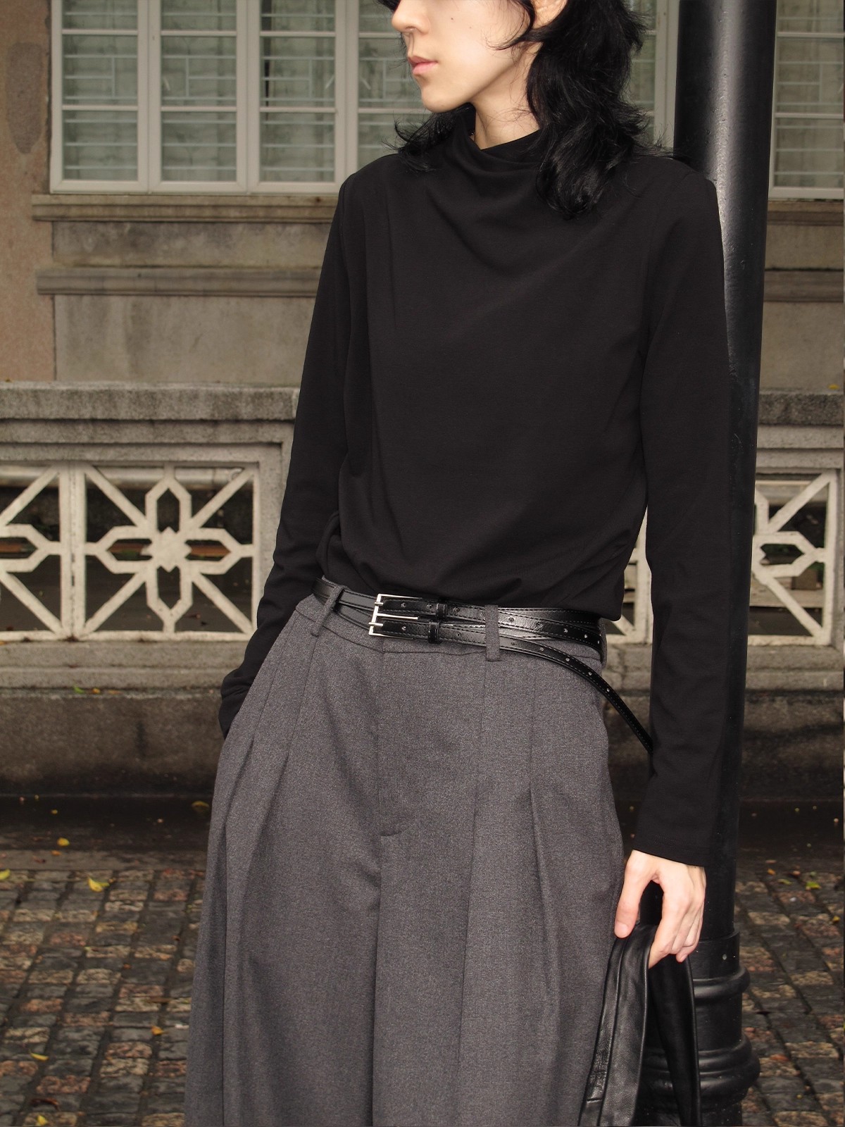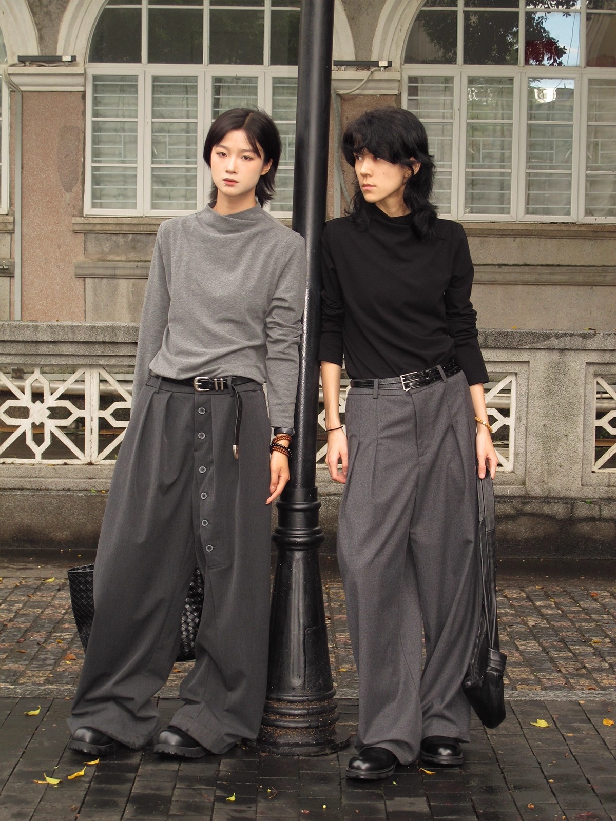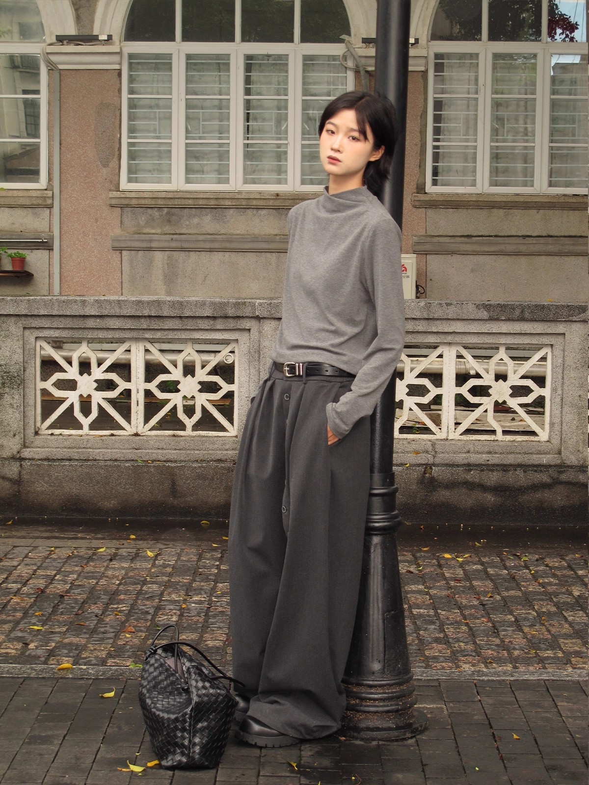Sameuoo Free-Spirited Culture Cross Chimney Collar Straight Shoulder Long-Sleeve T-Shirt Autumn Unisex Basic Slim-Fit Top for Women