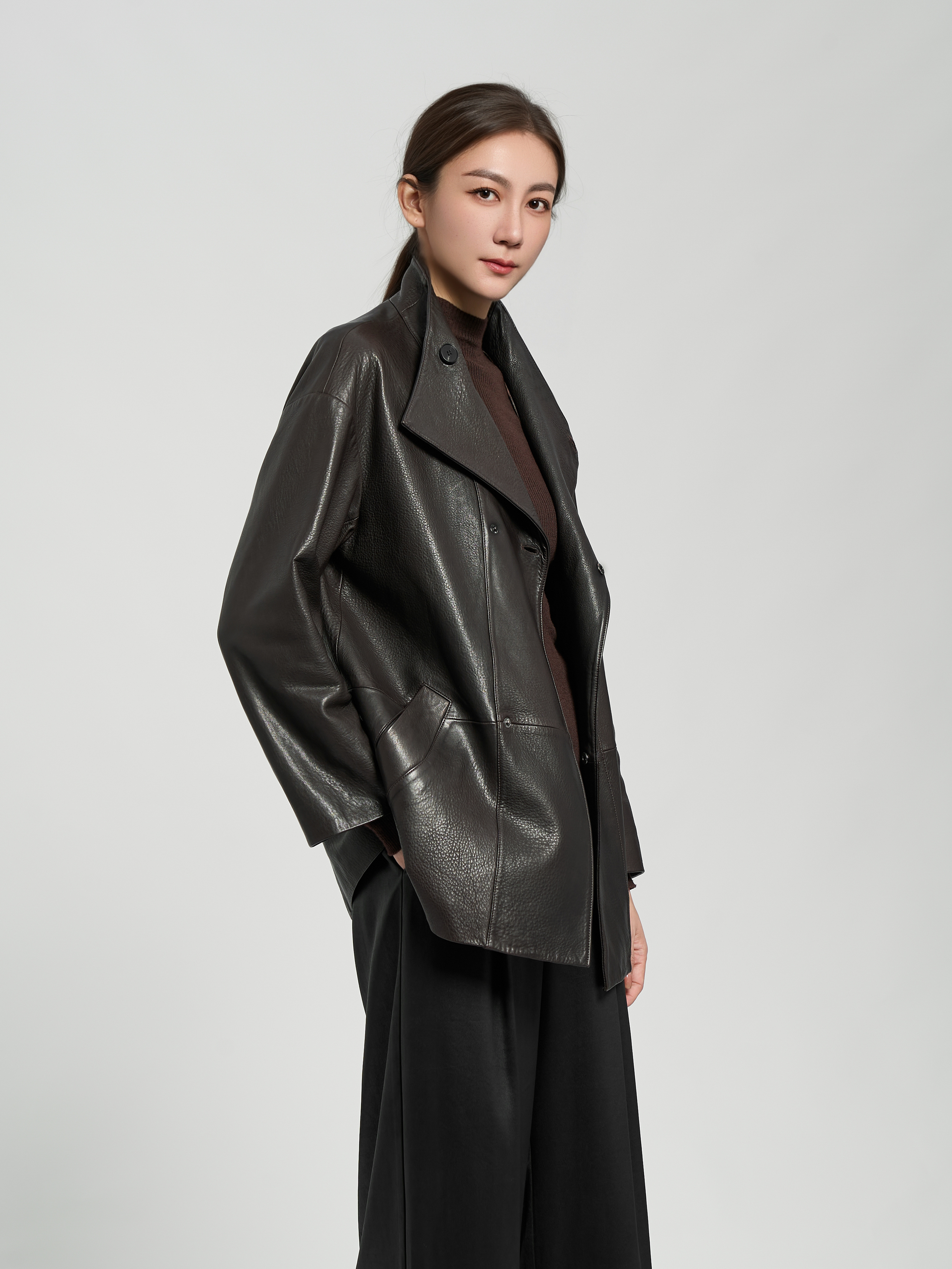 [Qixiang Jin] Import ladoma manga Goatskin designer Tops