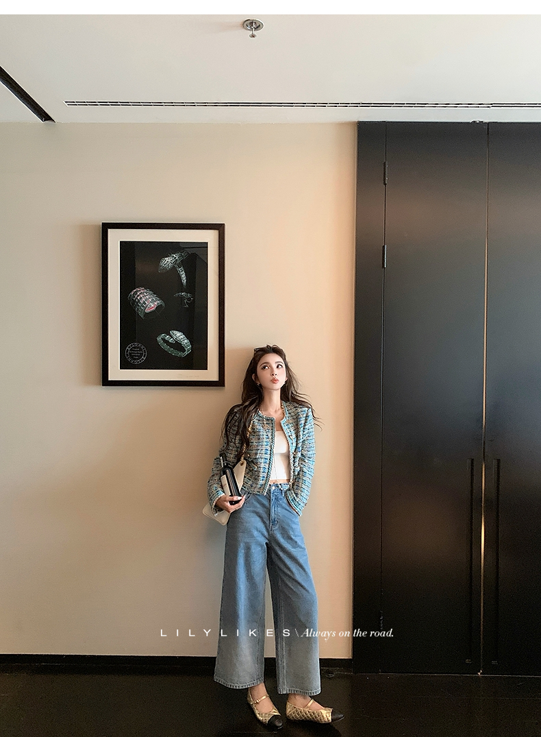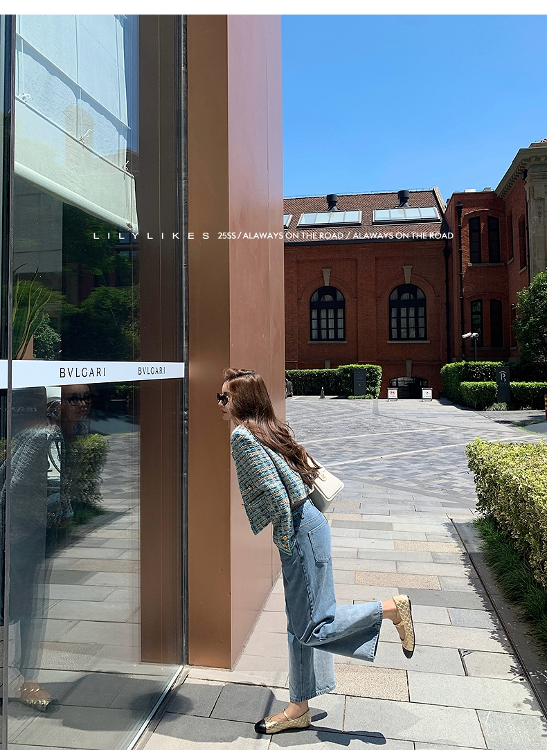 牛仔裤的腰头做了这款蓝色织带相呼应这件外套