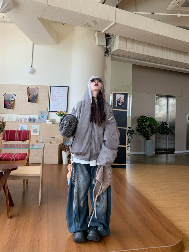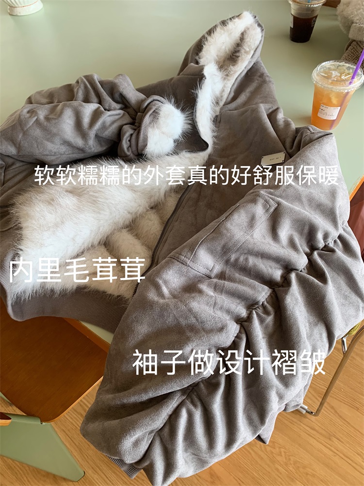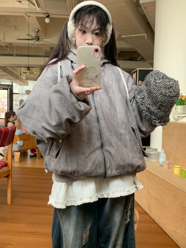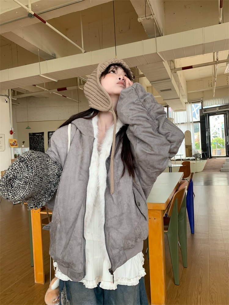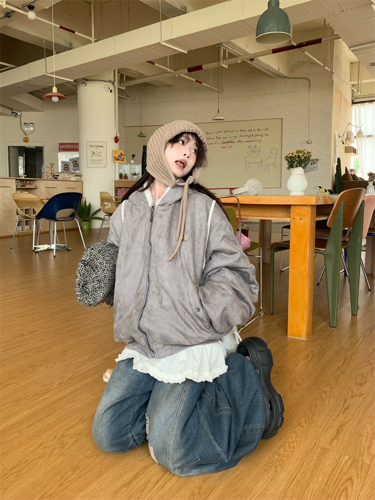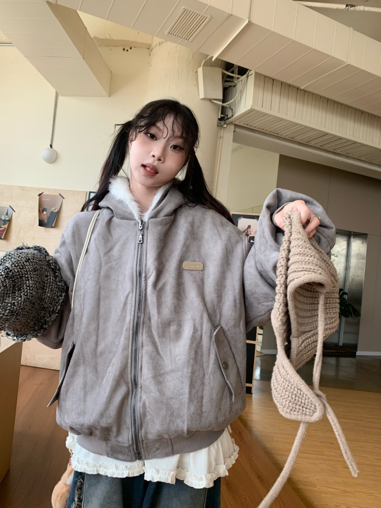0818 Is a Very Beautiful American Street-Style Design Plush Reversible Hooded Cotton Jacket for Women, Warm for Autumn and Winter
