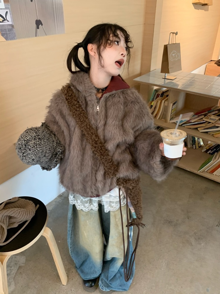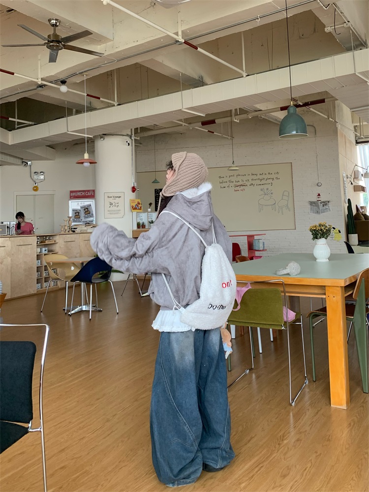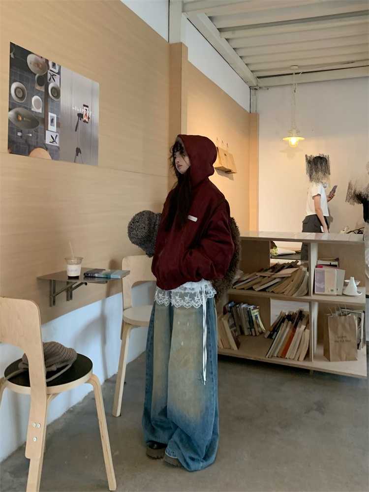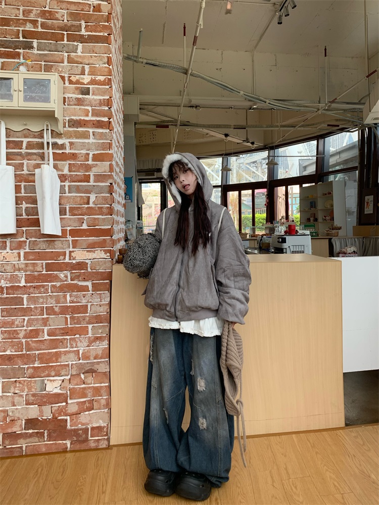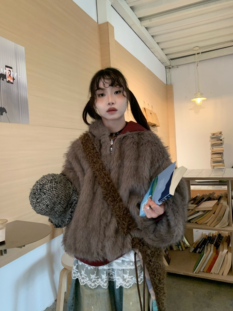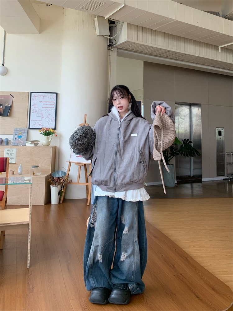 0818 Is a Very Beautiful American Street-Style Design Plush Reversible Hooded Cotton Jacket for Women, Warm for Autumn and Winter