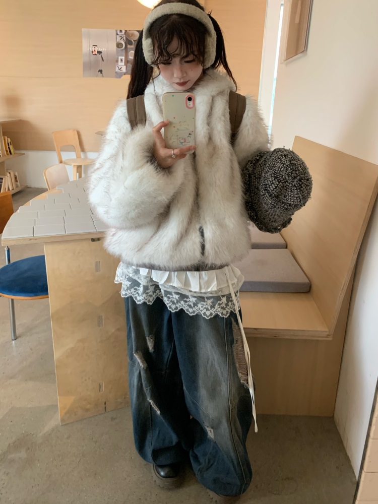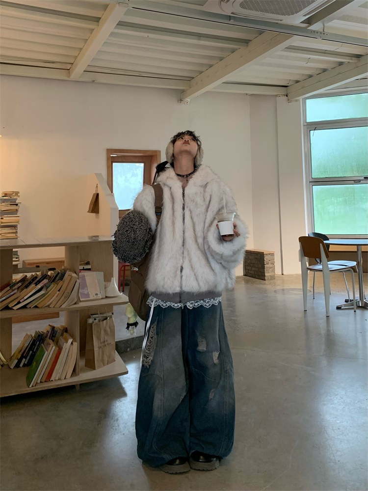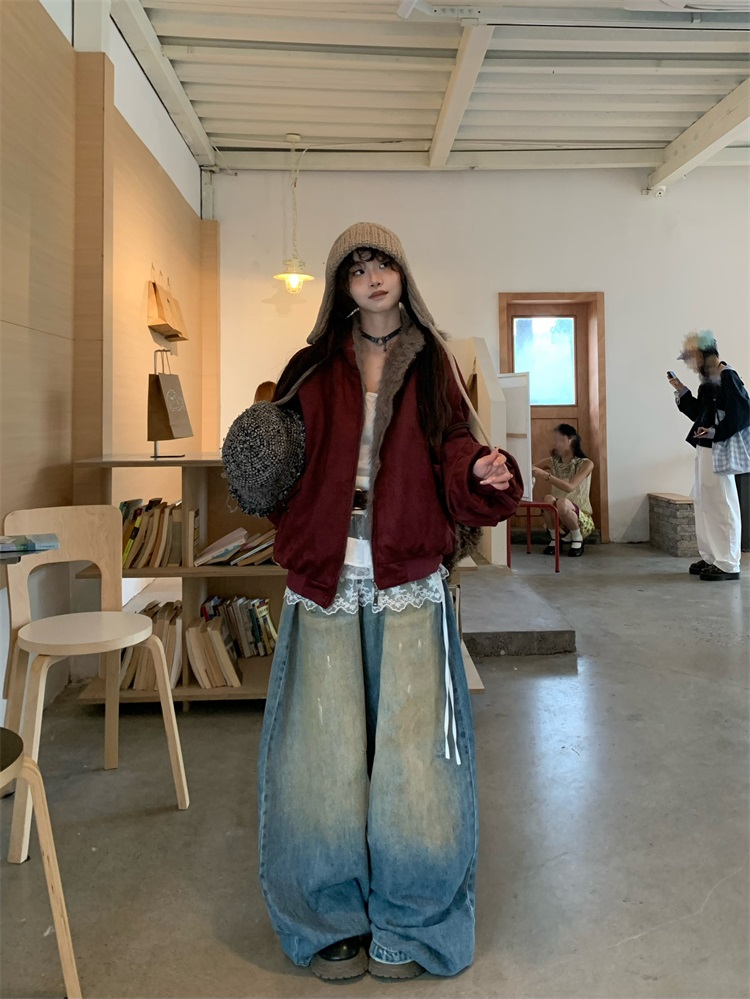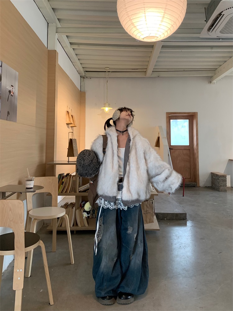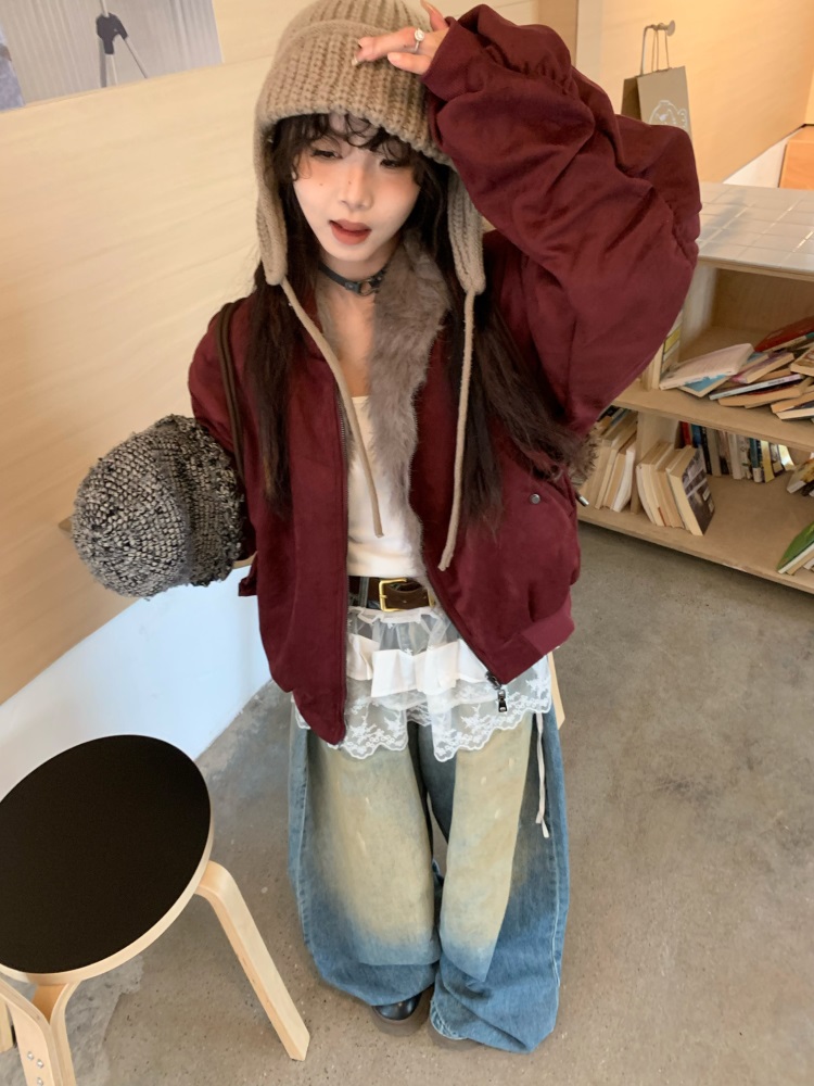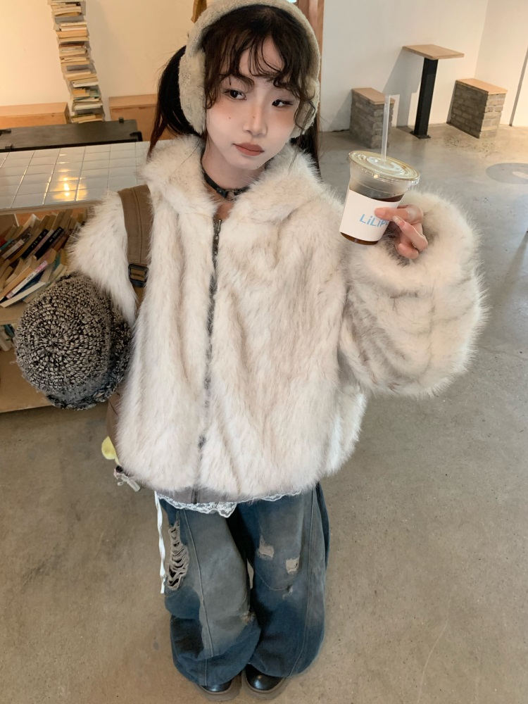 0818 Is a Very Beautiful American Street-Style Design Plush Reversible Hooded Cotton Jacket for Women, Warm for Autumn and Winter