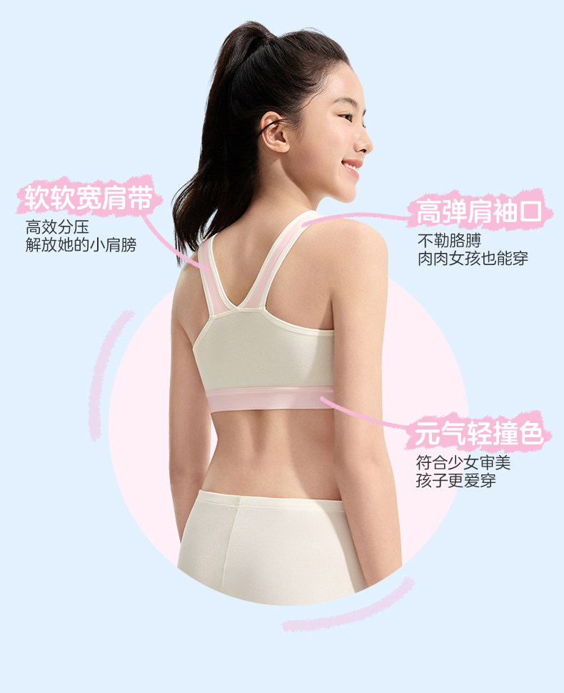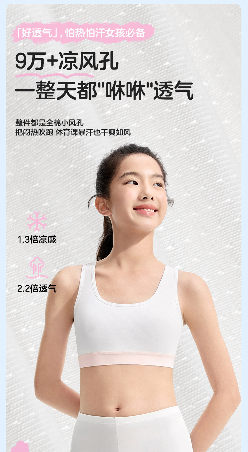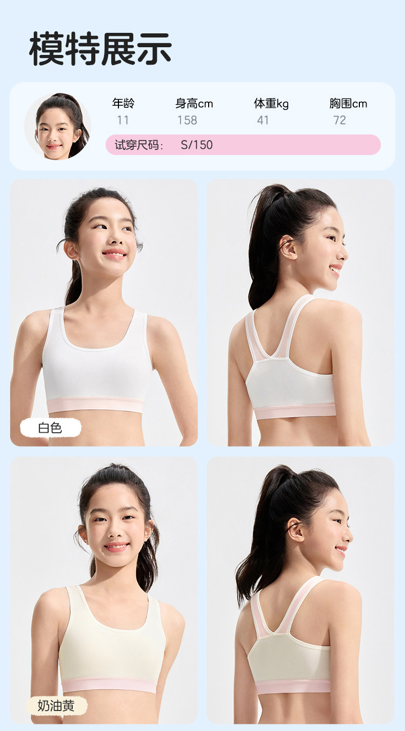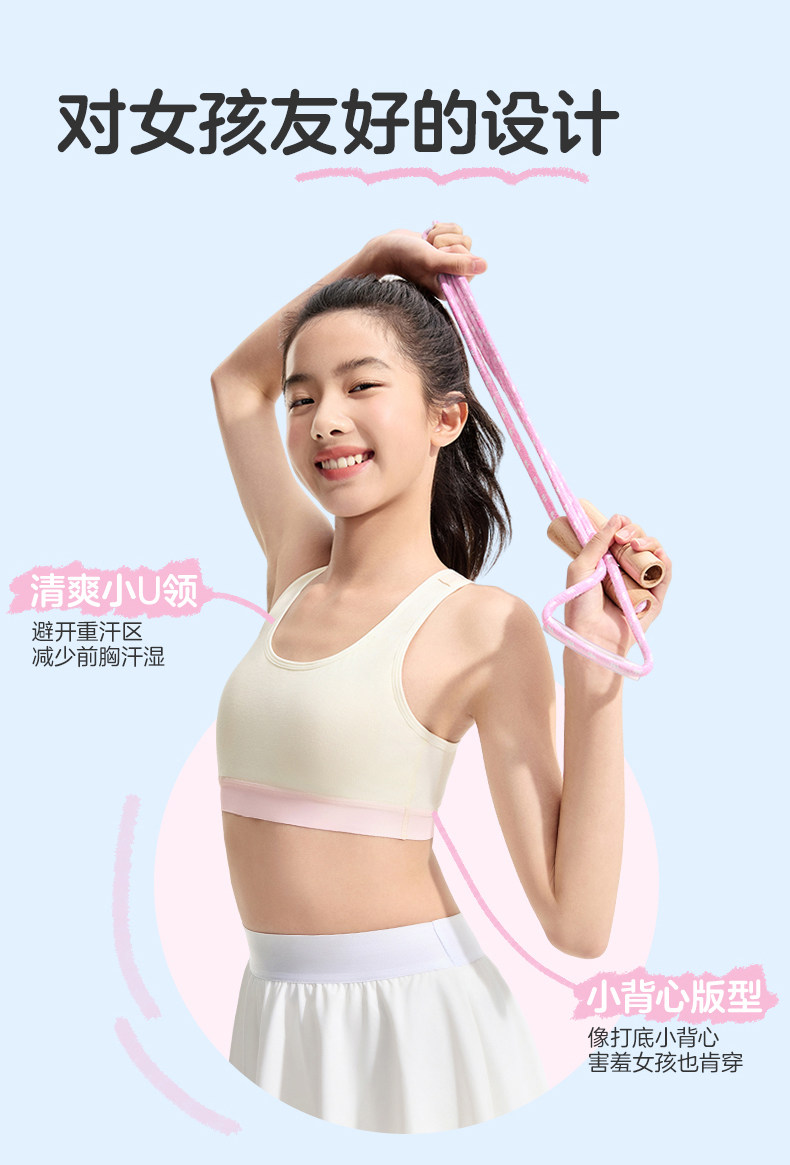 [Color-Contrasting Sports Vest] Cotton Era Bra for Developing Girls, Pure Cotton Cushioning Underwear for Teenagers and Girls
