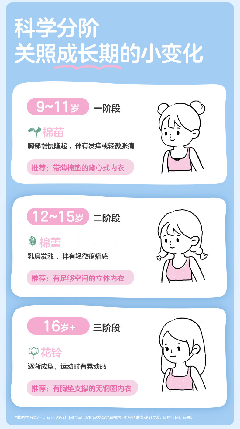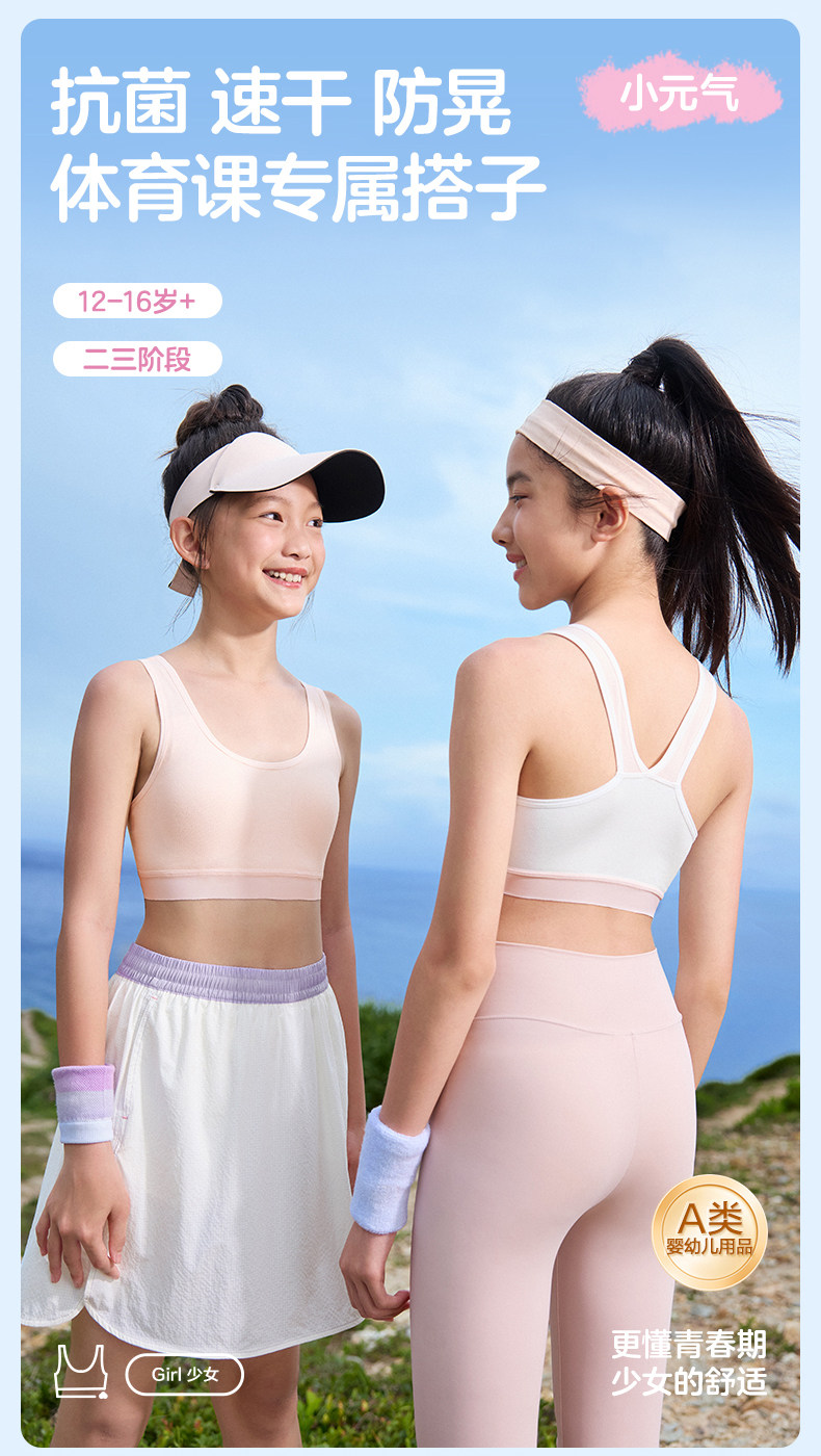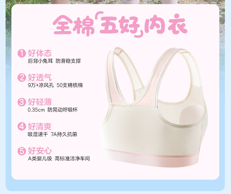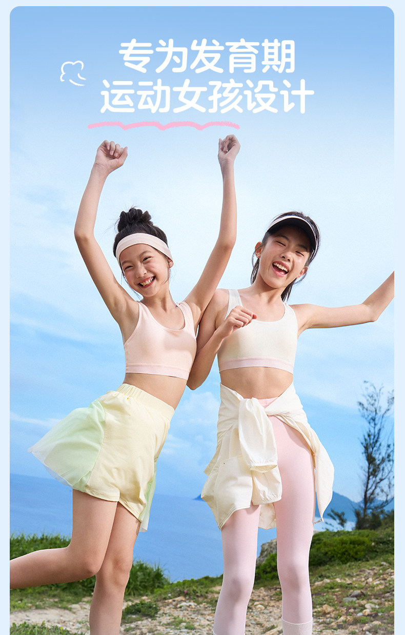 [Color-Contrasting Sports Vest] Cotton Era Bra for Developing Girls, Pure Cotton Cushioning Underwear for Teenagers and Girls