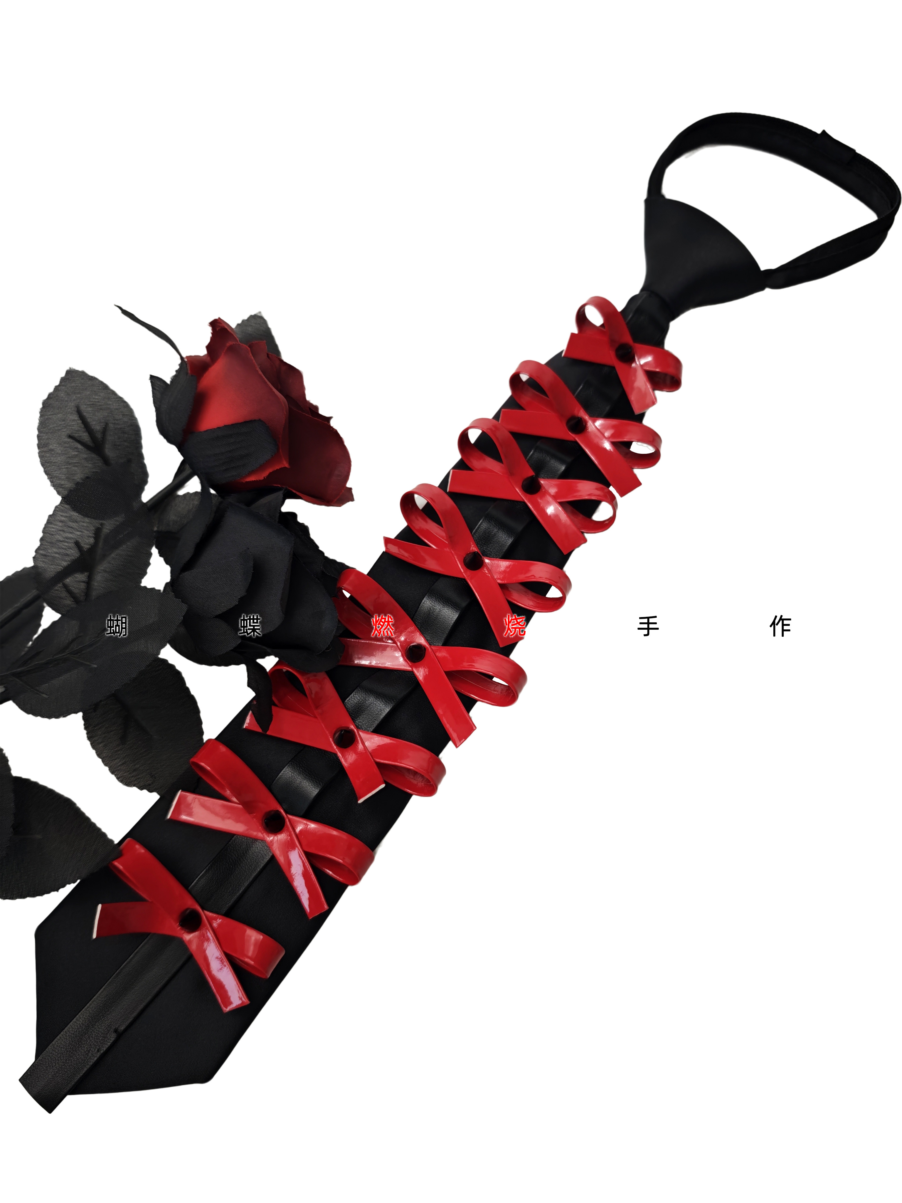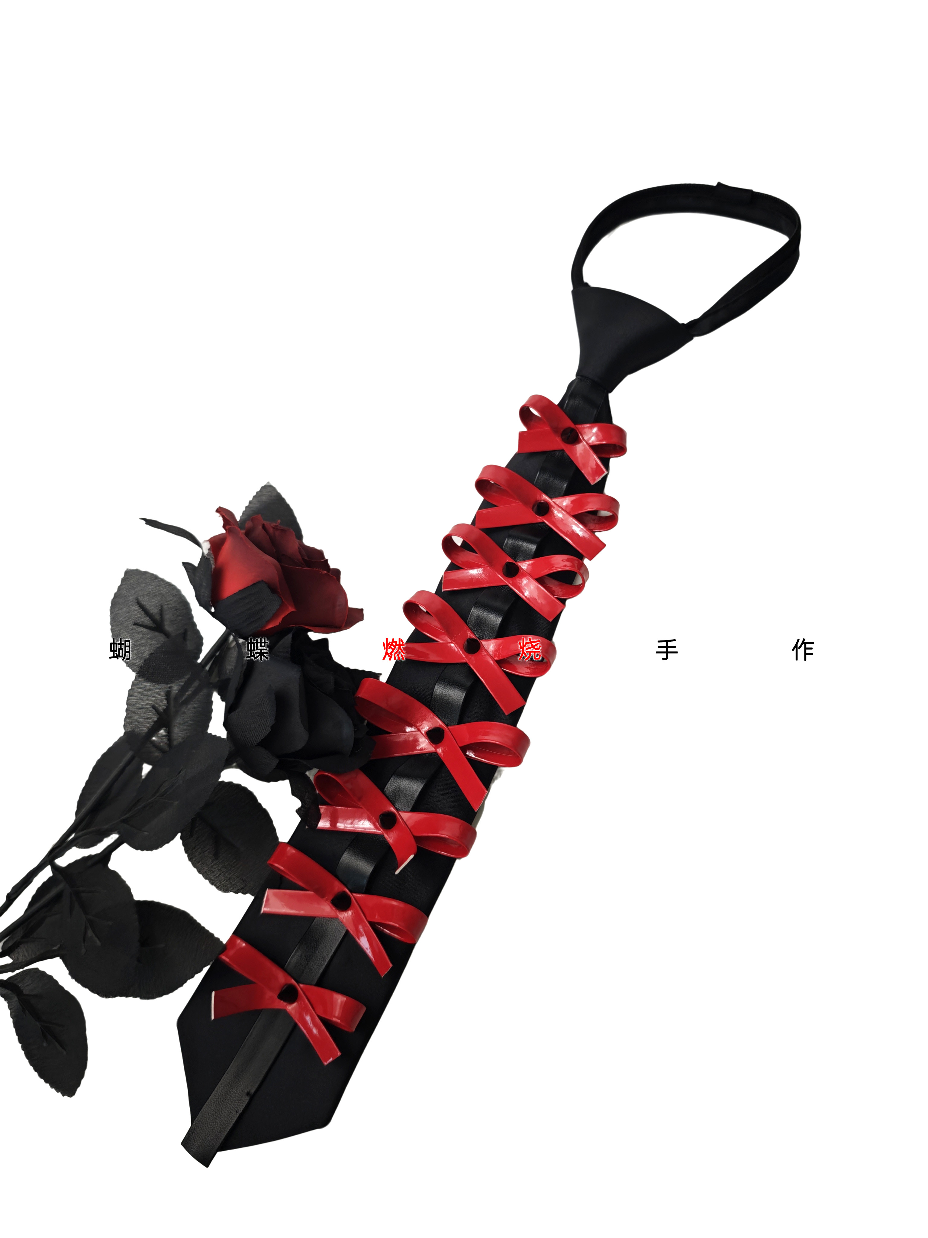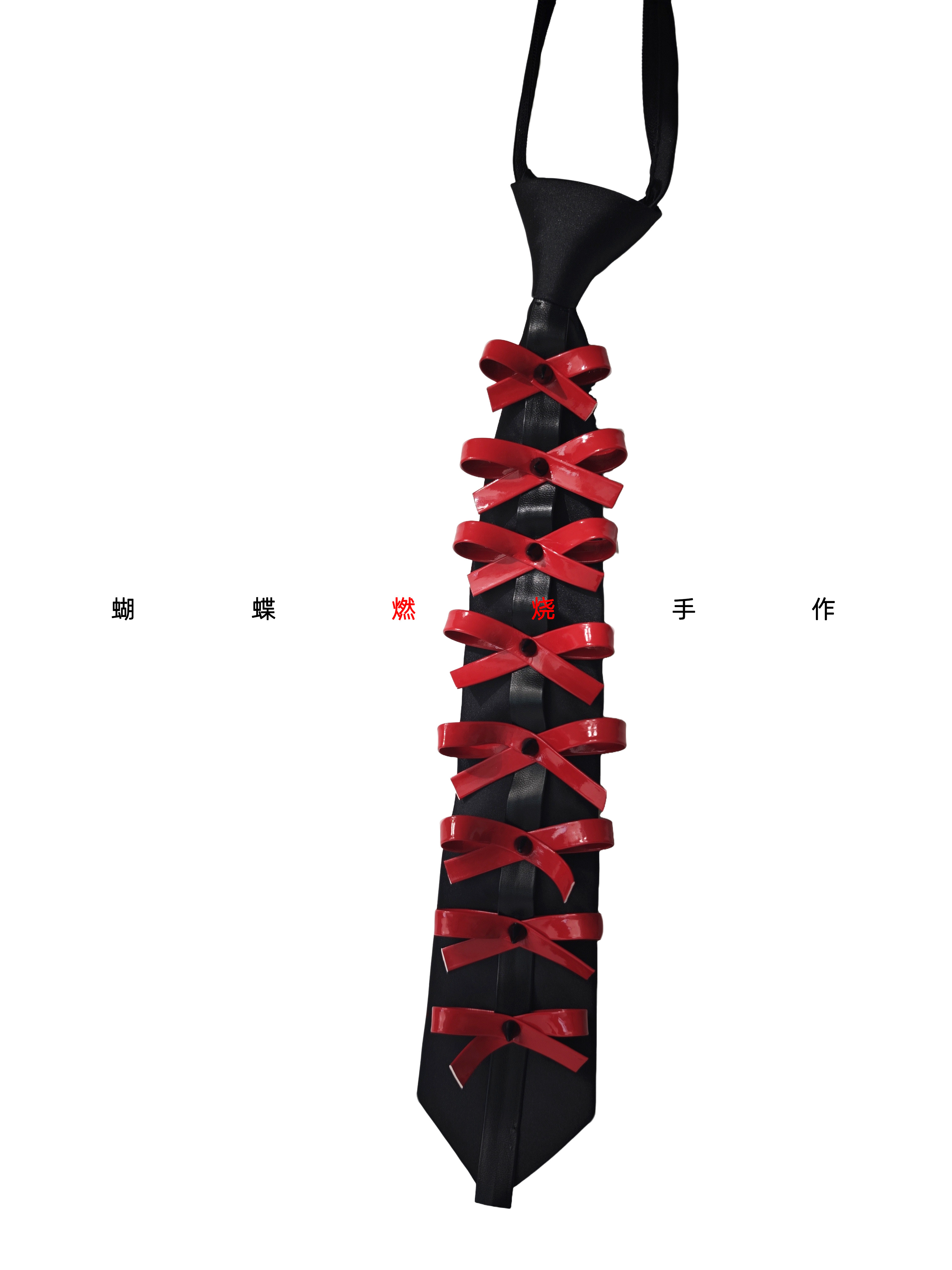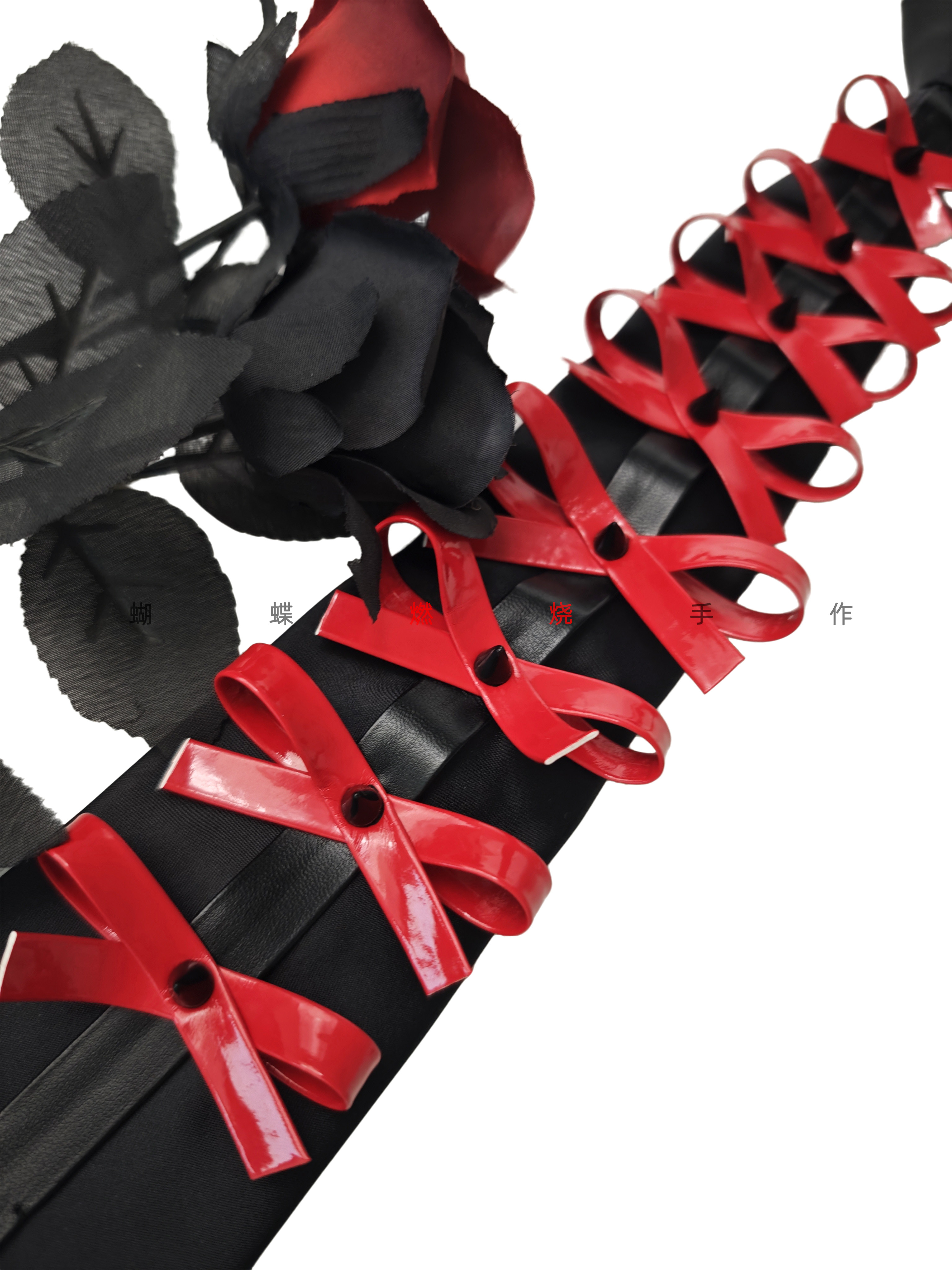 Butterfly Burnt Leather Tie Handmade Red and Black Color Vintage Punk Rock Bow Metal Rivets Shiny Leather No Need to Tie
