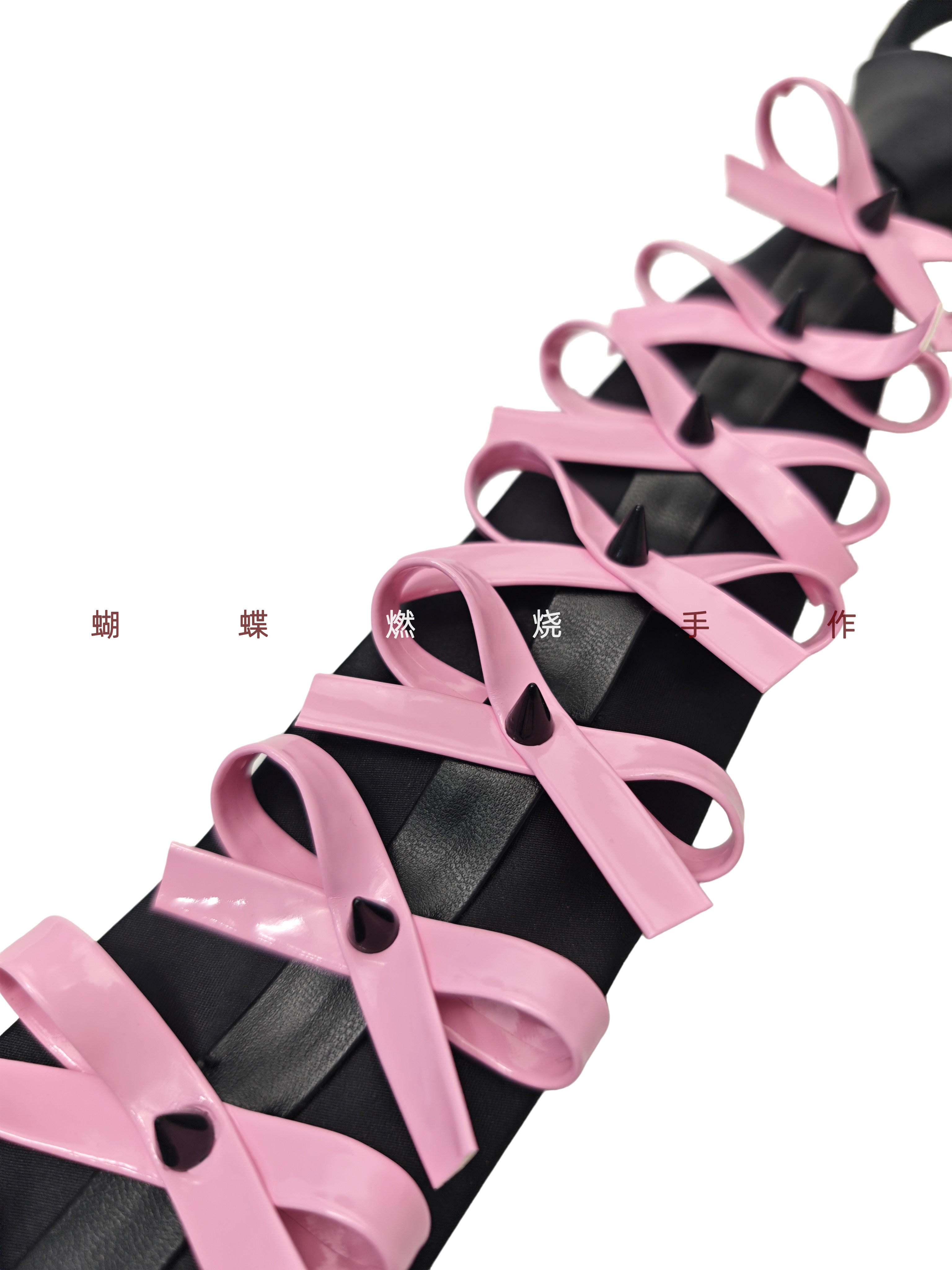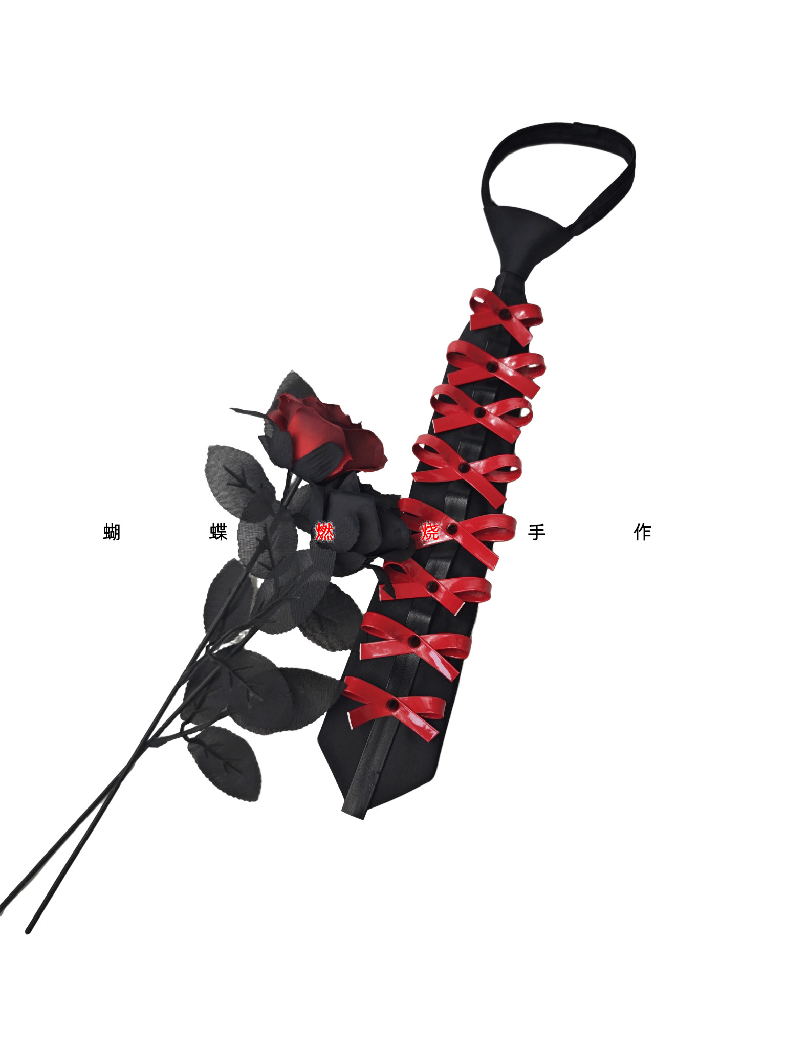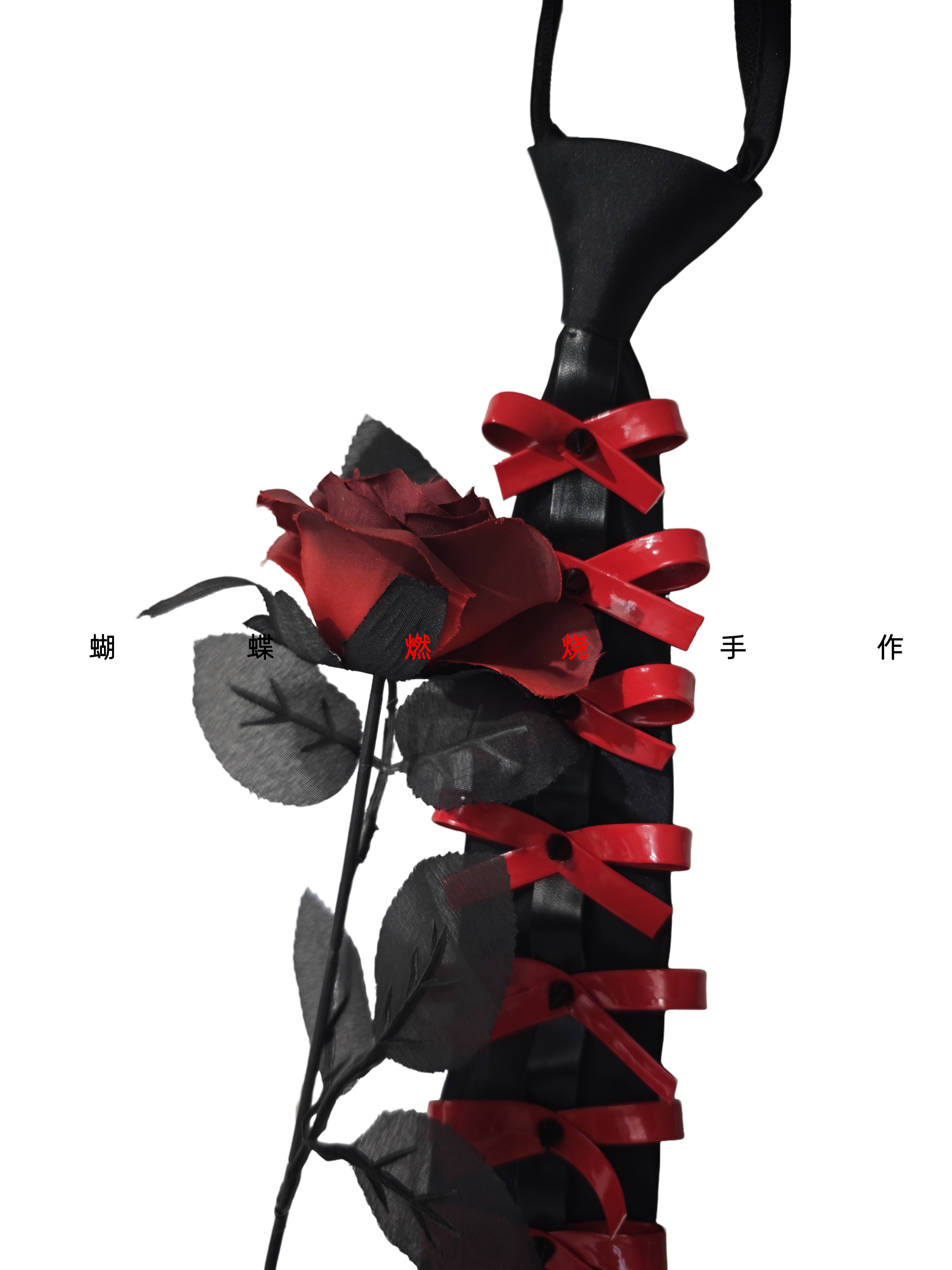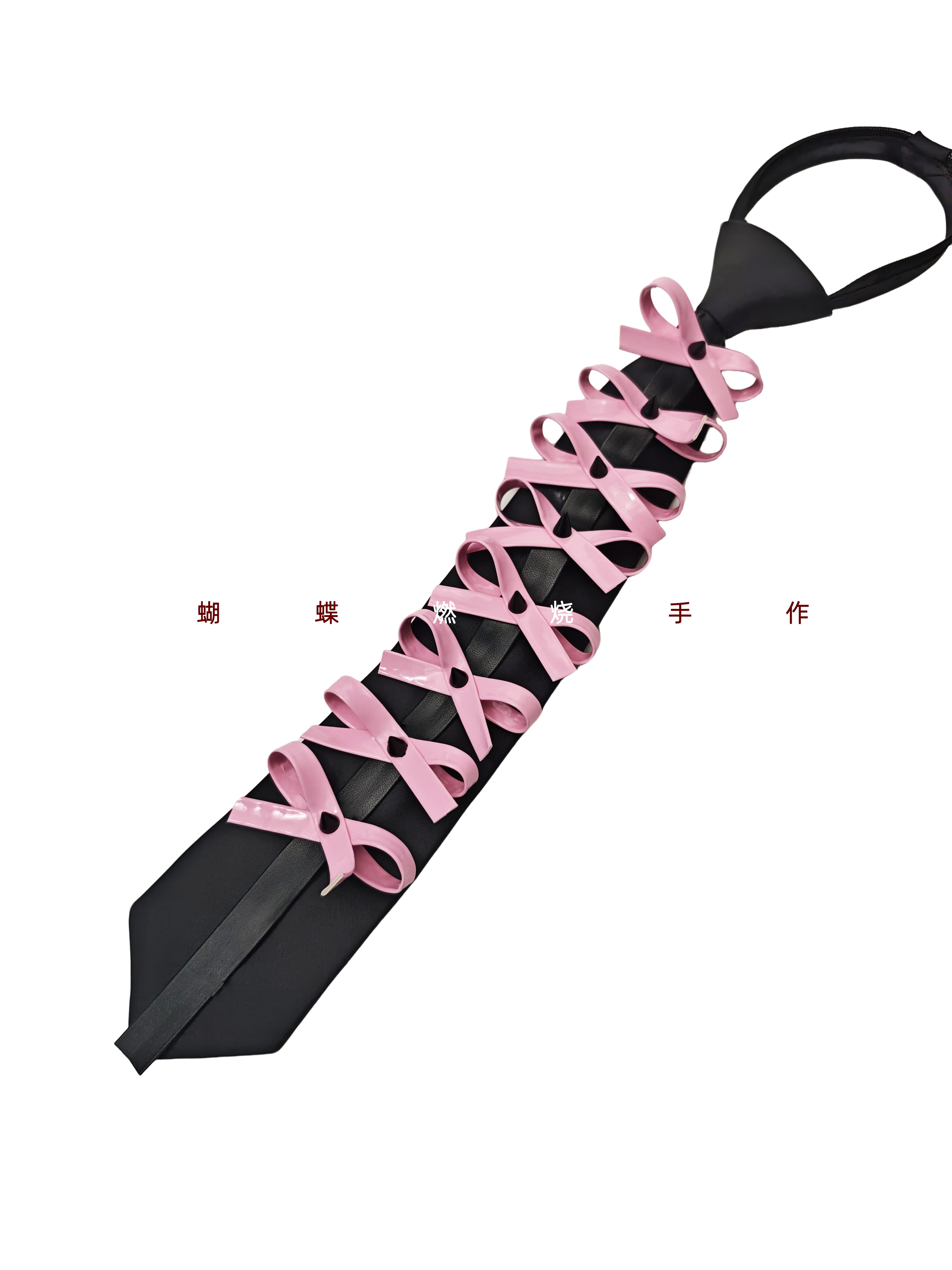 Butterfly Burnt Leather Tie Handmade Red and Black Color Vintage Punk Rock Bow Metal Rivets Shiny Leather No Need to Tie