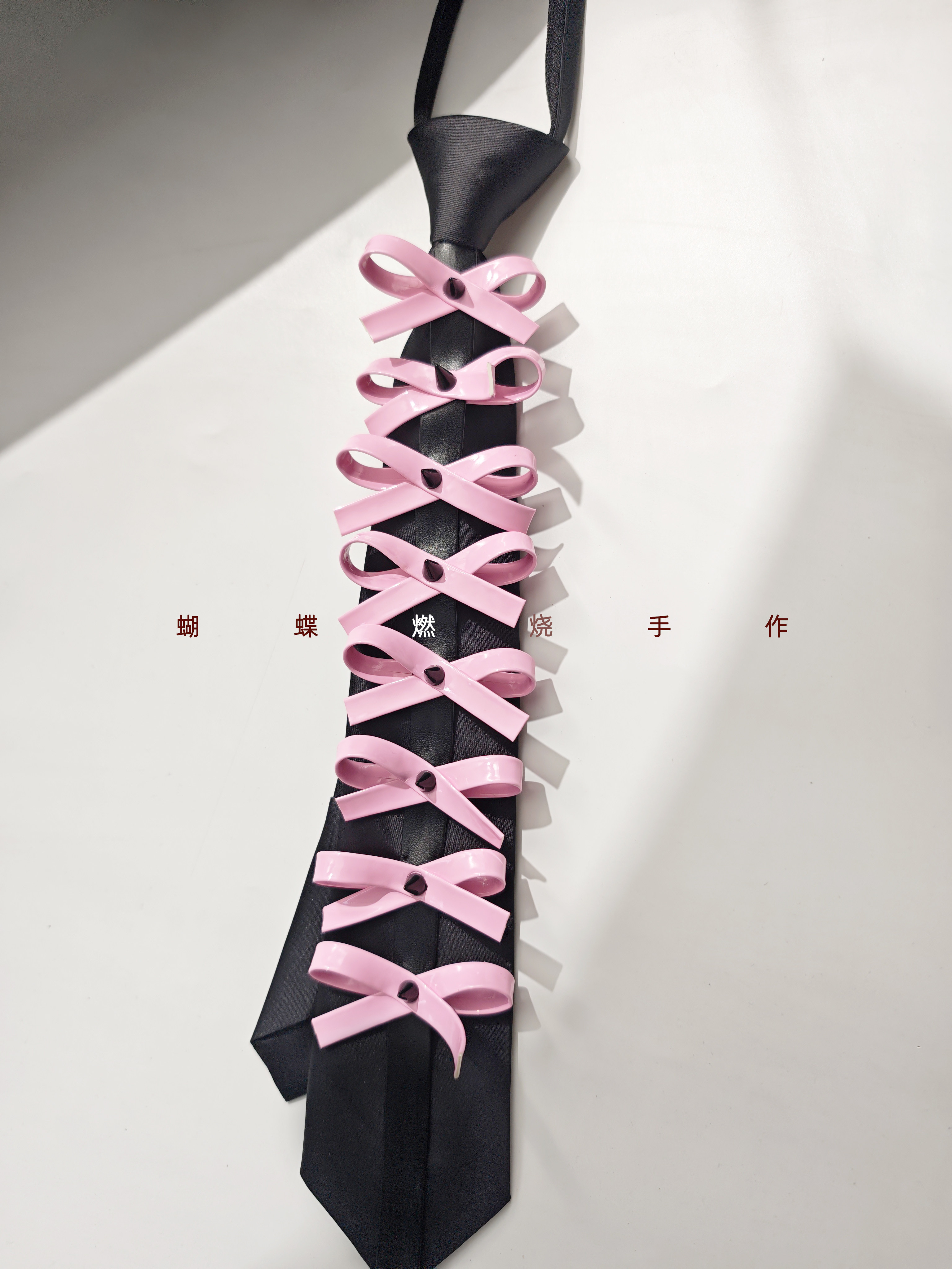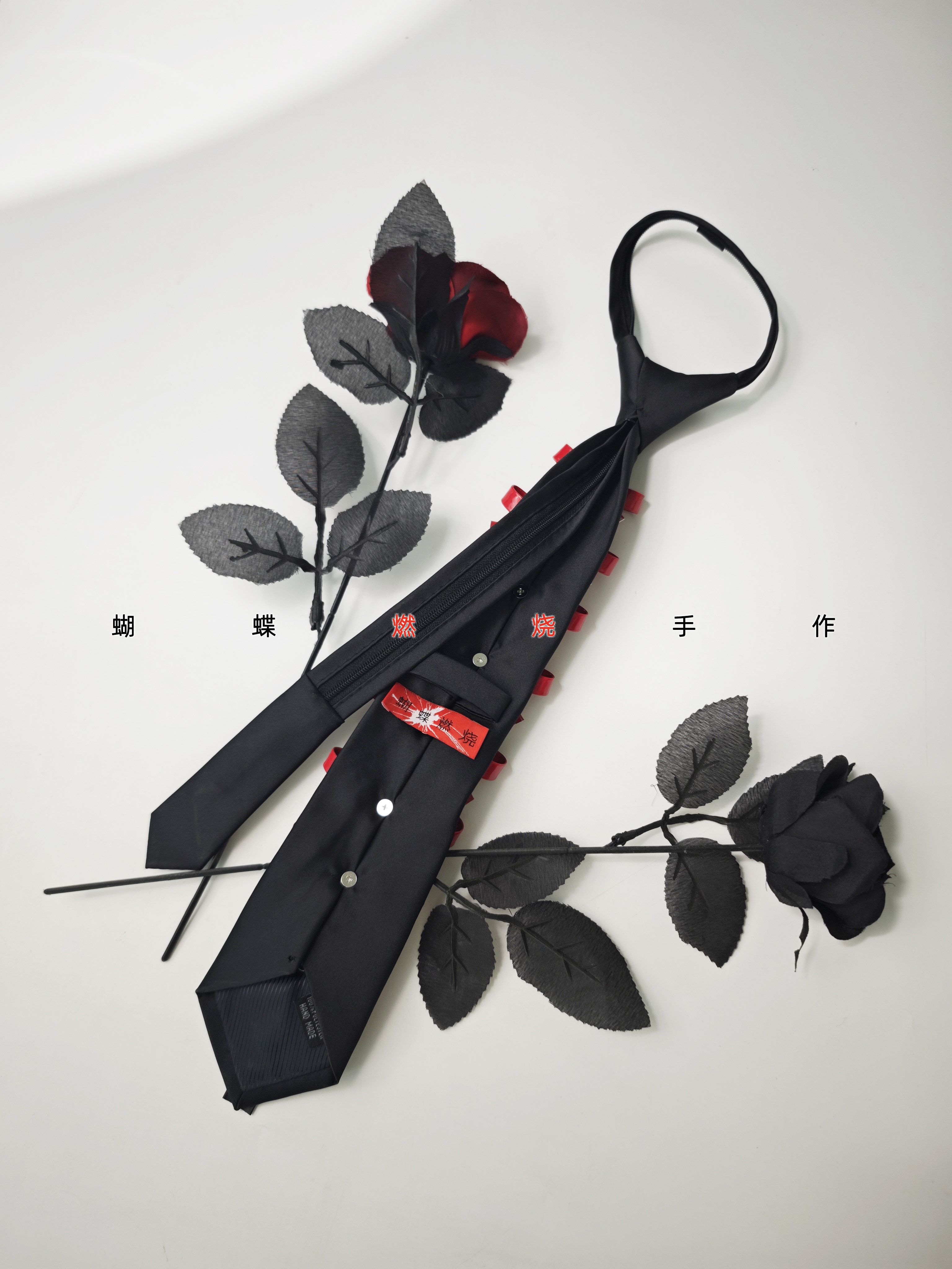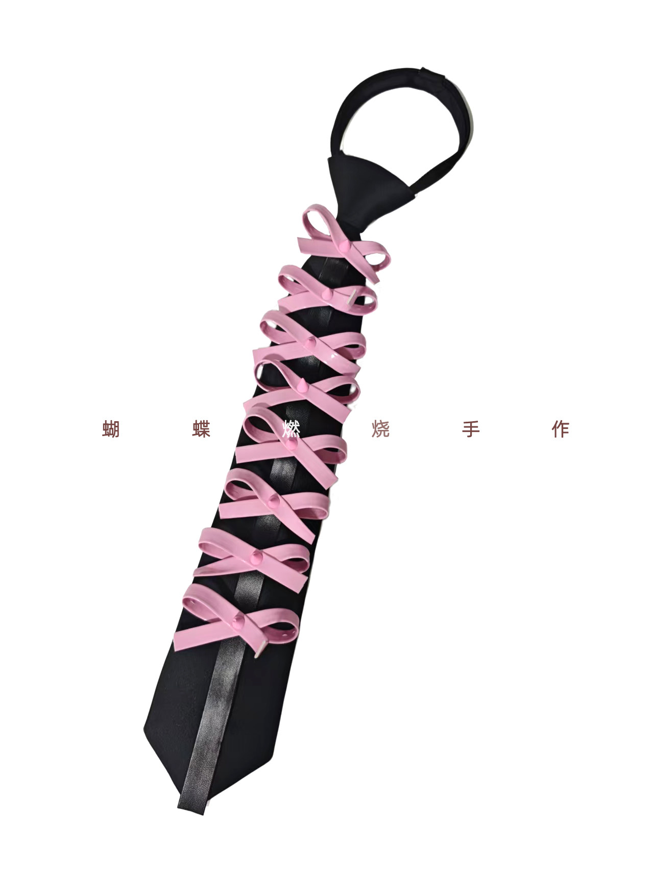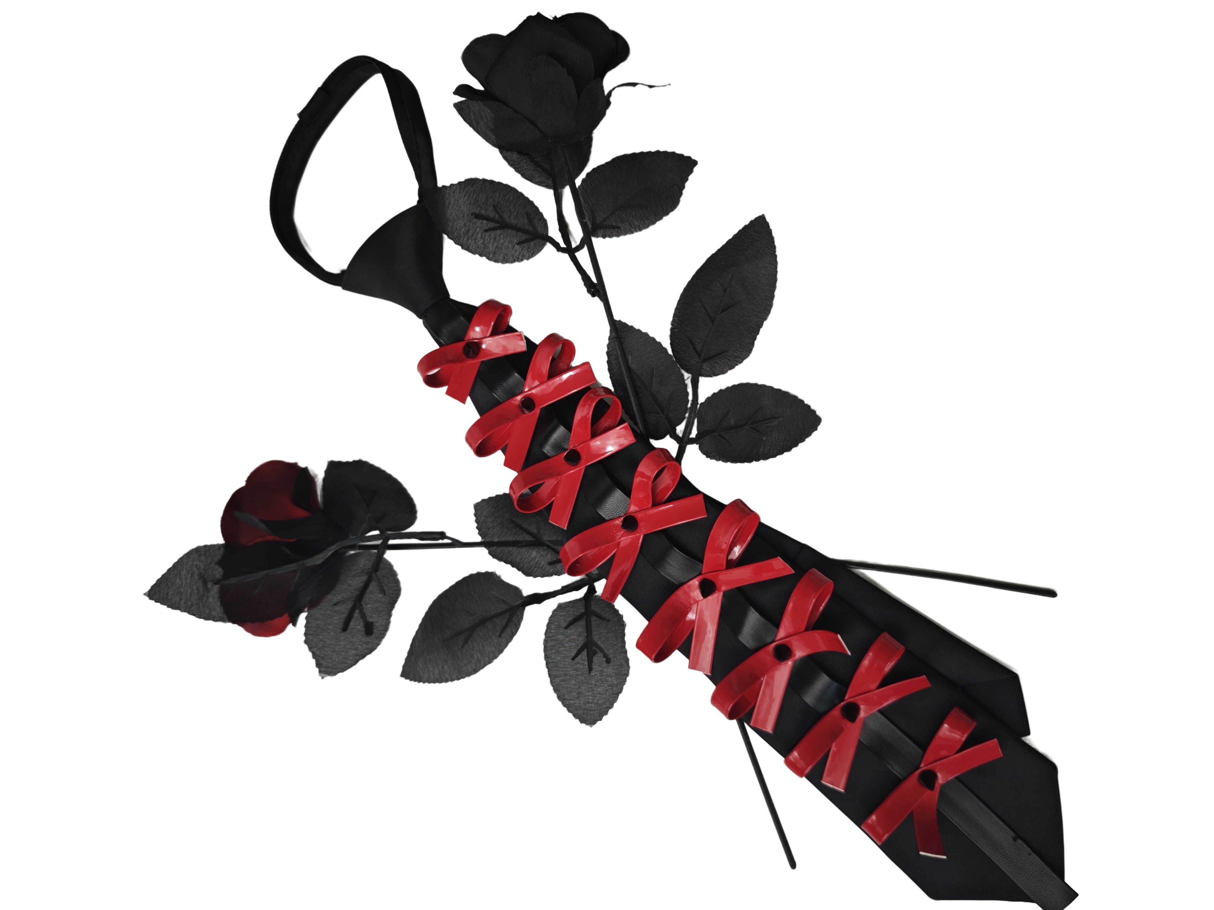 Butterfly Burnt Leather Tie Handmade Red and Black Color Vintage Punk Rock Bow Metal Rivets Shiny Leather No Need to Tie
