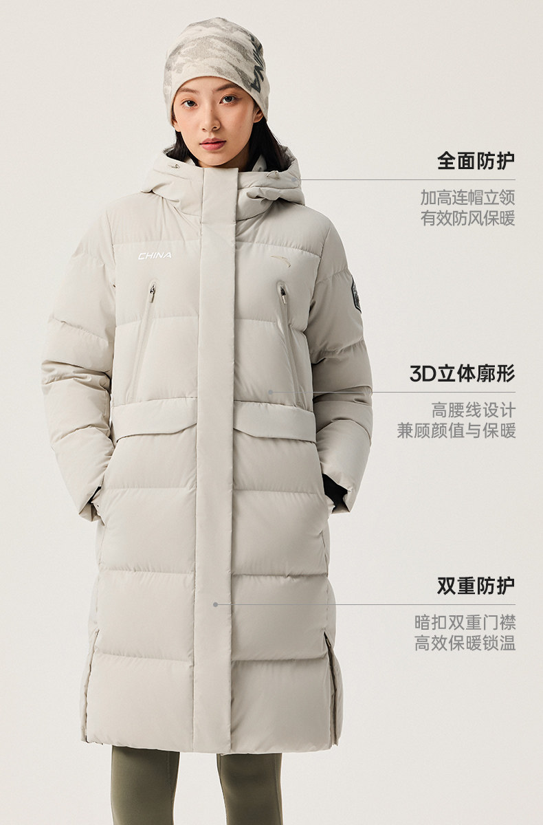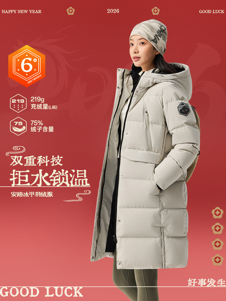 Anta Ice Armor down Jacket | Six-Degree Core Water-Repellent Mid-Length Duck down Warm Coat Women's Cotton Jacket 162617911