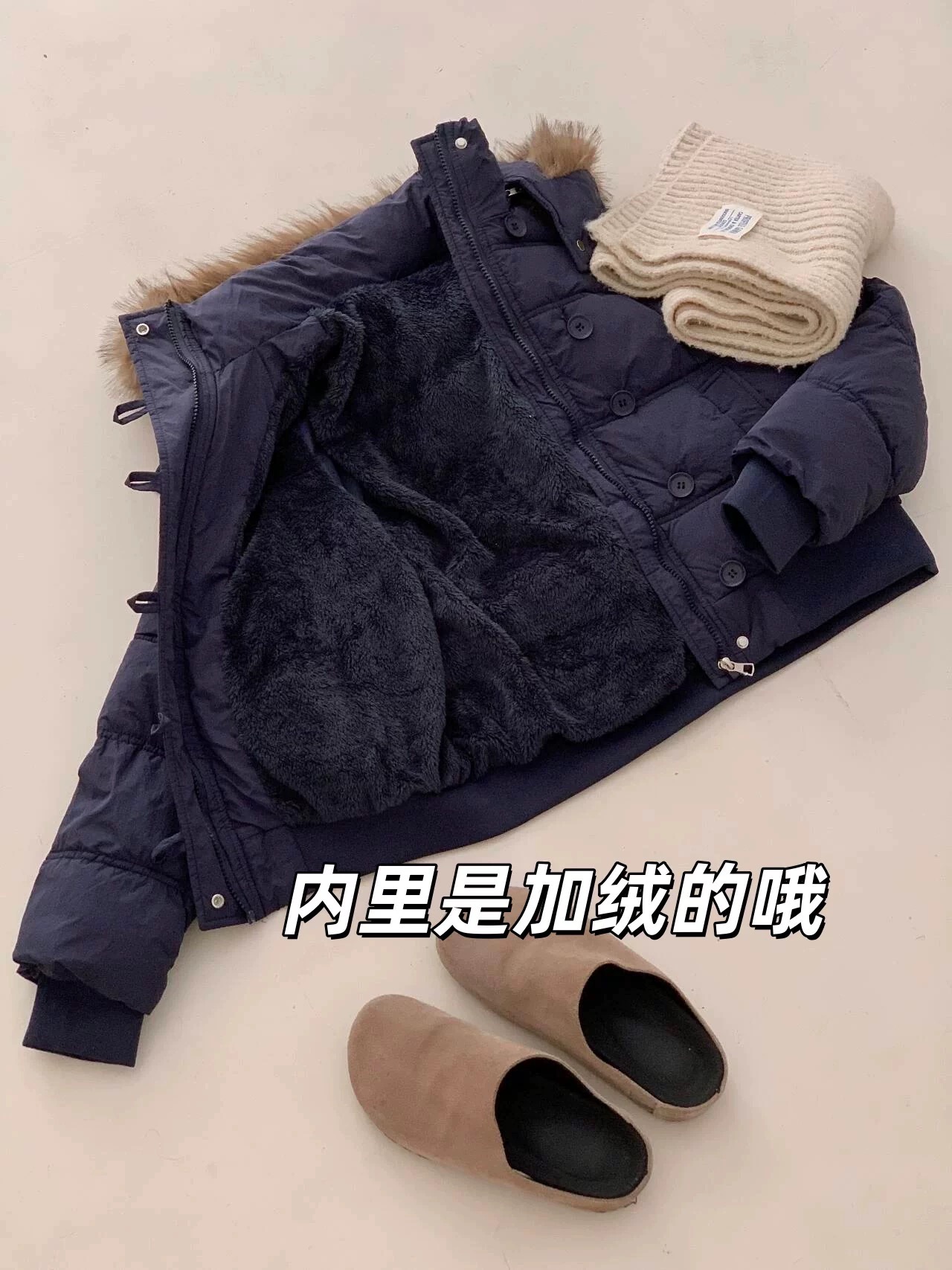 Fiona Navy Blue Short Cotton-Padded Jacket for Petite Women, 2025 Winter New Style, High-End Slimming Thickened Coat
