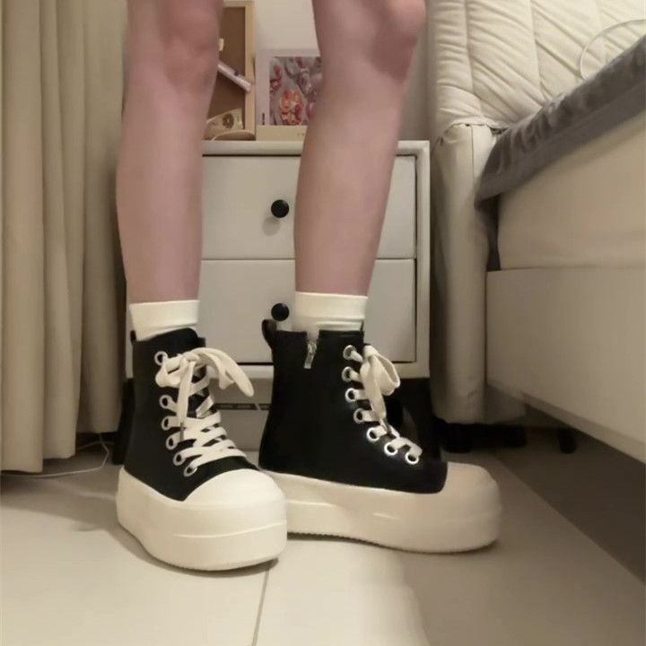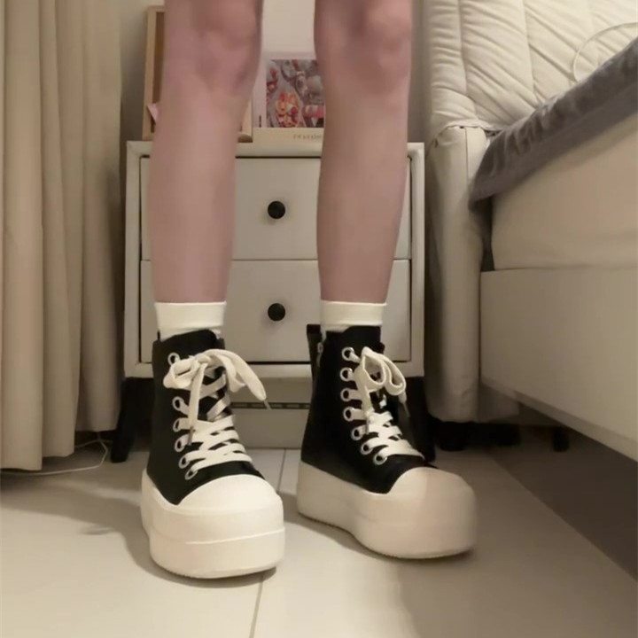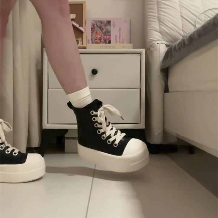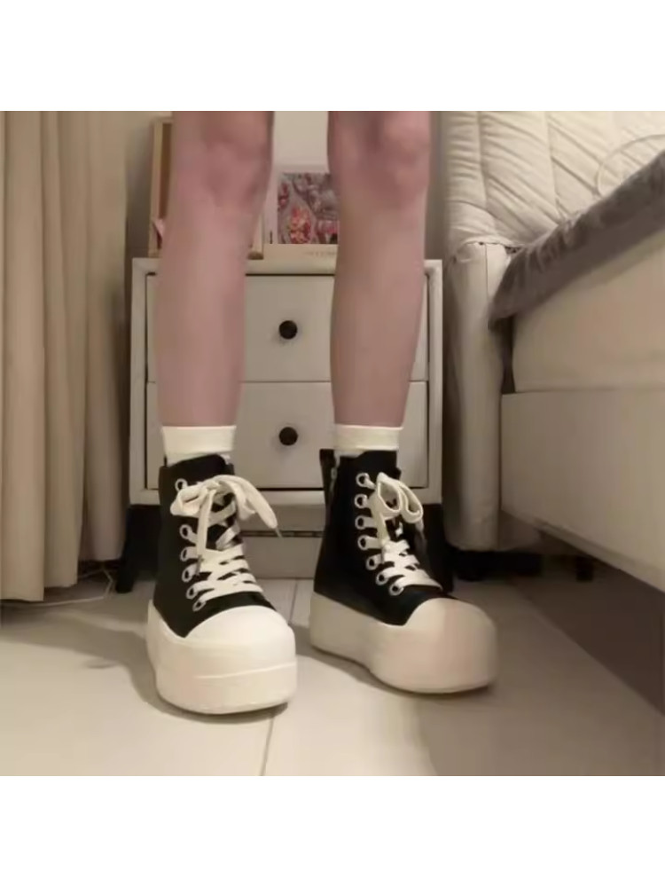 2026 Spring and Autumn New Style Thick-Soled High-Top Shoes for Petite Individuals, Korean Version Casual Shoes, Height-Increasing Canvas Cute and Quirky Sneakers