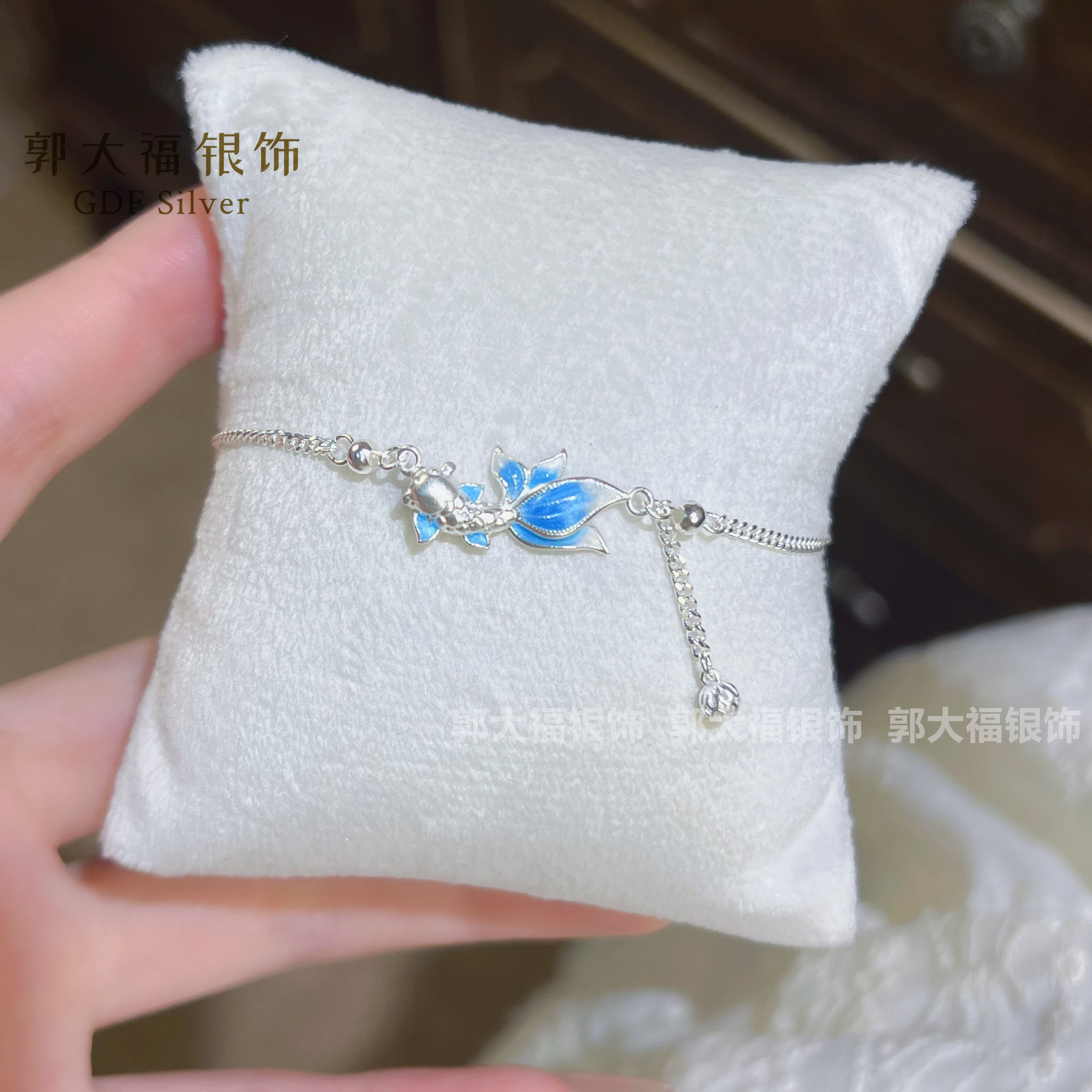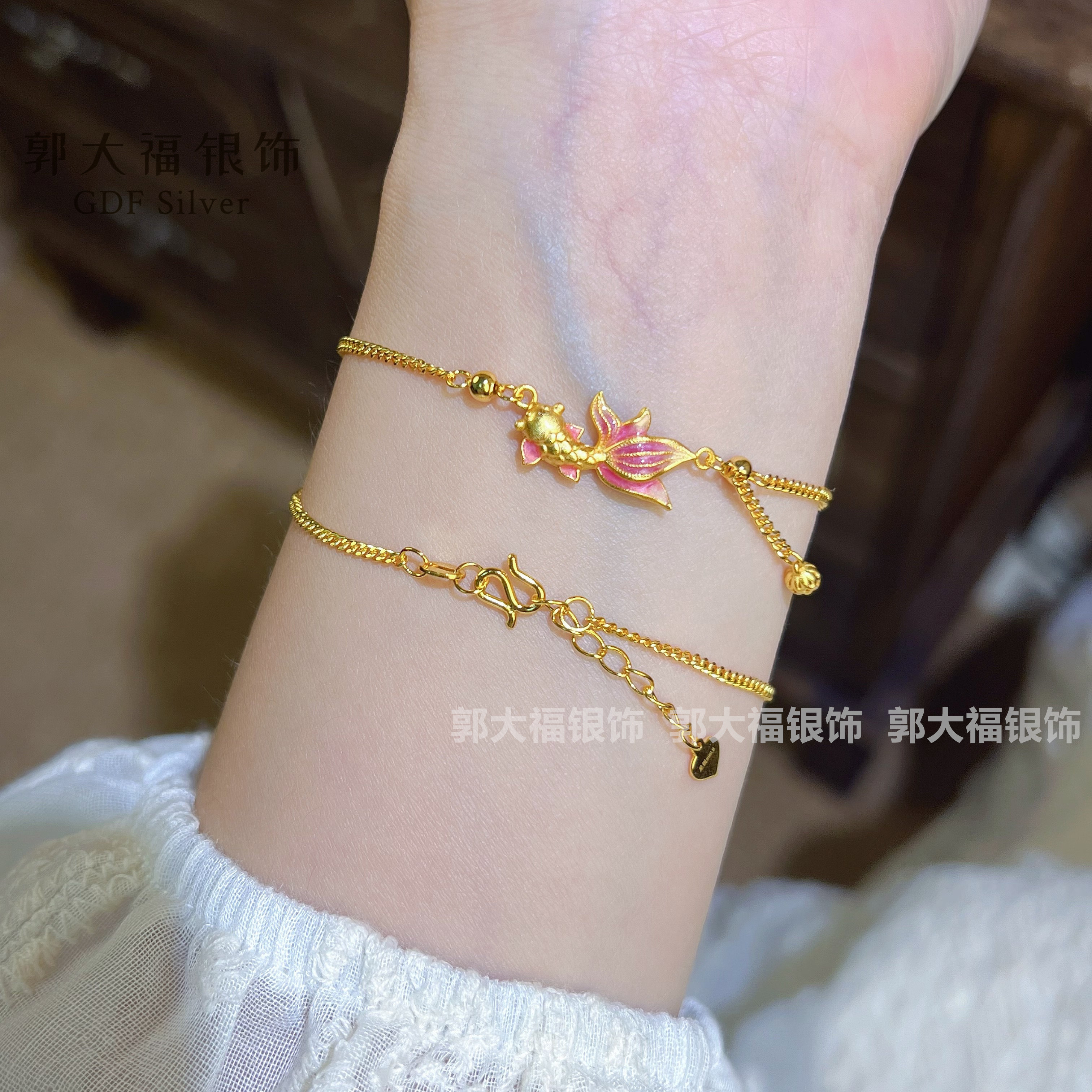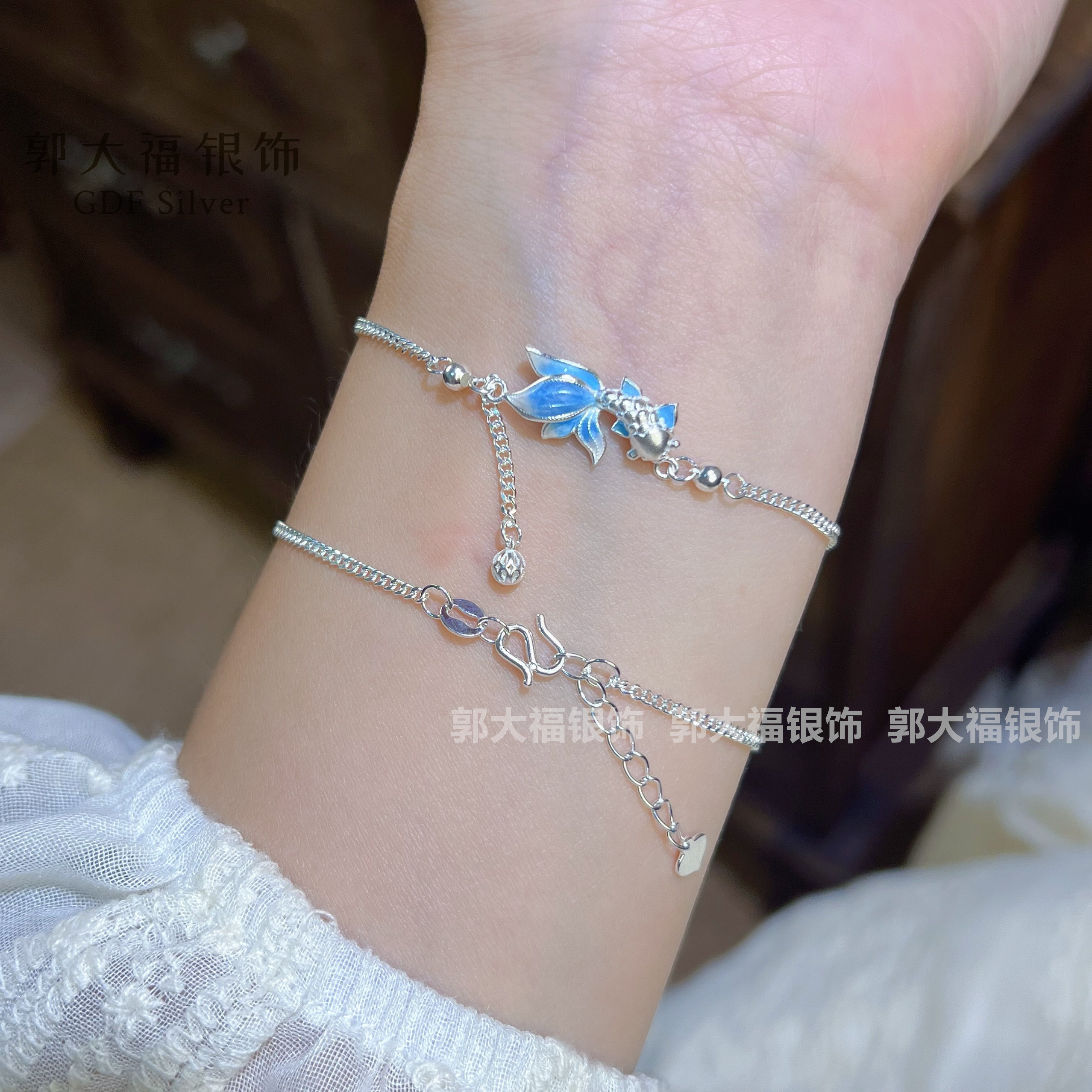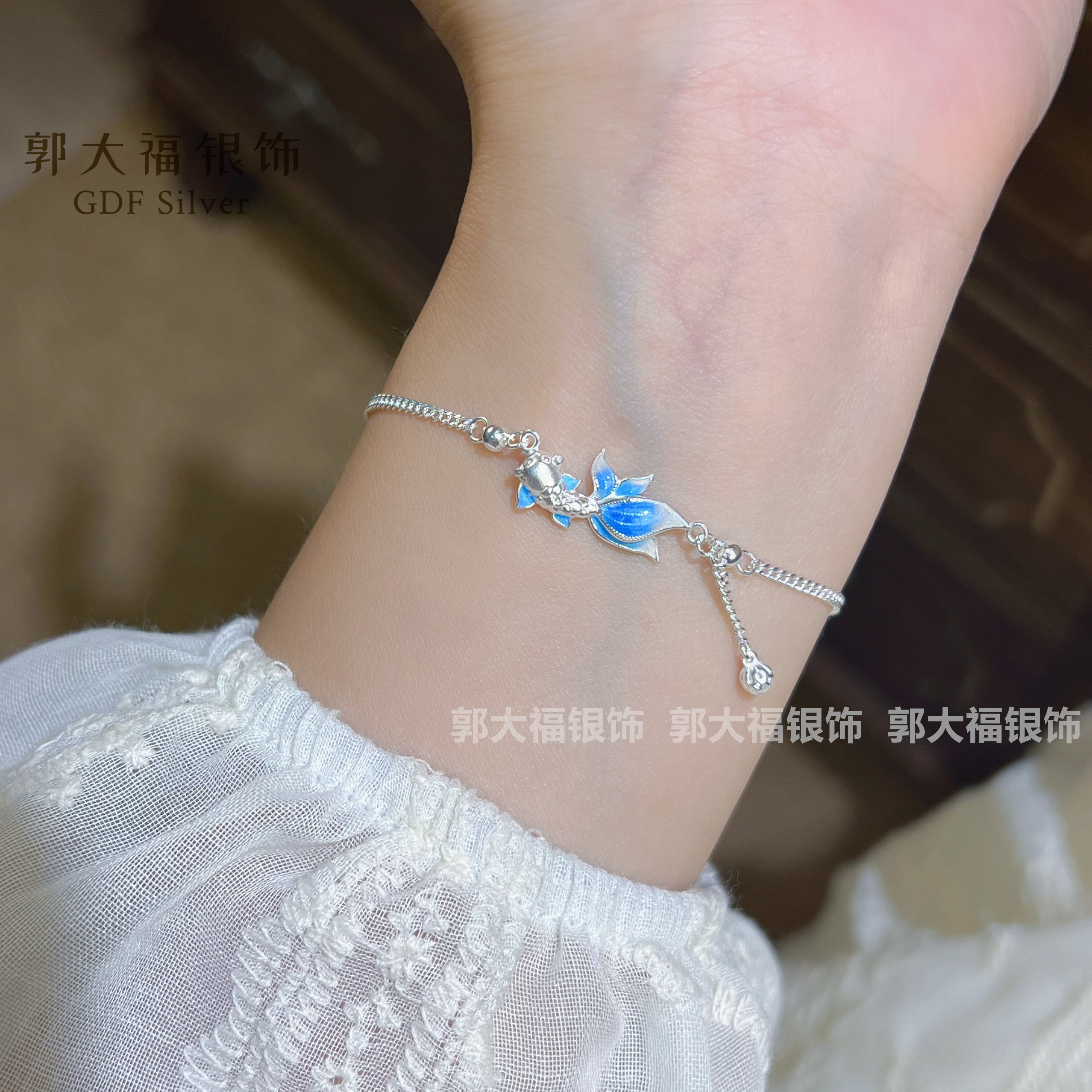Koi Fish 9999 Pure Silver New Chinese Style Enamel Exquisite Simple Versatile Stackable Sterling Silver Bracelet Gift for Girlfriend