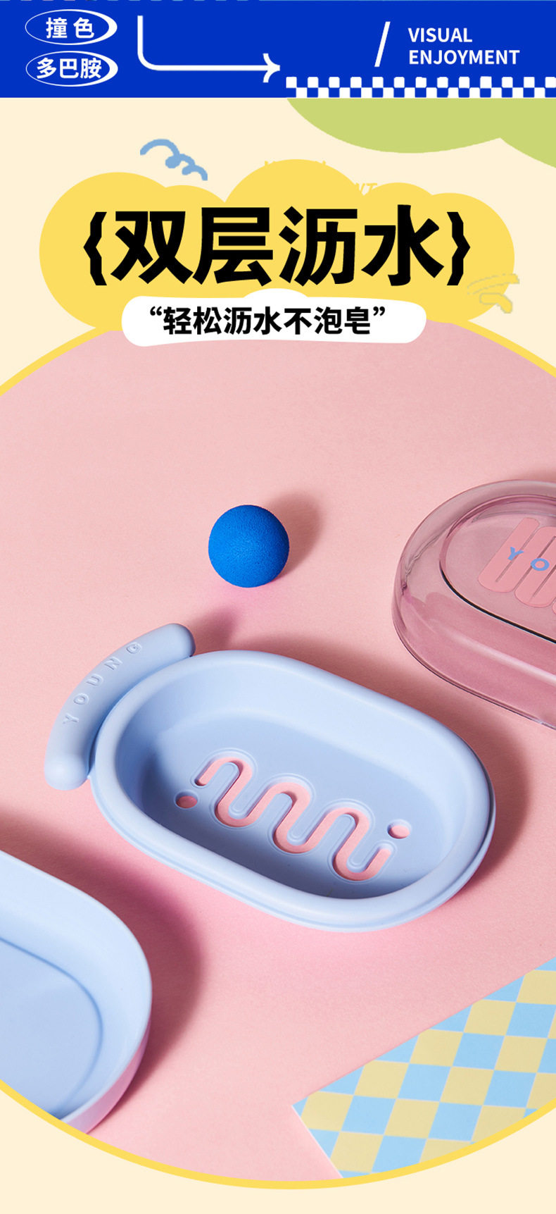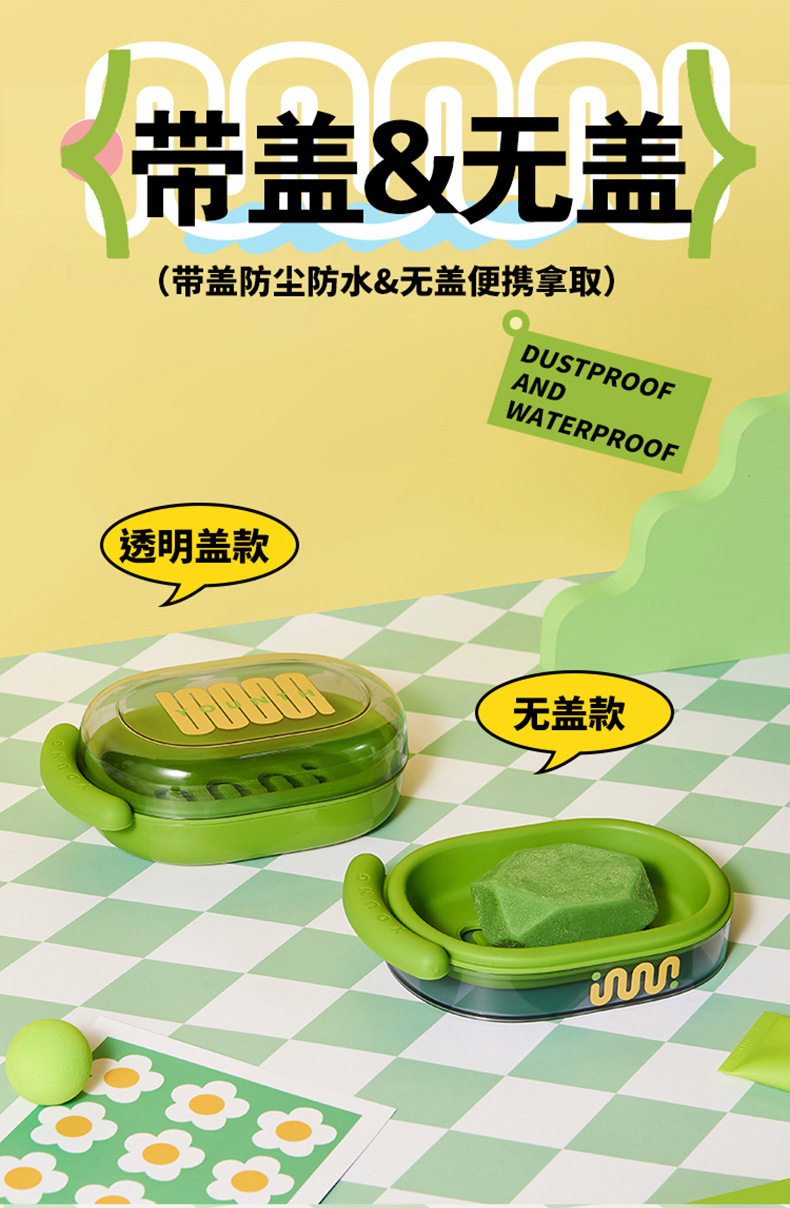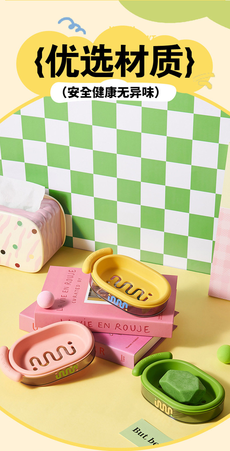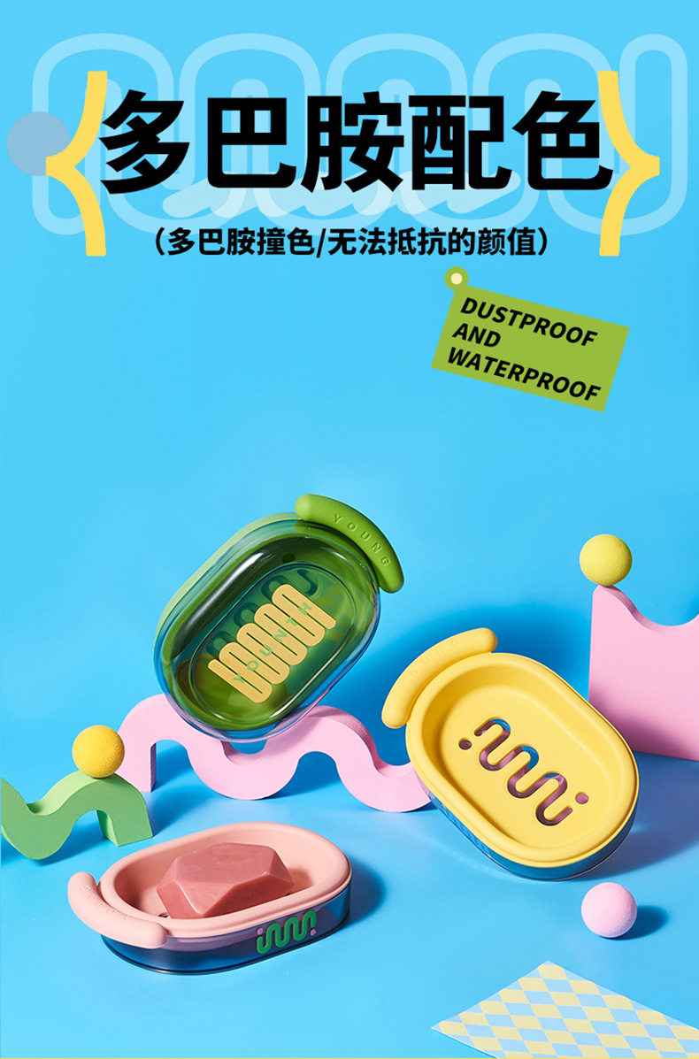 Back-To-School Season Double-Layer Soap Dish with Lid, Contrasting Color Soap Box, Portable Student Dormitory Dopamine Soap