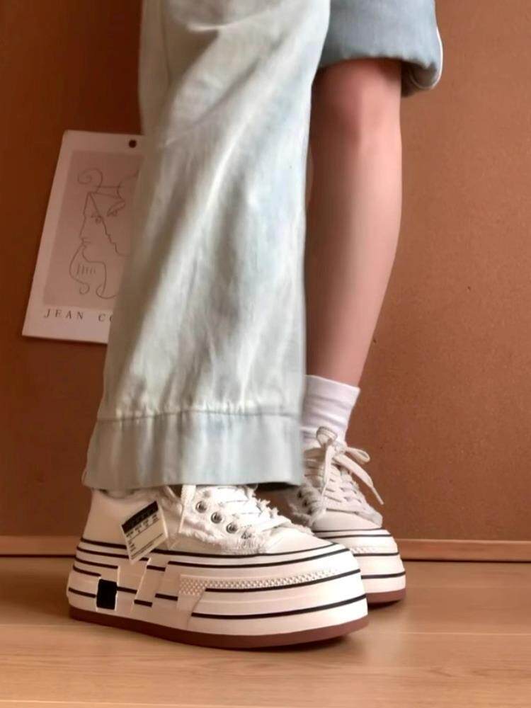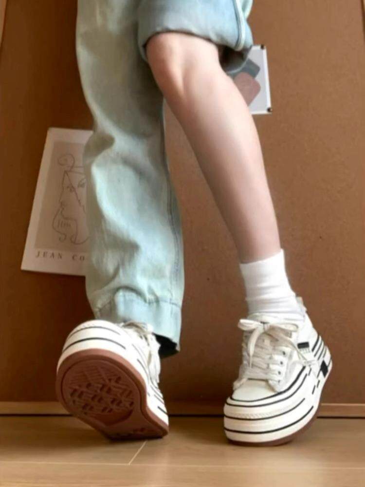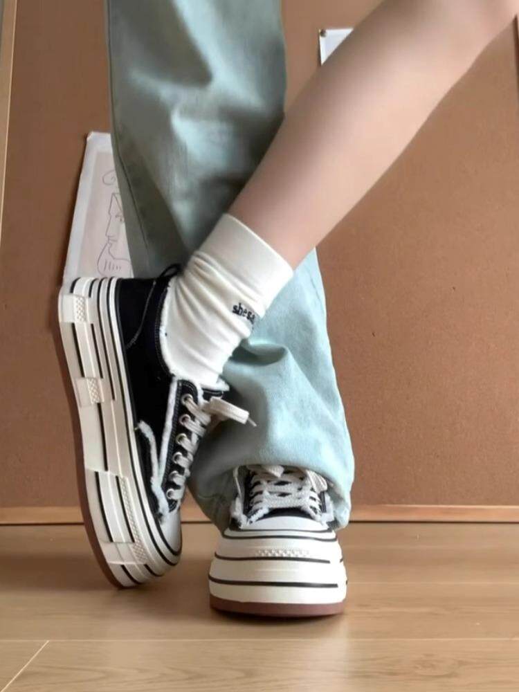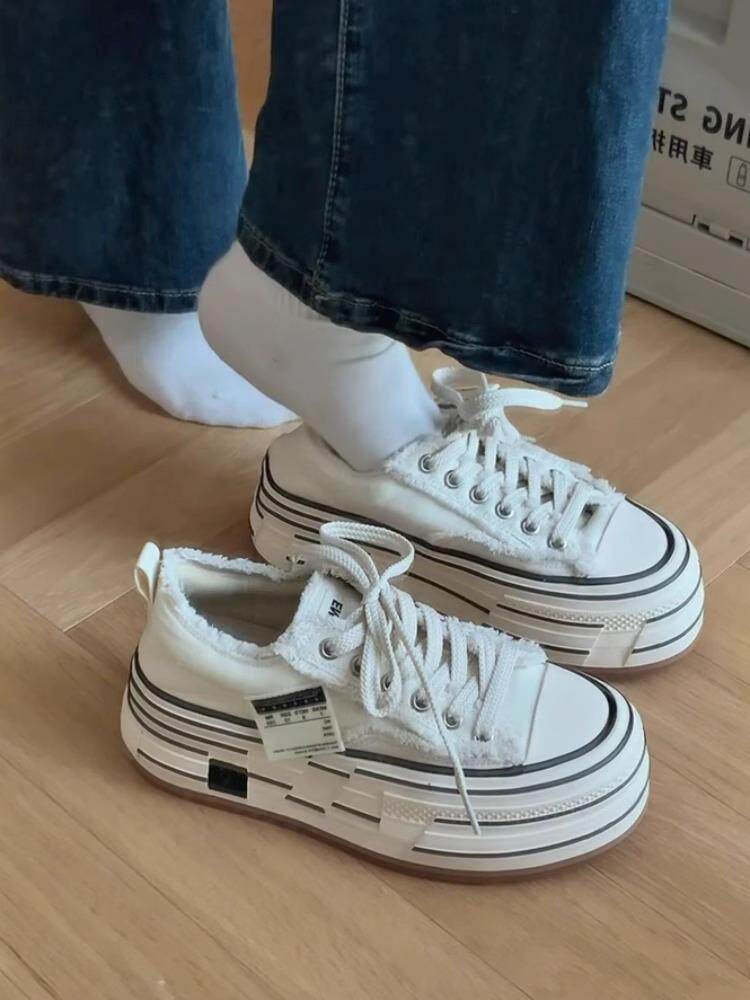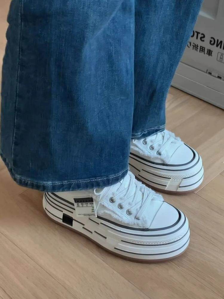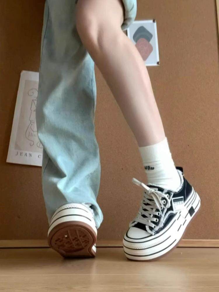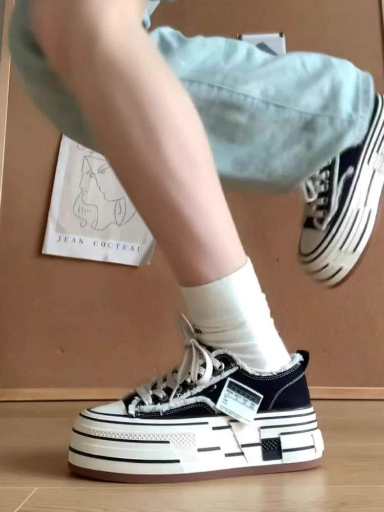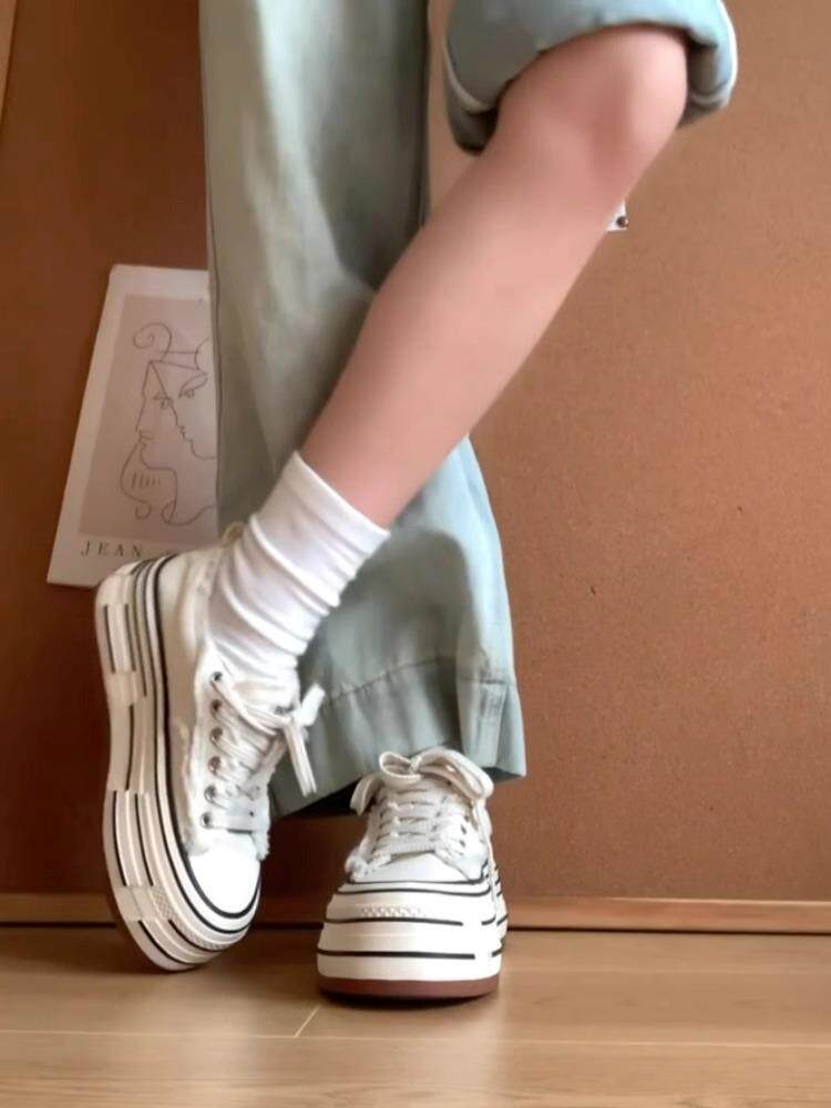 8cm Height Increase~Thick-Soled Hidden Height Increase Canvas Shoes for Women, 2026 Summer New Style, Petite Platform Casual Sneakers