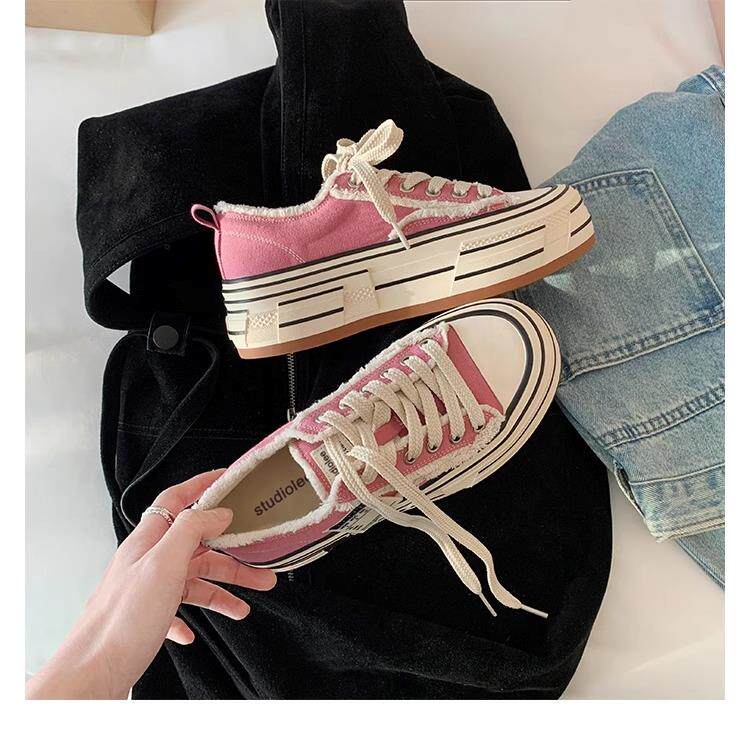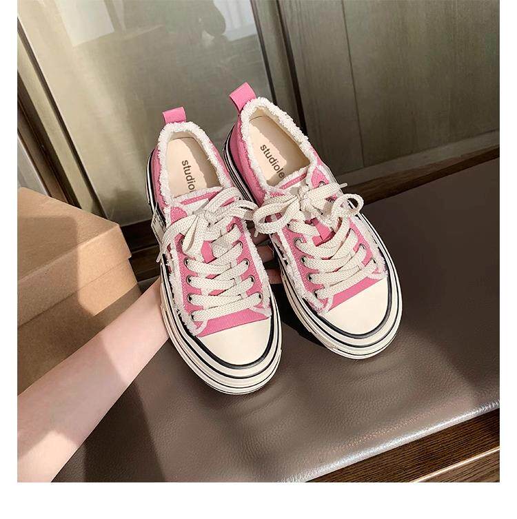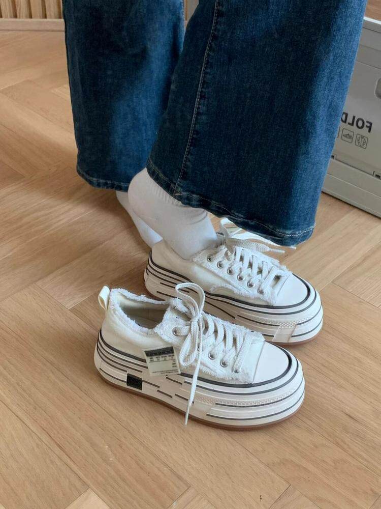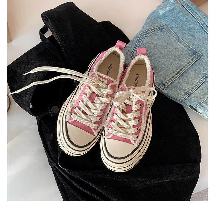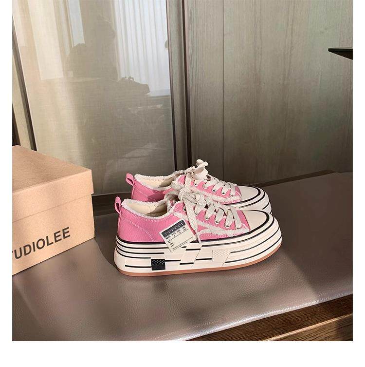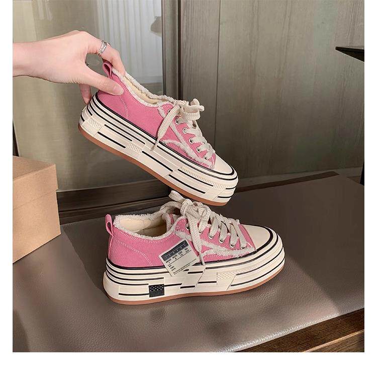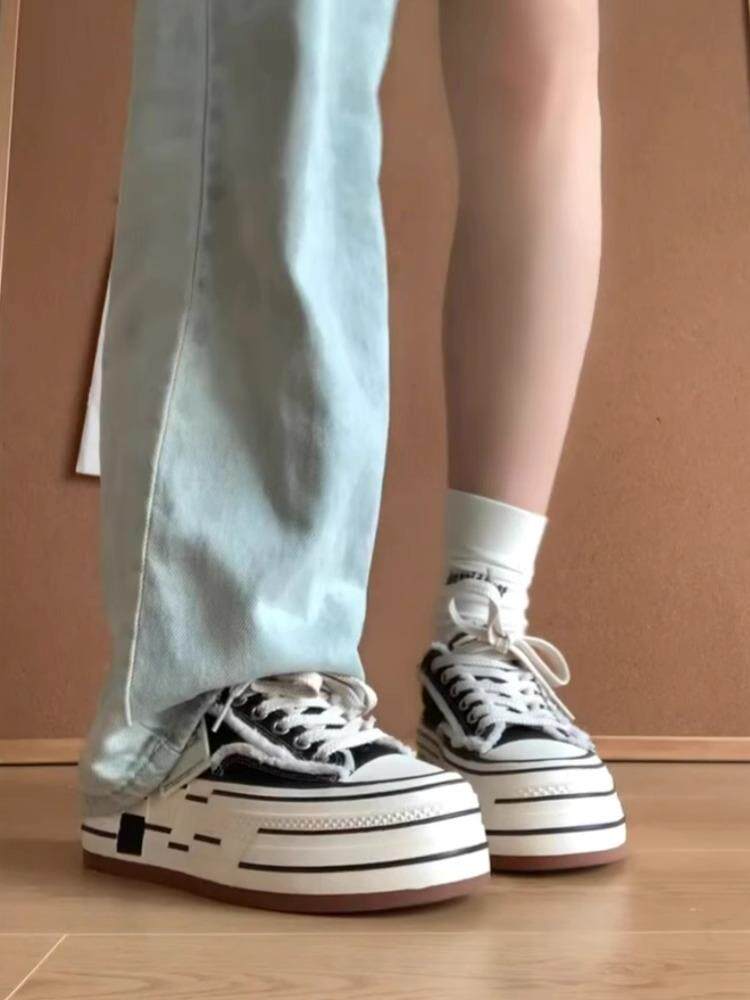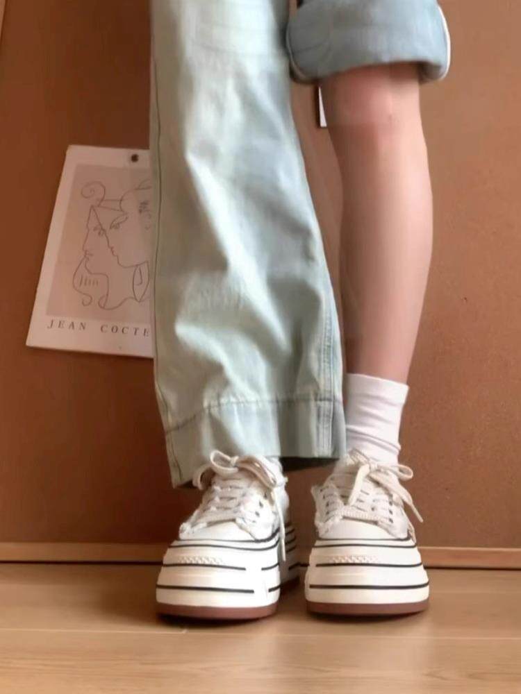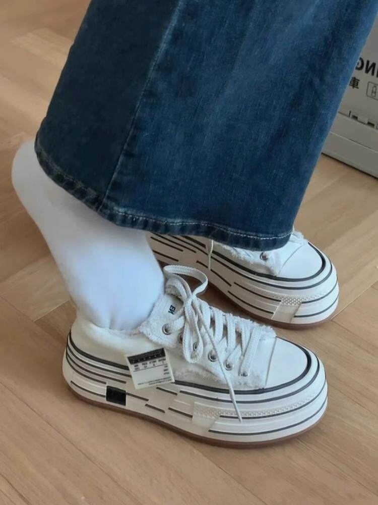8cm Height Increase~Thick-Soled Hidden Height Increase Canvas Shoes for Women, 2026 Summer New Style, Petite Platform Casual Sneakers