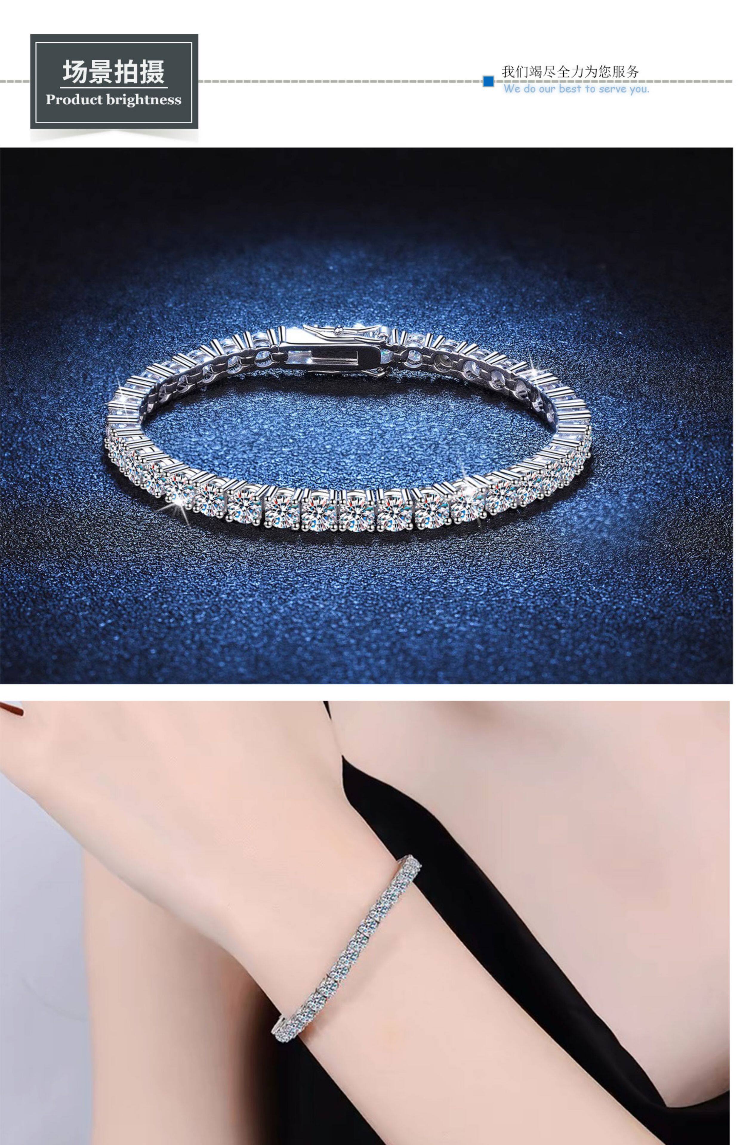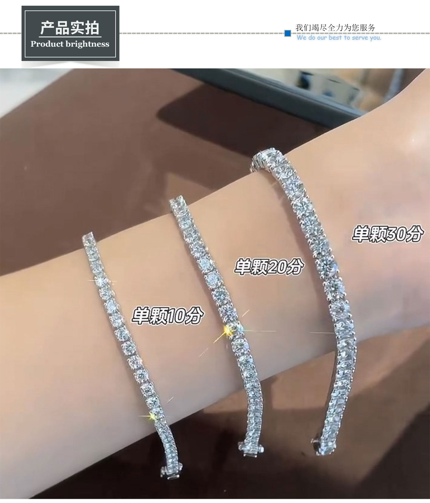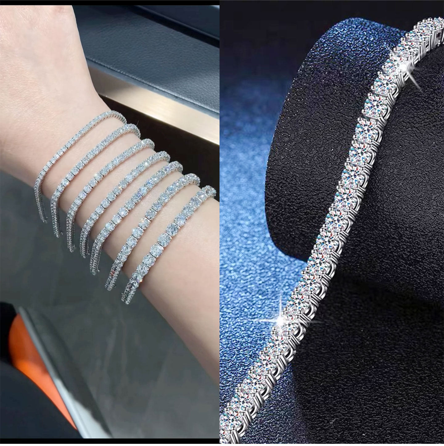 Authentic Moissanite Full Diamond Light Luxury Tennis Bracelet Simple Unisex Style Pure Silver Plated with Pt950 Platinum Bracelet