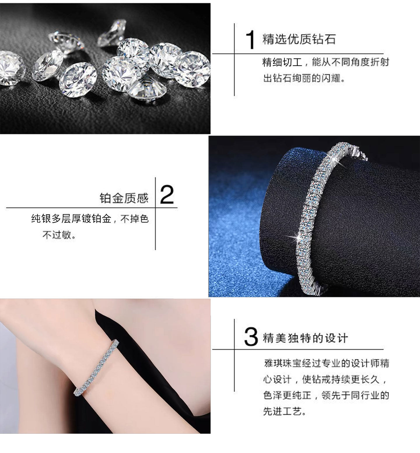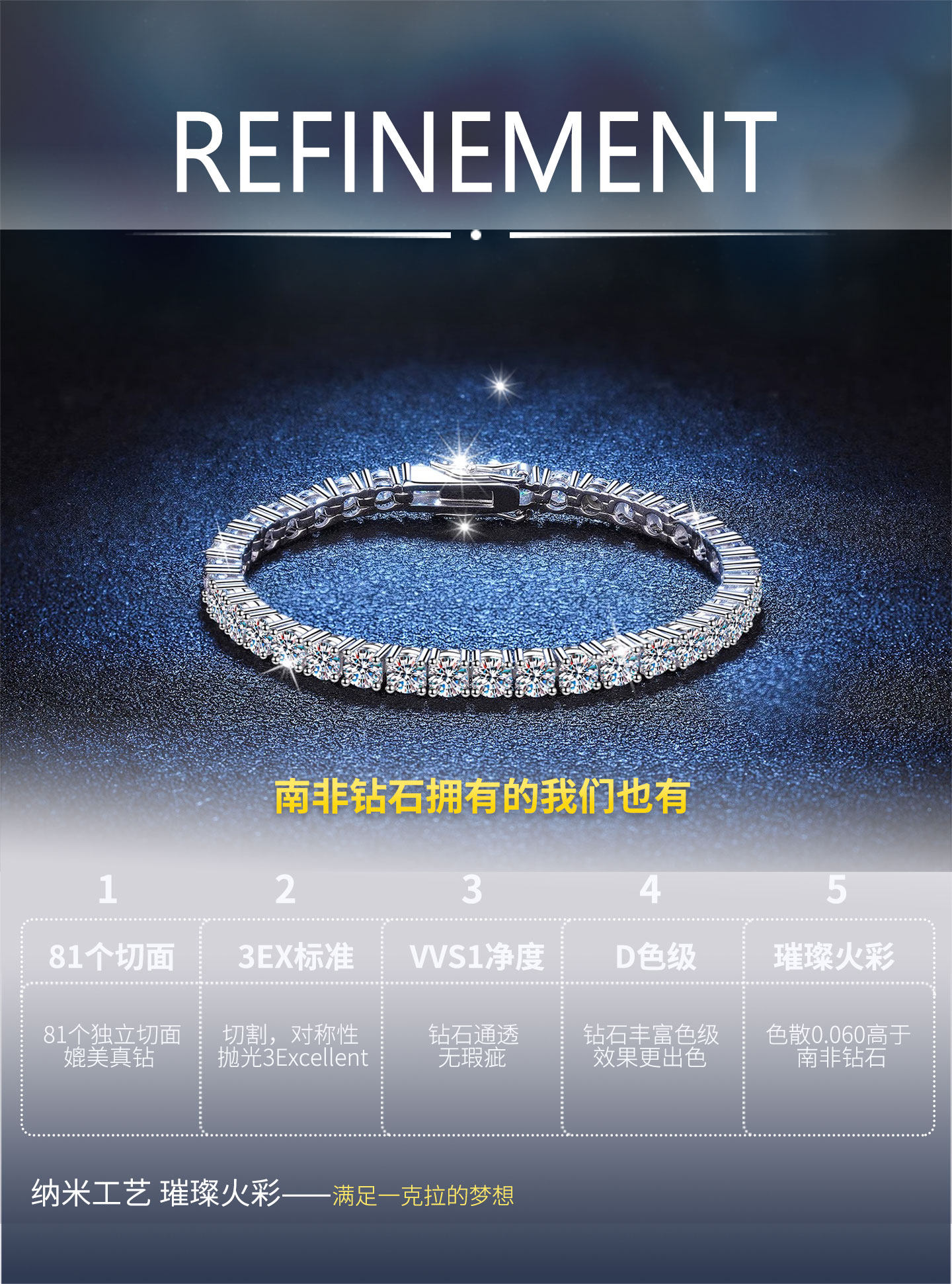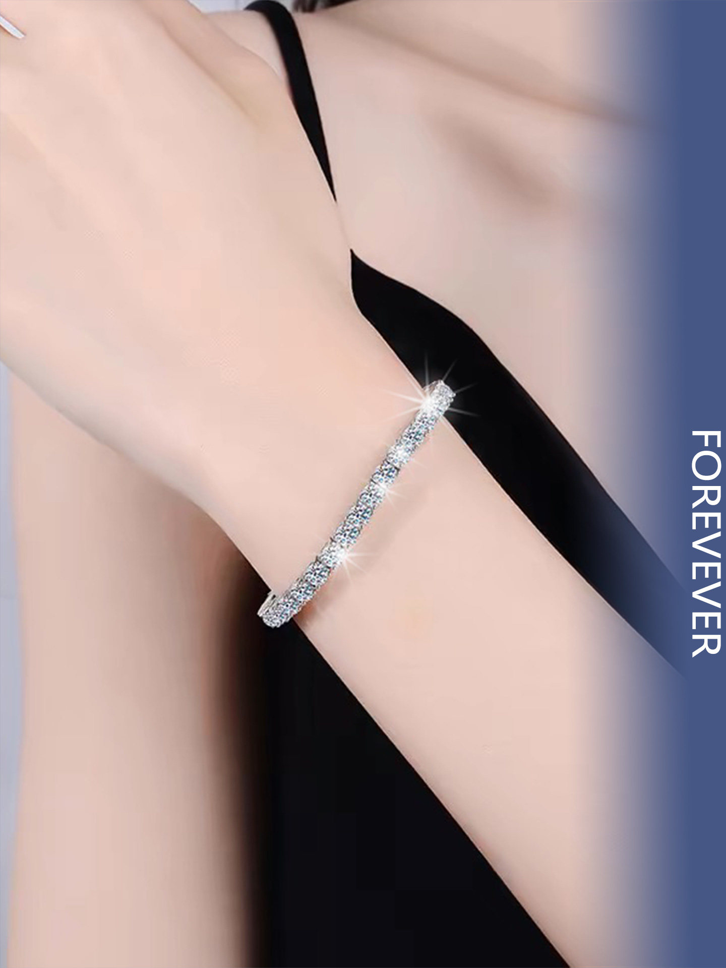 Authentic Moissanite Full Diamond Light Luxury Tennis Bracelet Simple Unisex Style Pure Silver Plated with Pt950 Platinum Bracelet