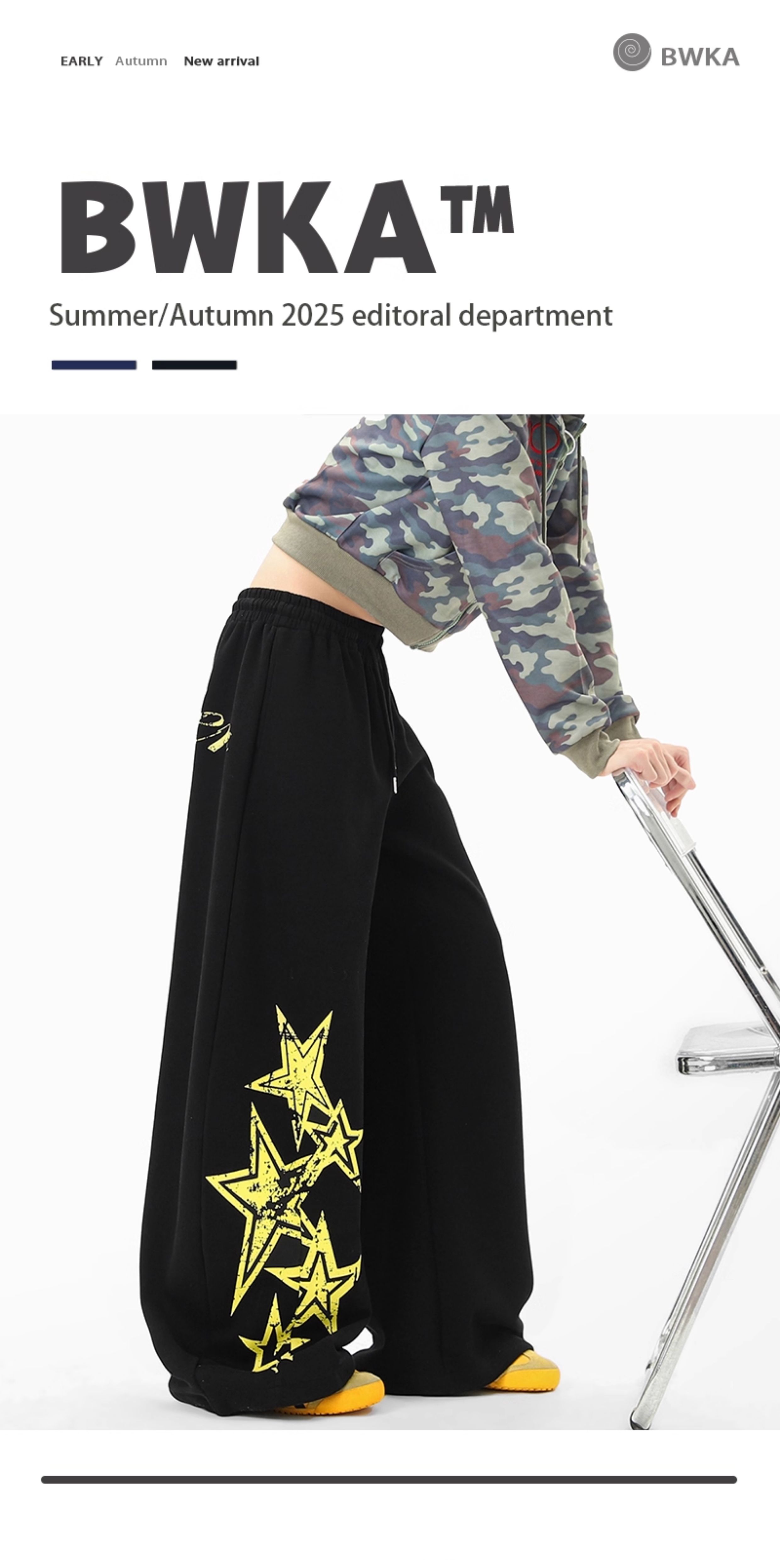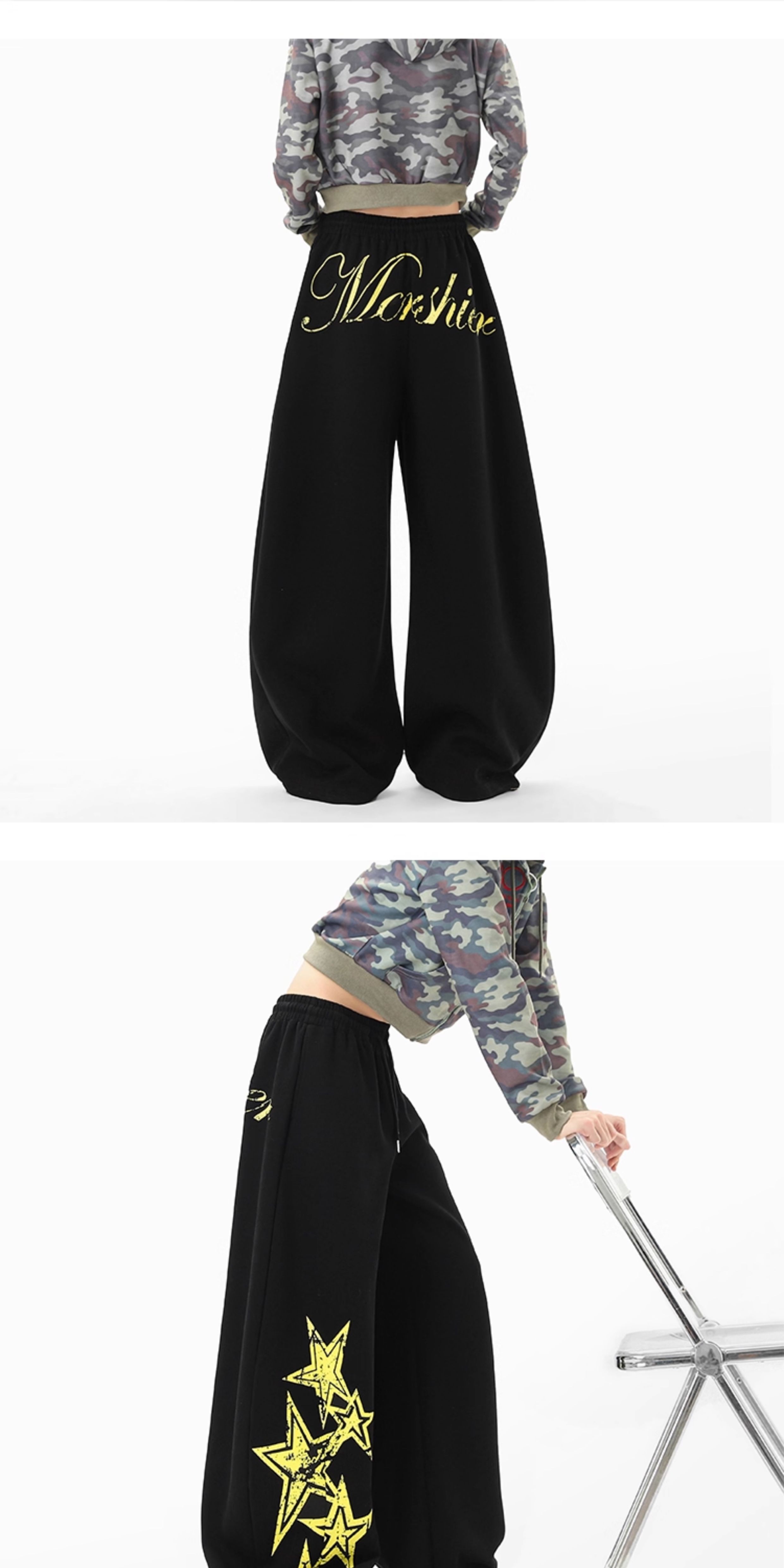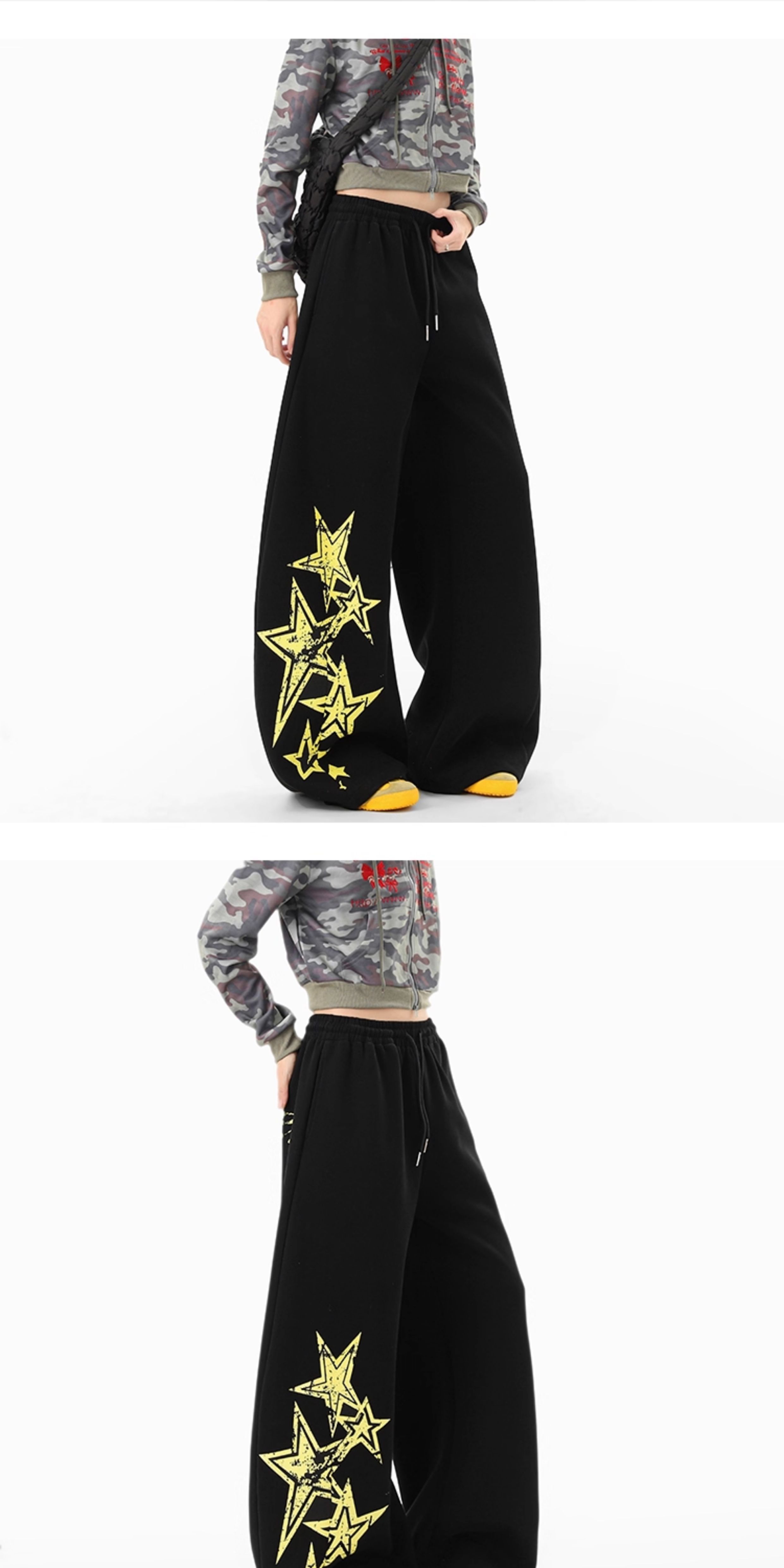 American Retro Star Print Sweatpants for Women and Men, Autumn Jazz Dance Sports Pants, Loose and Versatile Wide-Leg Pants