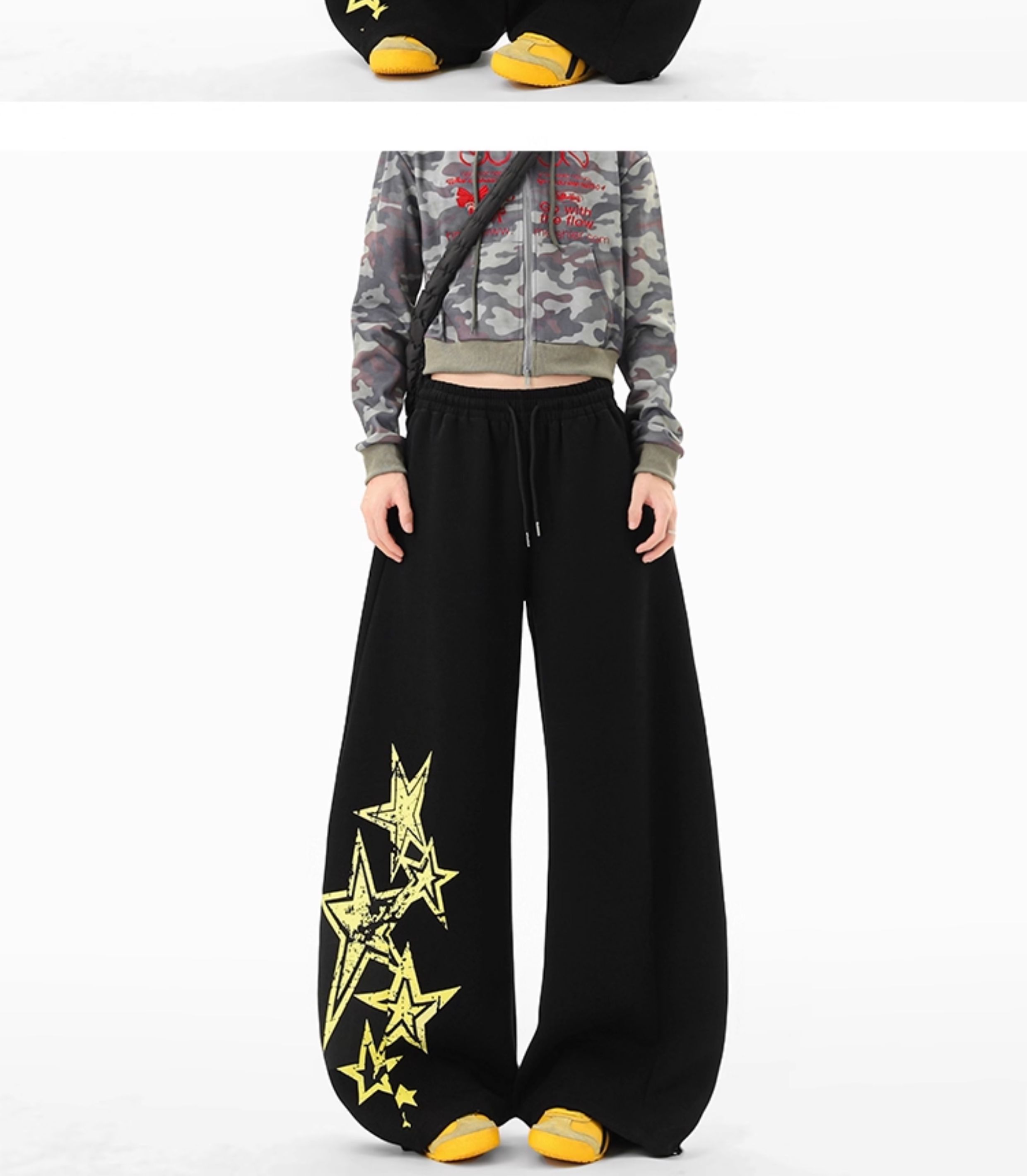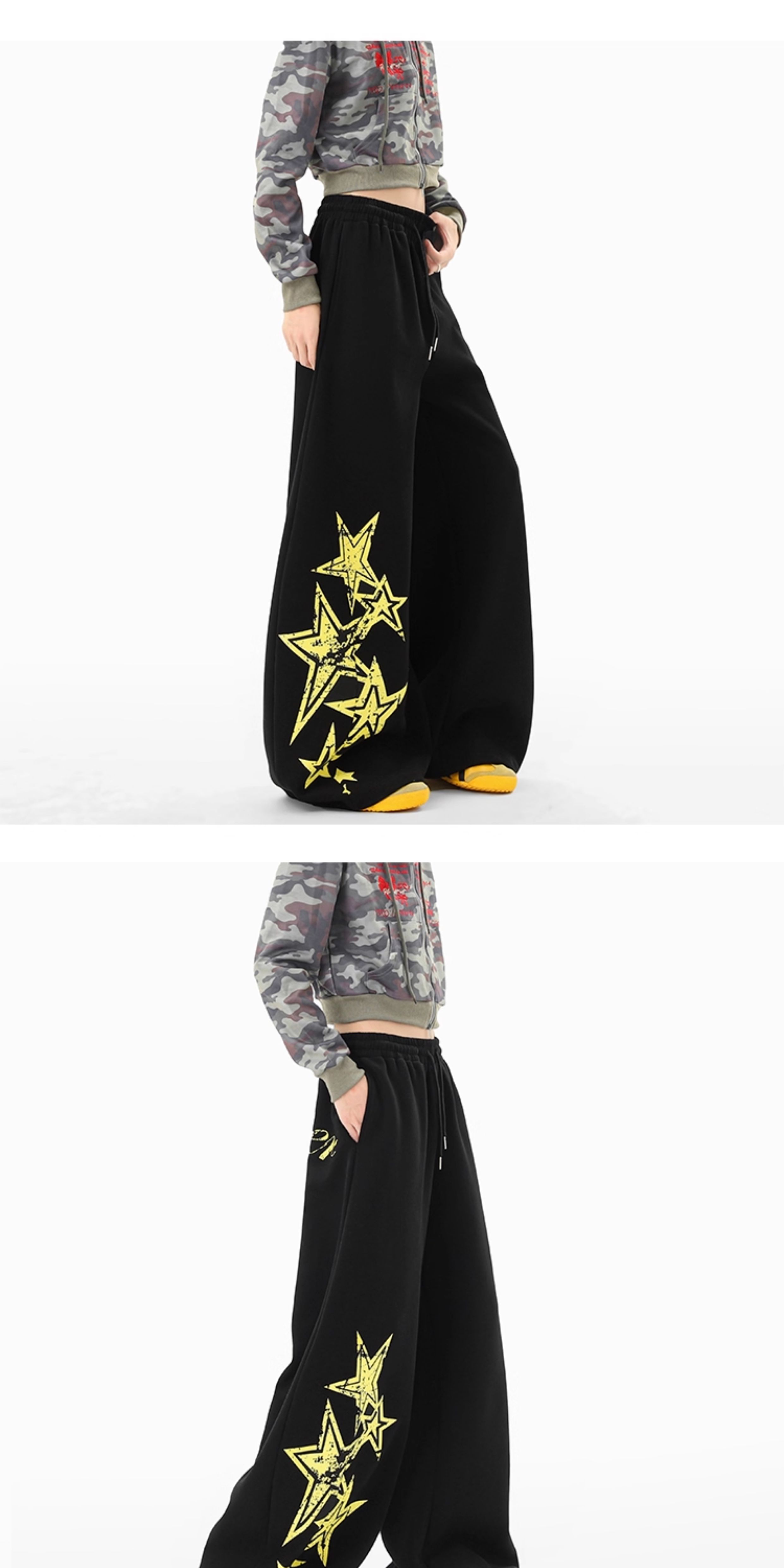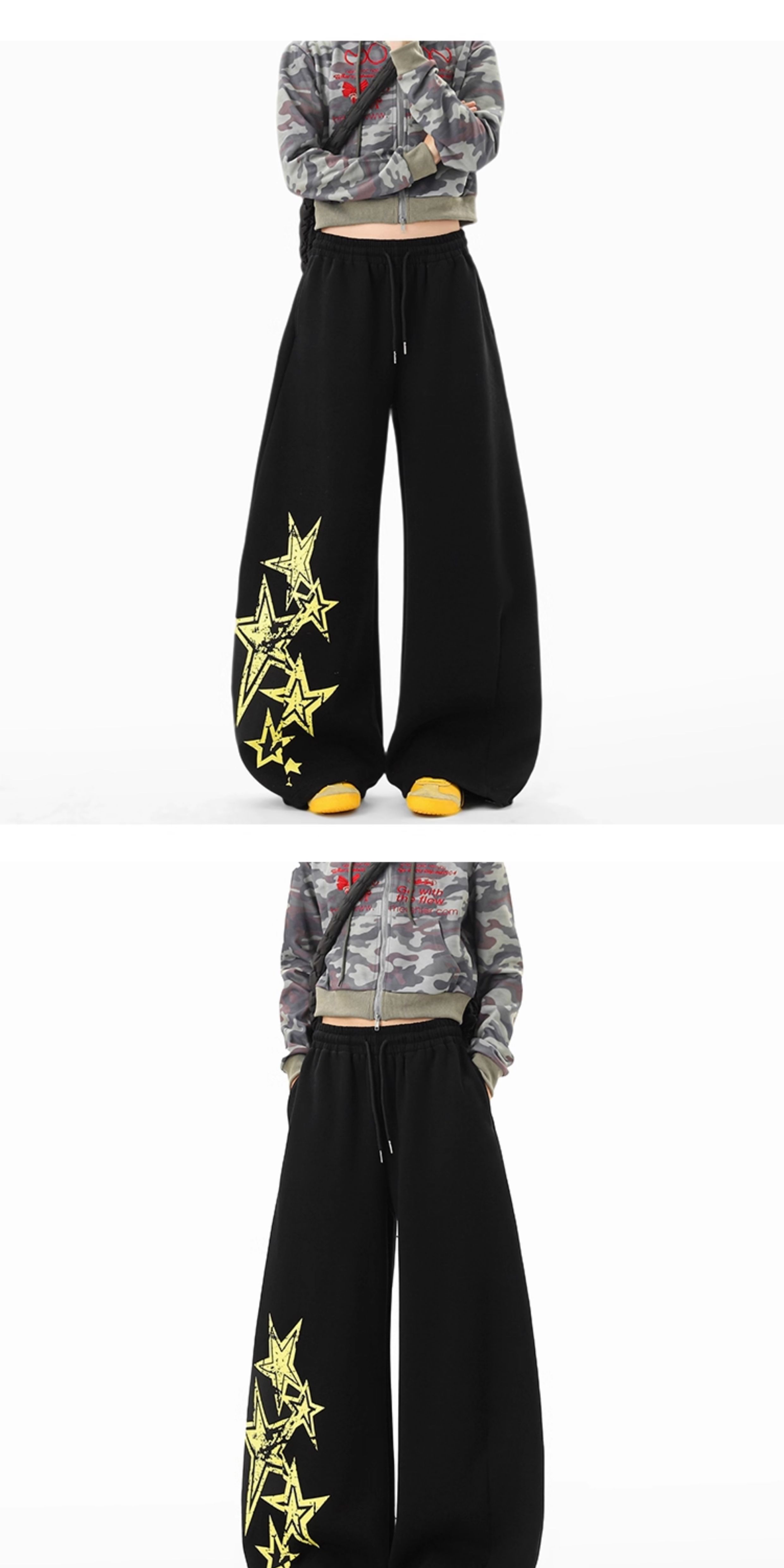 American Retro Star Print Sweatpants for Women and Men, Autumn Jazz Dance Sports Pants, Loose and Versatile Wide-Leg Pants