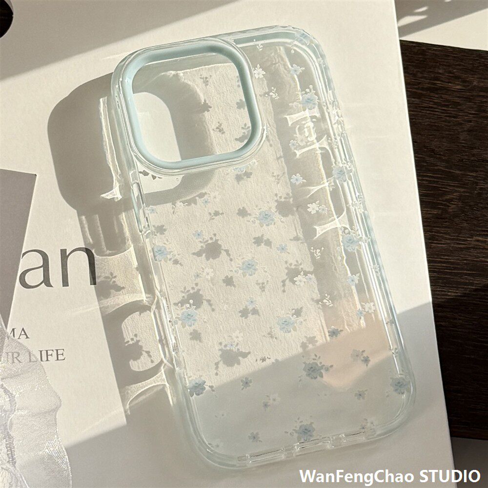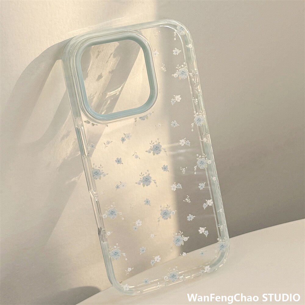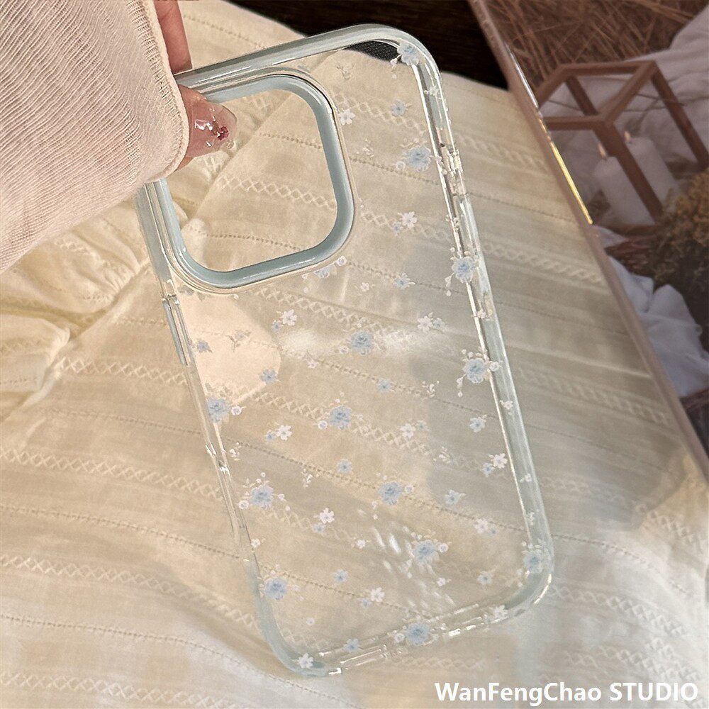 Fresh and Simple Style Suitable for iPhone 17 Pro Max, Apple 16 Phone Case, 15 Gentle Blue Flowers, 14 Transparent, 13 Soft Case