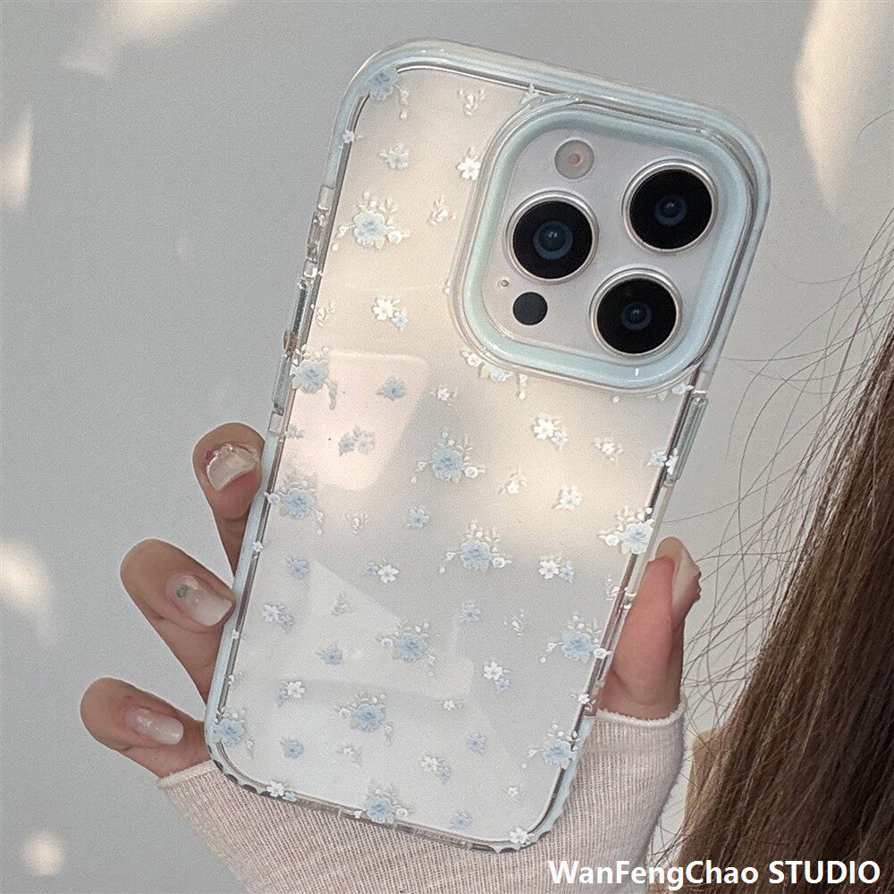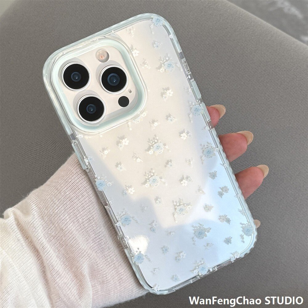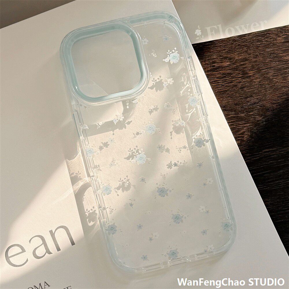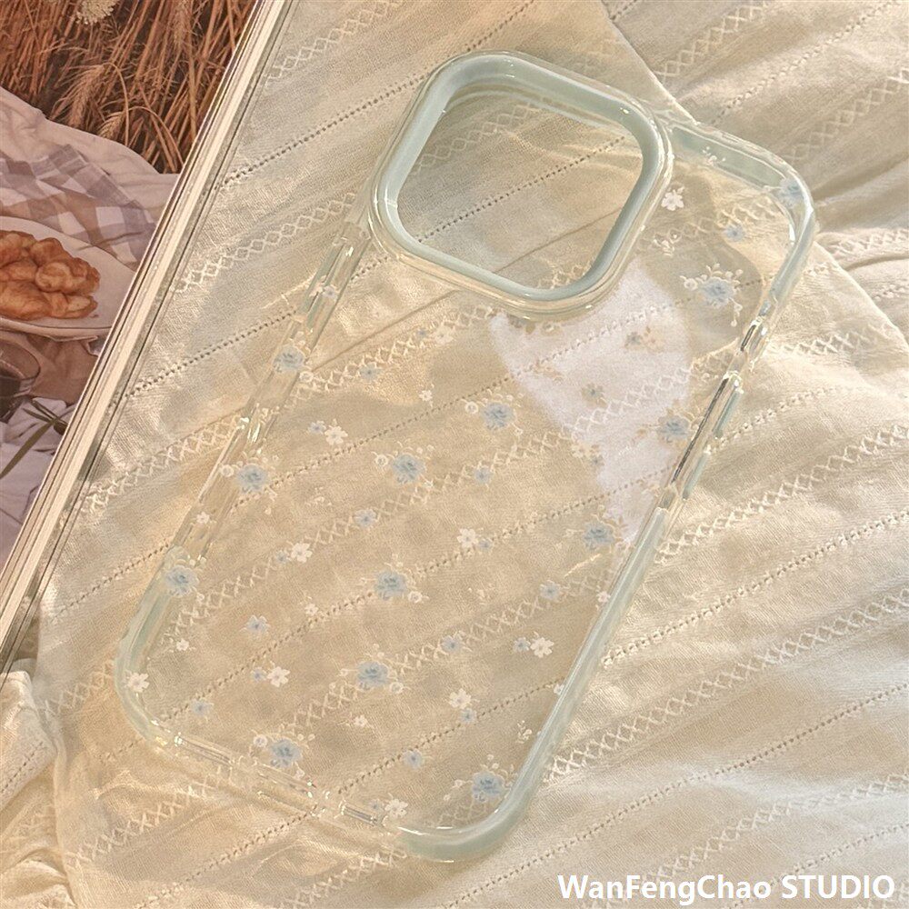 Fresh and Simple Style Suitable for iPhone 17 Pro Max, Apple 16 Phone Case, 15 Gentle Blue Flowers, 14 Transparent, 13 Soft Case