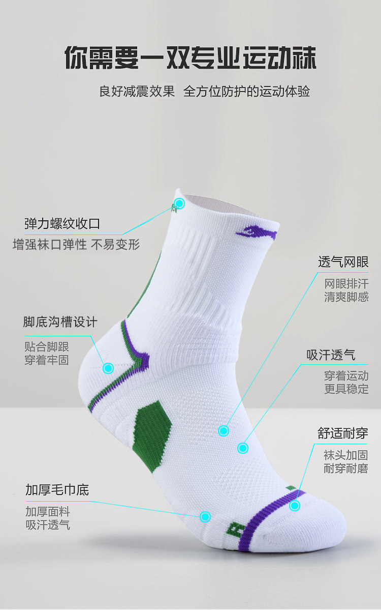 Slazenger Sports Socks Breathable Towel Bottom Badminton Tennis Socks Basketball Mid-Calf Socks for Men and Women